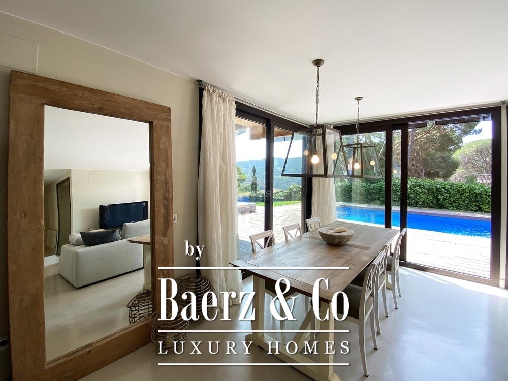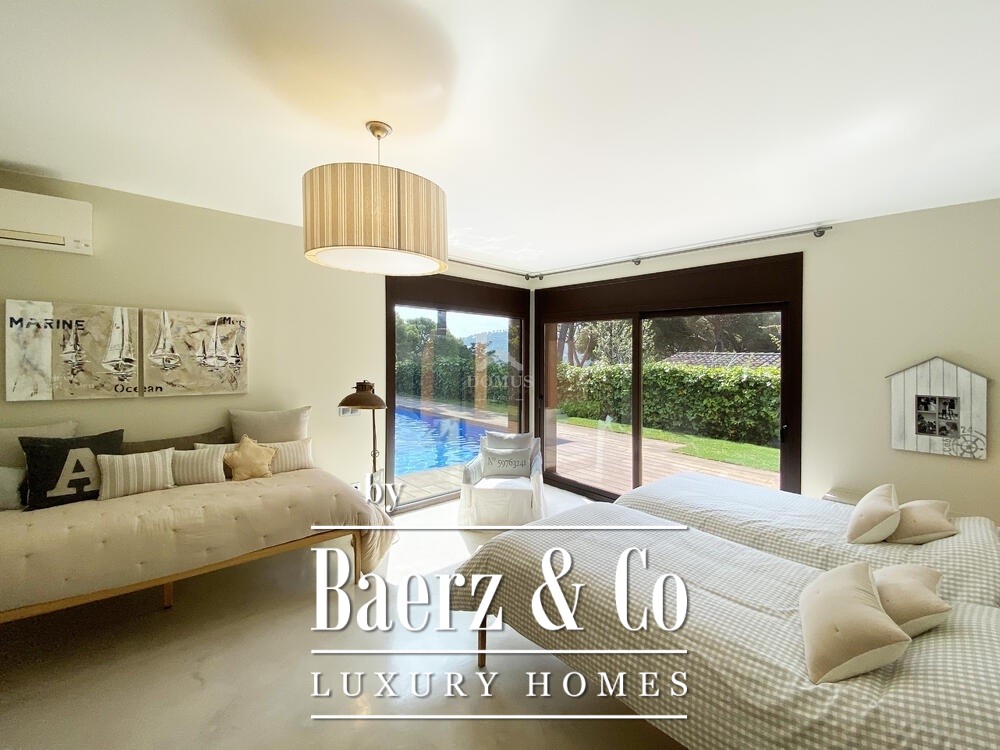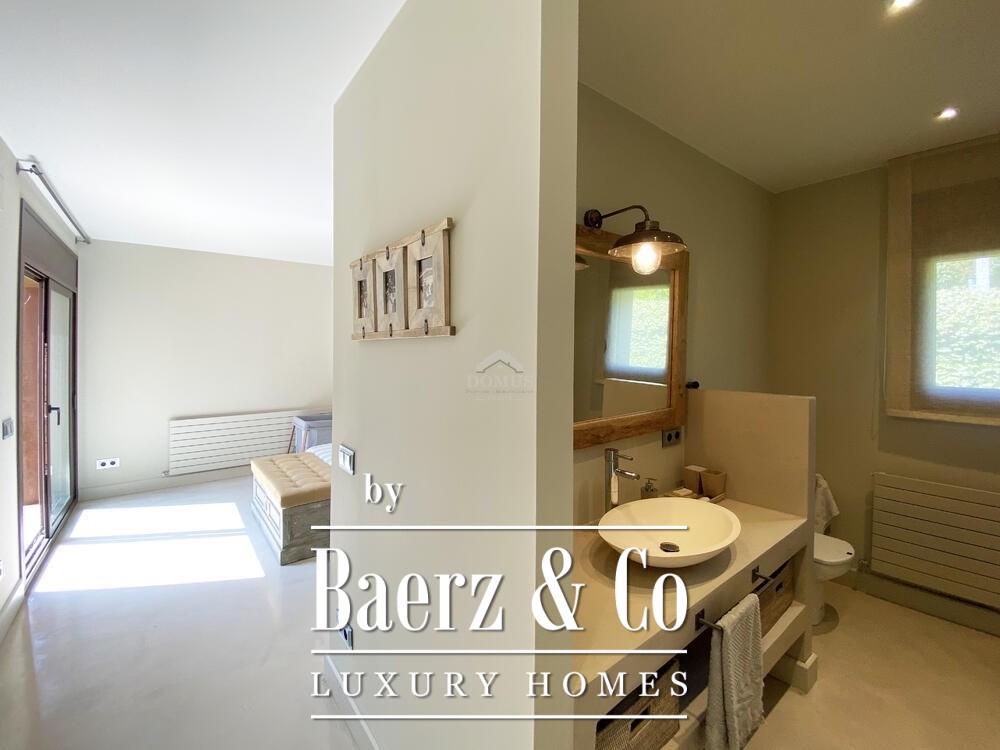 Fantastische woning in moderne stijl met uitzicht op zee, gelegen op 700 meter van het centrum van Begur en op 1,5 km van het strand van Sa Riera. Verdeeld over twee verdiepingen, vinden we op de hoofdverdieping een ruime en lichte woon-eetkamer met toegang tot terras en tuin, grote open keuken met centraal eiland en directe toegang tot veranda, toilet en twee tweepersoons slaapkamers suite met eigen badkamer. Op de bovenverdieping, twee fantastische suites met toegang tot grote terrassen met panoramisch uitzicht op de zee en de Medes-eilanden. In de buitenruimte, een goed onderhouden tuin met verschillende rustzones, solarium, veranda's en barbecue. Garage voor twee auto's en buiten parkeerplaats.