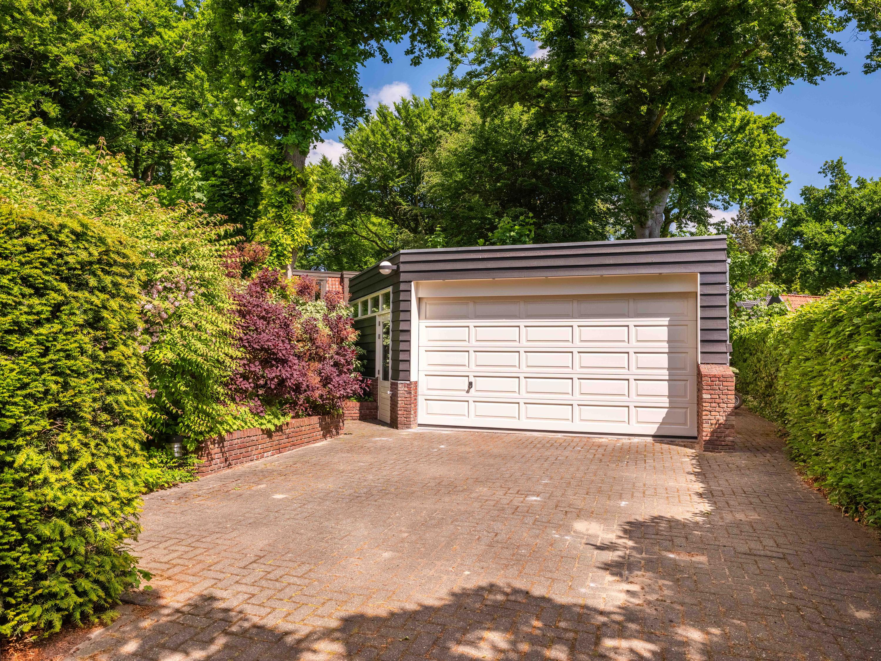 Aan de andere zijde van het perceel staat een ruime garage, ook deze is volledig geïsoleerd en voorzien van een toilet en een elektrische roldeur. De garage is via een opgang met elektrisch hek aan de Broekbeeklaan te bereiken.