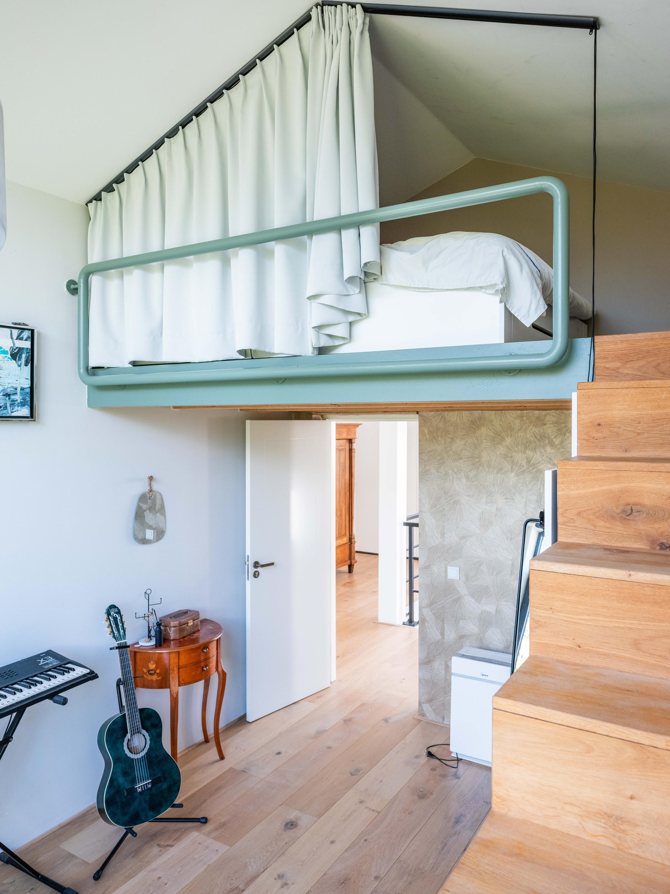 De bovenverdieping is het domein voor de kinderen en hobby's. Naast drie fijne slaapkamers, een tweede badkamer met grote inloopdouche, separaat toilet, en wasruimte, vindt u hier verrassende extra’s. Denk aan een inspirerende werkkamer met weids uitzicht, een serene yogaruimte en een speelse vide waar u zich terugtrekt met een goed boek.