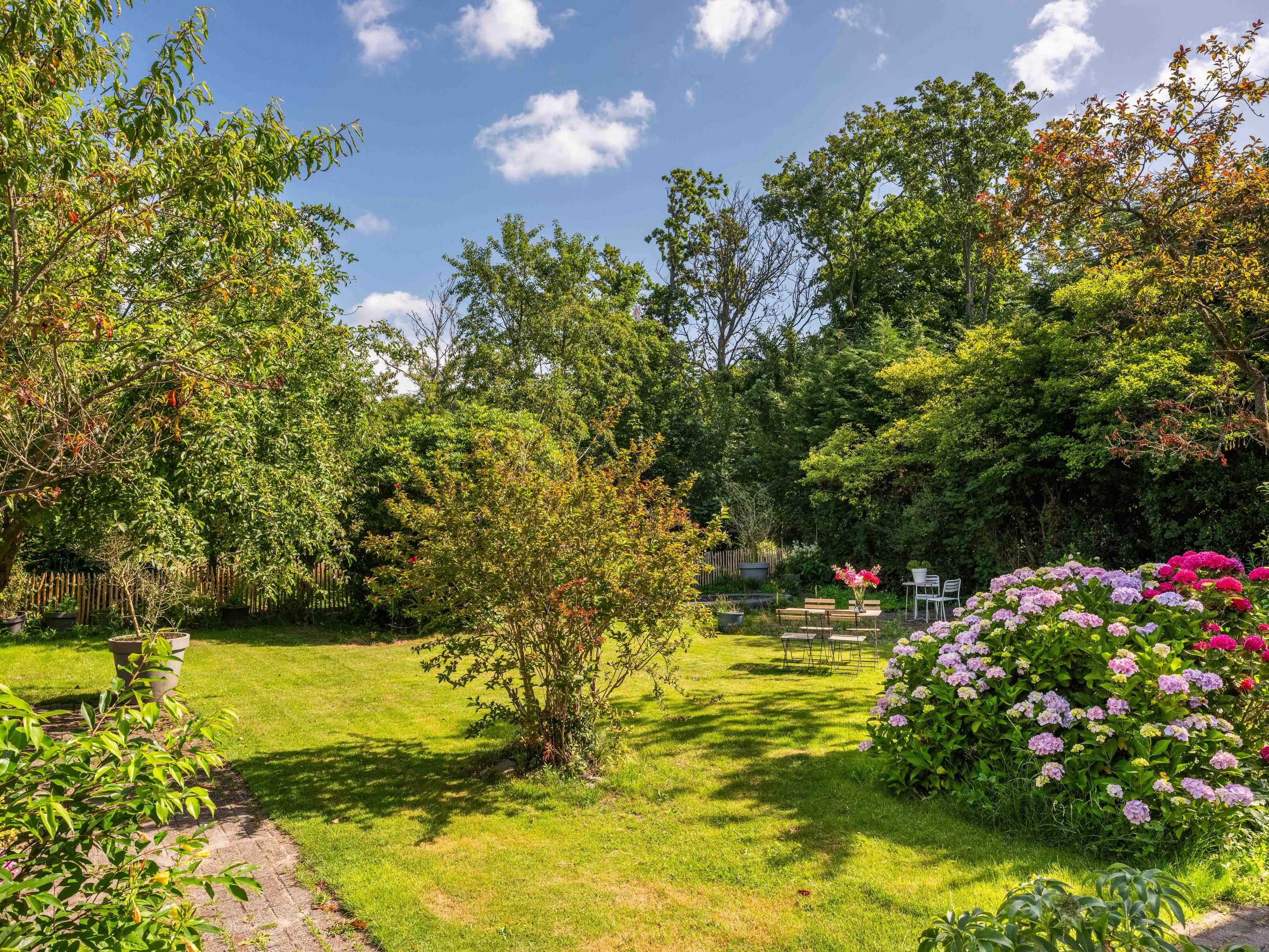 De rondom aangelegde tuin biedt volop privacy, zon én schaduw. Er is een kas voor de tuinliefhebber, nu in gebruik als sfeervolle borrelruimte met buitenhaard; de perfecte plek voor lange zomeravonden met vrienden en familie. Ook is er een grote vrijstaande stenen garage (ca. 50 m²) met bergvliering, geschikt voor twee auto's.