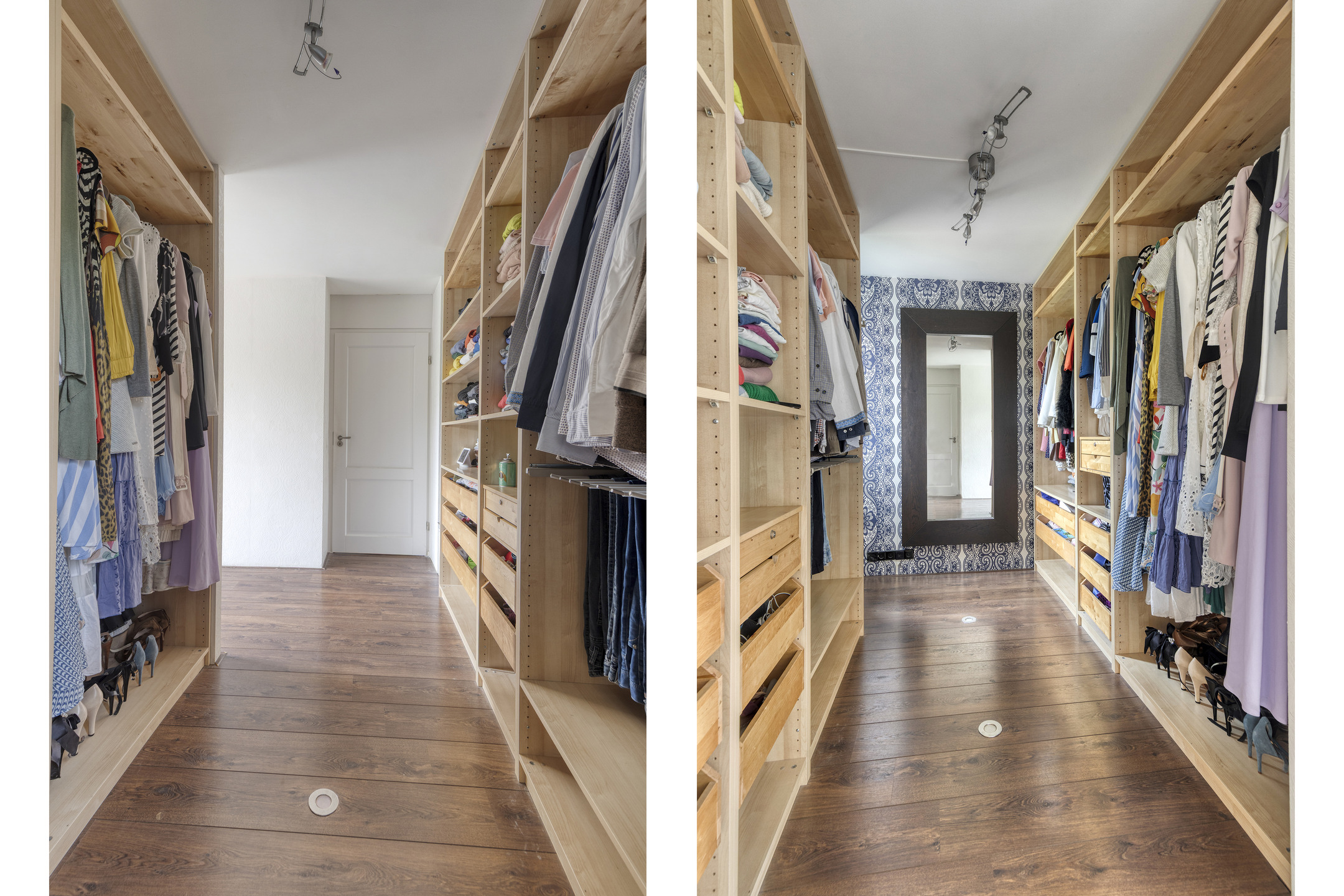 Slaapkamer aan de achterkant voorzien van airco en dakkapel met elektrische rolluiken. Deze kamer heeft een overzichtelijke inloopkast met raam.