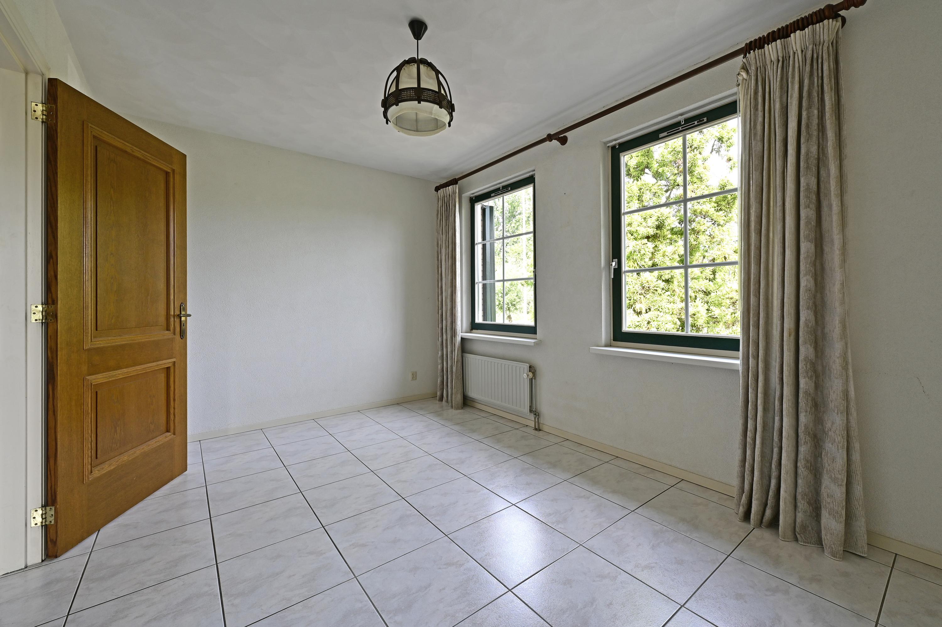 Via de robuuste, open hardhouten trap in de centrale hal bereikt u de eerste verdieping van deze royale woning. Bovenaan de trap ontvouwt zich een ruime, lichte overloop die toegang biedt tot de verschillende vertrekken – elk met hun eigen charme en functionaliteit. Aan de zijkant van de woning bevinden zich twee gespiegelde slaapkamers, beide voorzien van een dakkapel en grote ramen met zicht op de oprit. Deze kamers zijn praktisch ingedeeld met een vaste kast en knieschotten voor extra opbergruimte. Eén van deze slaapkamers biedt bovendien toegang tot een fijn balkon aan de zijkant van het huis – een heerlijke plek om ’s ochtends in alle rust van de buitenlucht te genieten. Dit balkon is ook bereikbaar via een tweede deur op de overloop. Aan de achterzijde van de woning, bereikbaar via een klein afstapje vanaf de overloop, bevindt zich een royale kamer met een charmant puntdak en een raam met uitzicht over de achtertuin. Hier is de cv-installatie geplaatst, maar de ruimte leent zich uitstekend als hobbykamer, extra werkplek of speelruimte – multifunctioneel en sfeervol.