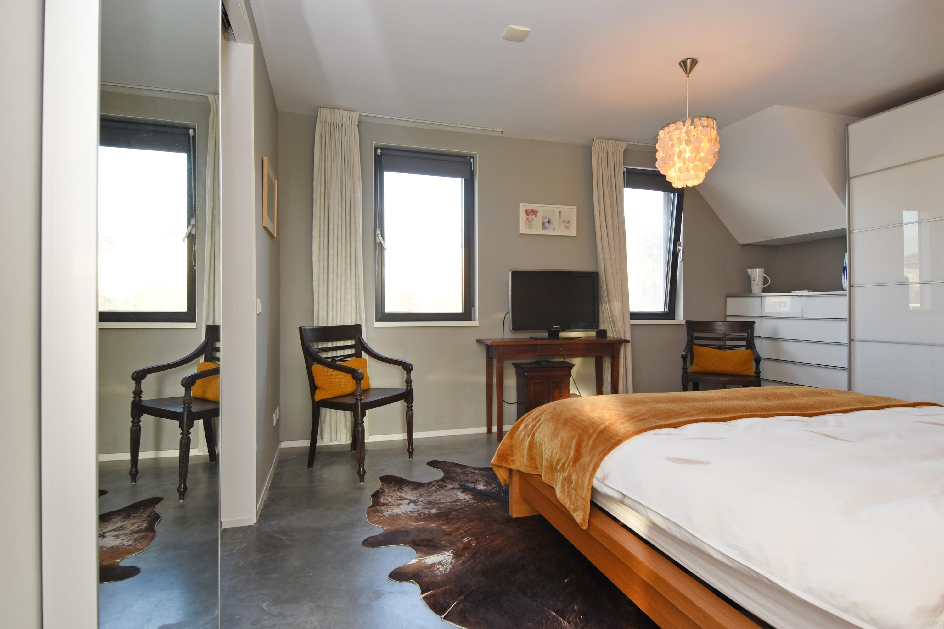 Vanuit de woonkeuken kom je via een vaste trap naar boven op de vide, die je voor meerdere doeleinden (o.a. werkplek, bibliotheek, tv-kamer) kunt gebruiken. De grote verrassing is het aansluitend gelegen, fraai aangelegde en royale dakterras met veel privacy en gezelligheid, waar je werkelijk de gehele dag de zon kunt vinden.