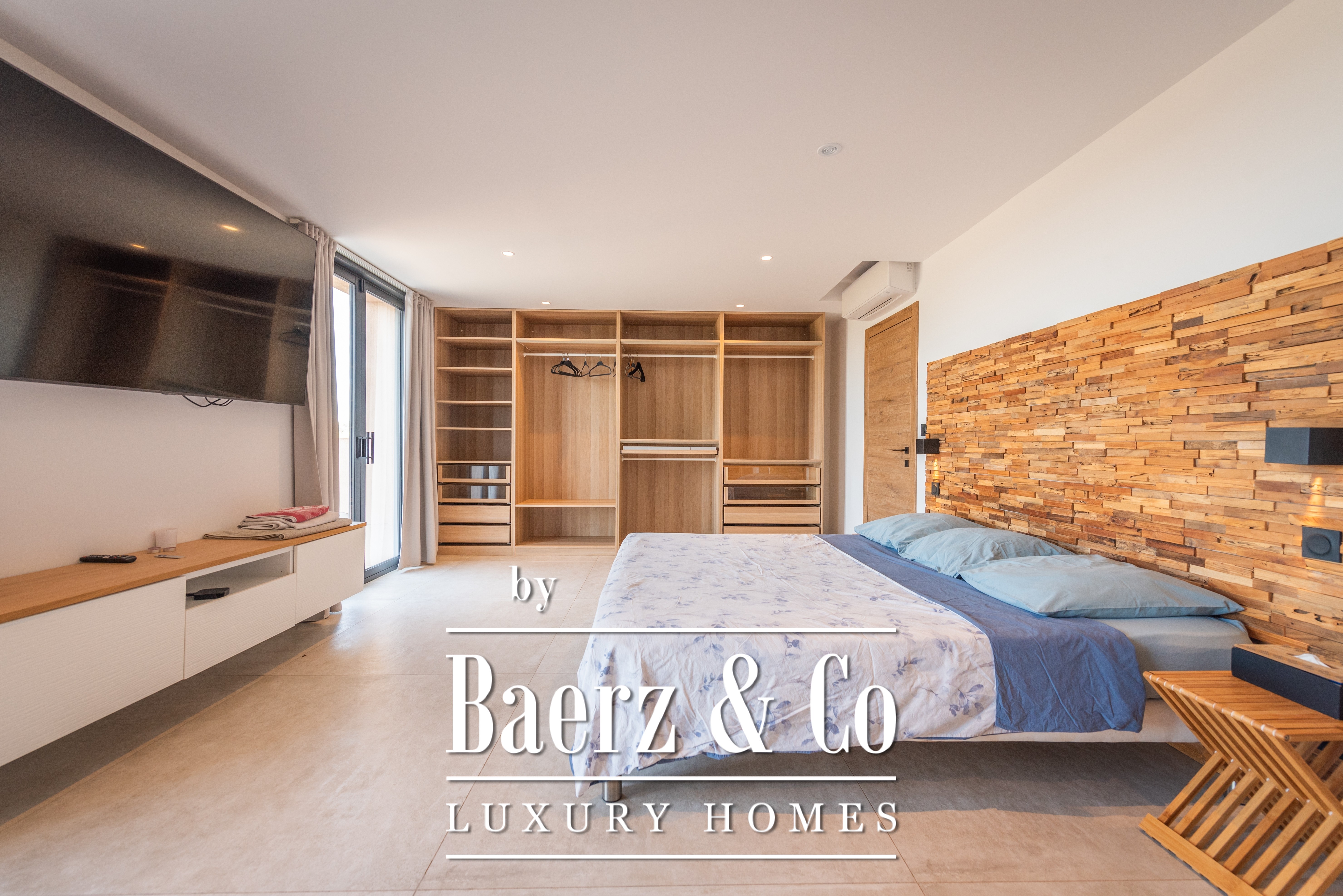 De hoofdwoning verwelkomt met een open leefruimte van 100 m², harmonieus en uitnodigend van opzet. Op de begane grond bevindt zich een master suite die directe privacy en comfort biedt; boven zijn twee extra slaapkamers, waarvan één met een privéterras met panoramisch uitzicht. Een zelfstandig studio, afzonderlijk toegankelijk, verhoogt de flexibiliteit discreet.