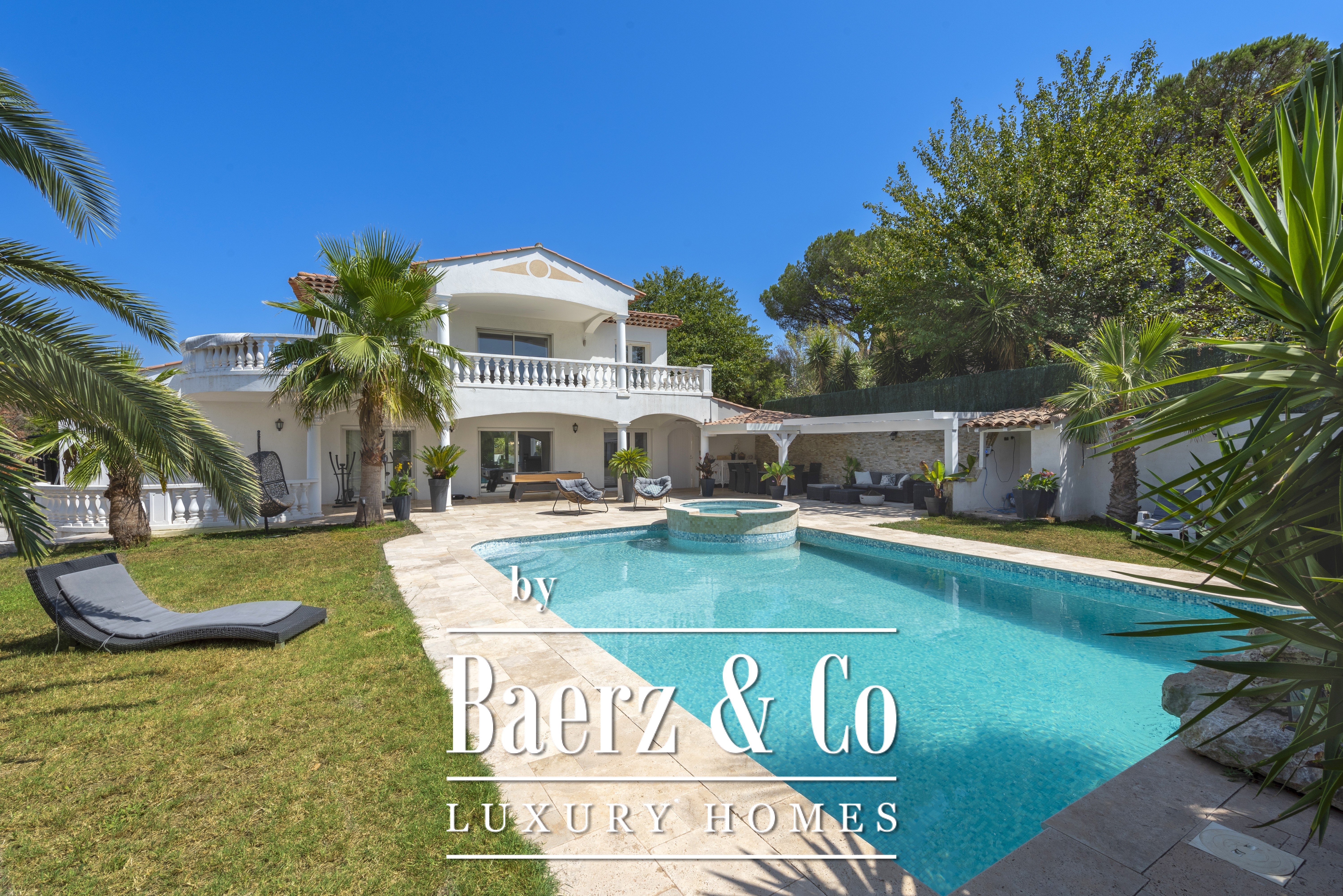 Villa Fréjus biedt een villa van 172 m² te koop aan, ontworpen rond royale ruimtes en verfijnd licht, gelegen in een privé en beveiligd domein. Deze woning bevindt zich in een rustige woonomgeving en biedt direct toegang tot voorzieningen zoals winkels, scholen en hoofdwegen. Villa Fréjus verwelkomt u met een lichte leefruimte en een volledig uitgeruste open keuken, optimaal ingericht voor gastvrijheid. Op het westen gericht loopt het leefgedeelte vloeiend over in een ruim terras met uitzicht op het zwembad en de aangelegde tuin. Het slaapgedeelte omvat vier slaapkamers, een grote badkamer, een aparte douchekamer en een praktische wasruimte. Het perceel van 1.082 m² is ingericht met zowel open als overdekte terrassen en creëert zones voor zomerse diners, ontspanning bij het zwembad en een eigen jacuzzi. Granieten vloeren, vloerverwarming, omkeerbare airconditioning en elektrische rolluiken benadrukken de aandacht voor kwaliteit en comfort. De villa beschikt over een garage en ruime binnen- en buitenparkeergelegenheid, waardoor privacy en gemak worden gegarandeerd. De energieklasse B staat voor een uitgebalanceerde moderne efficiëntie.