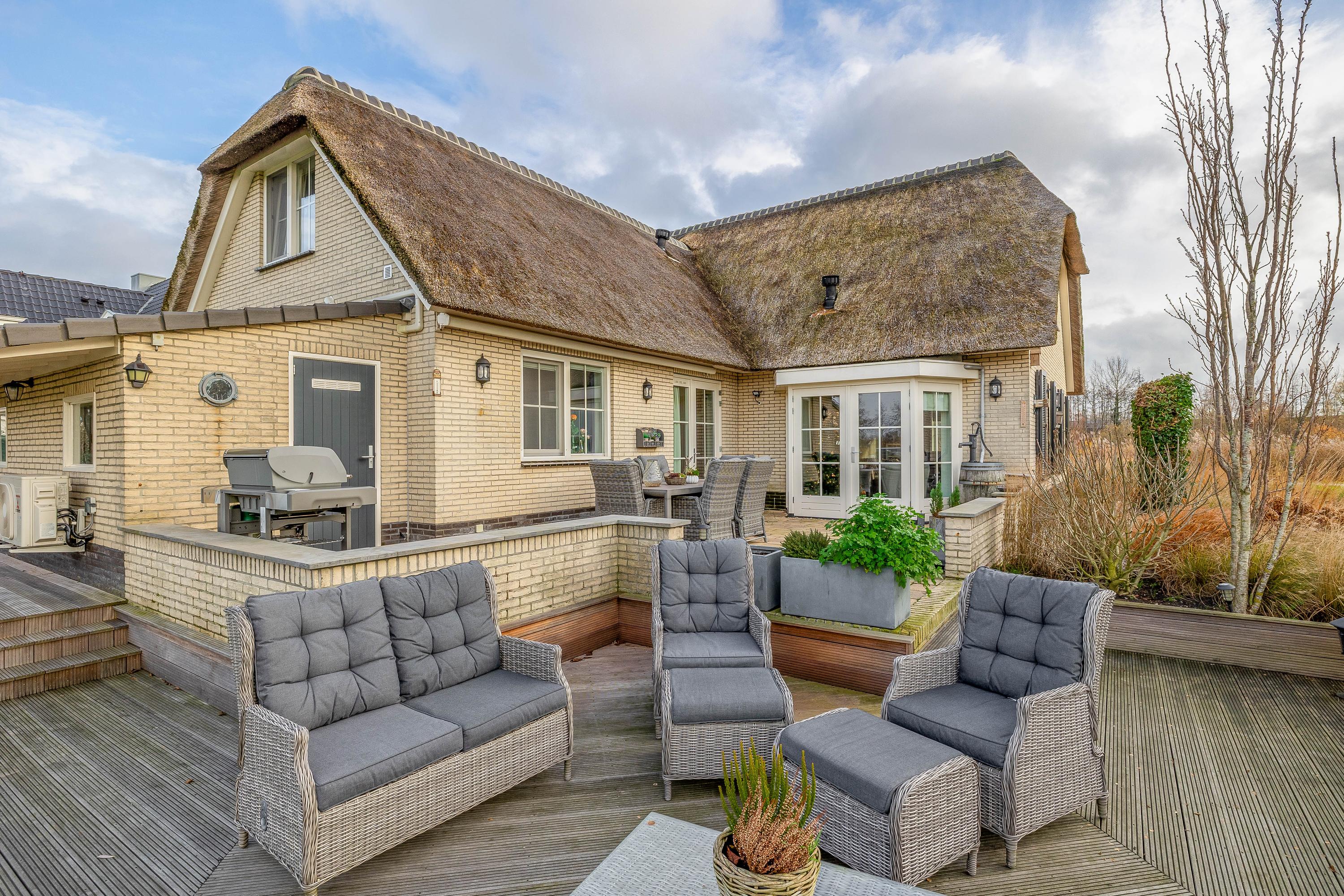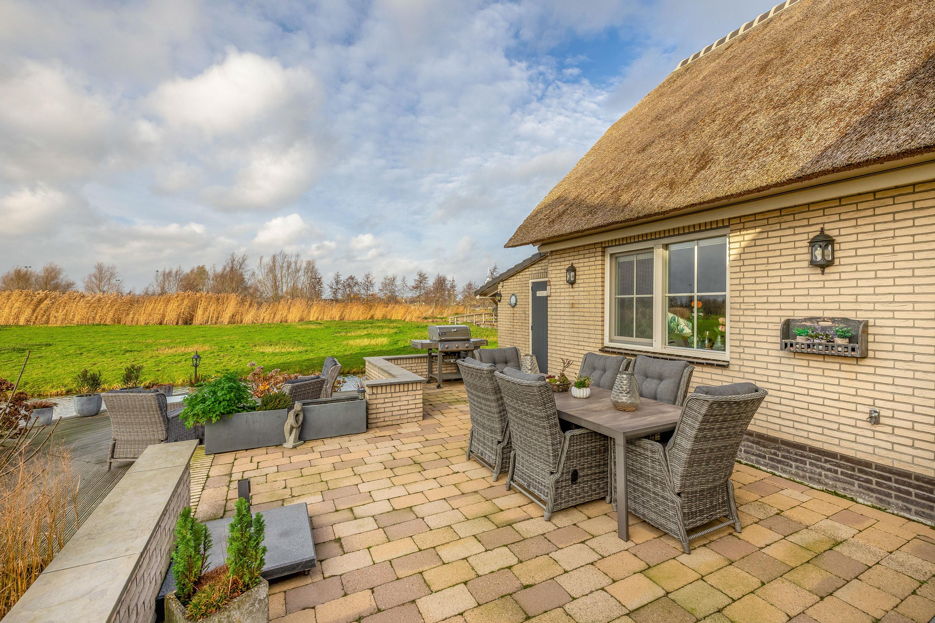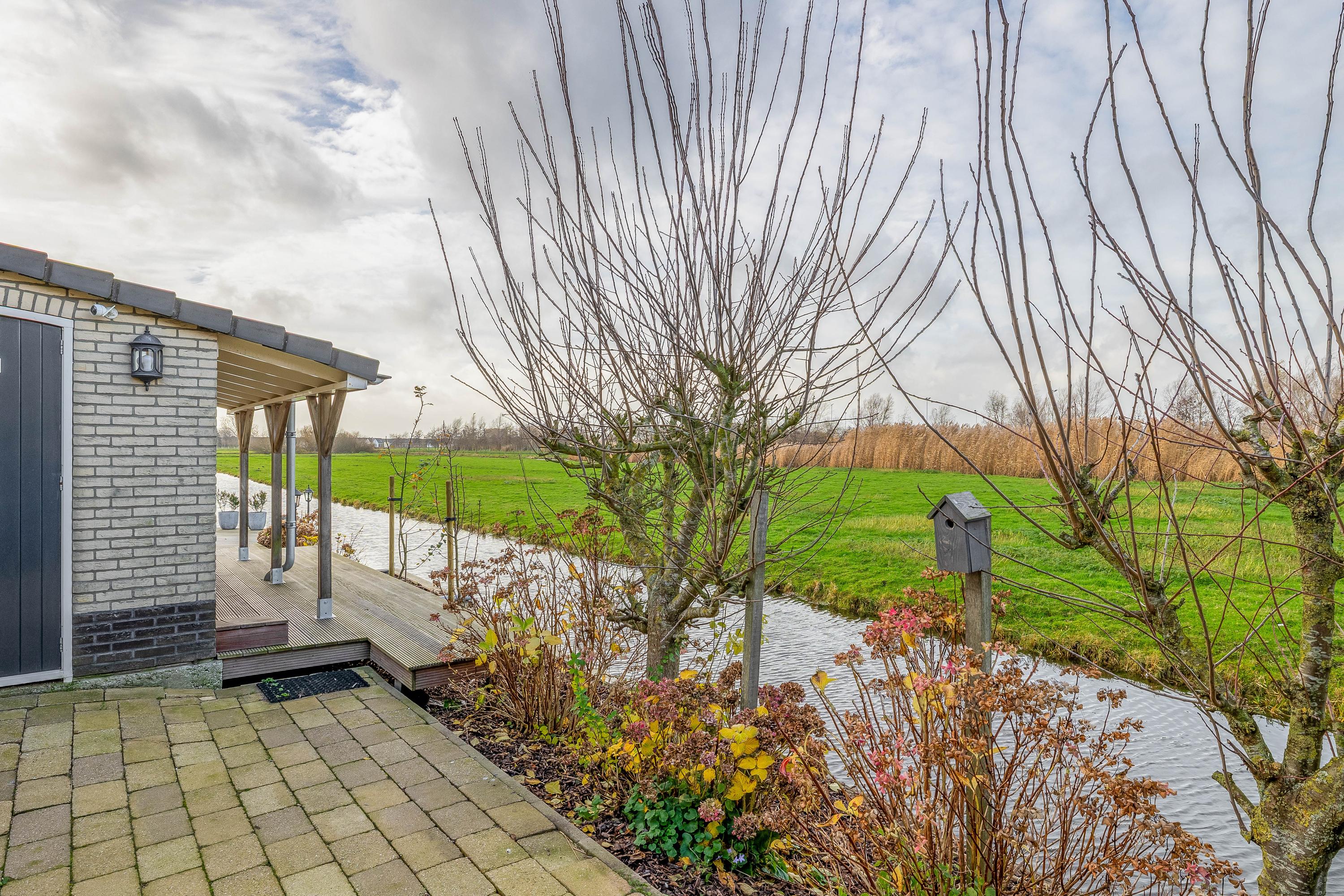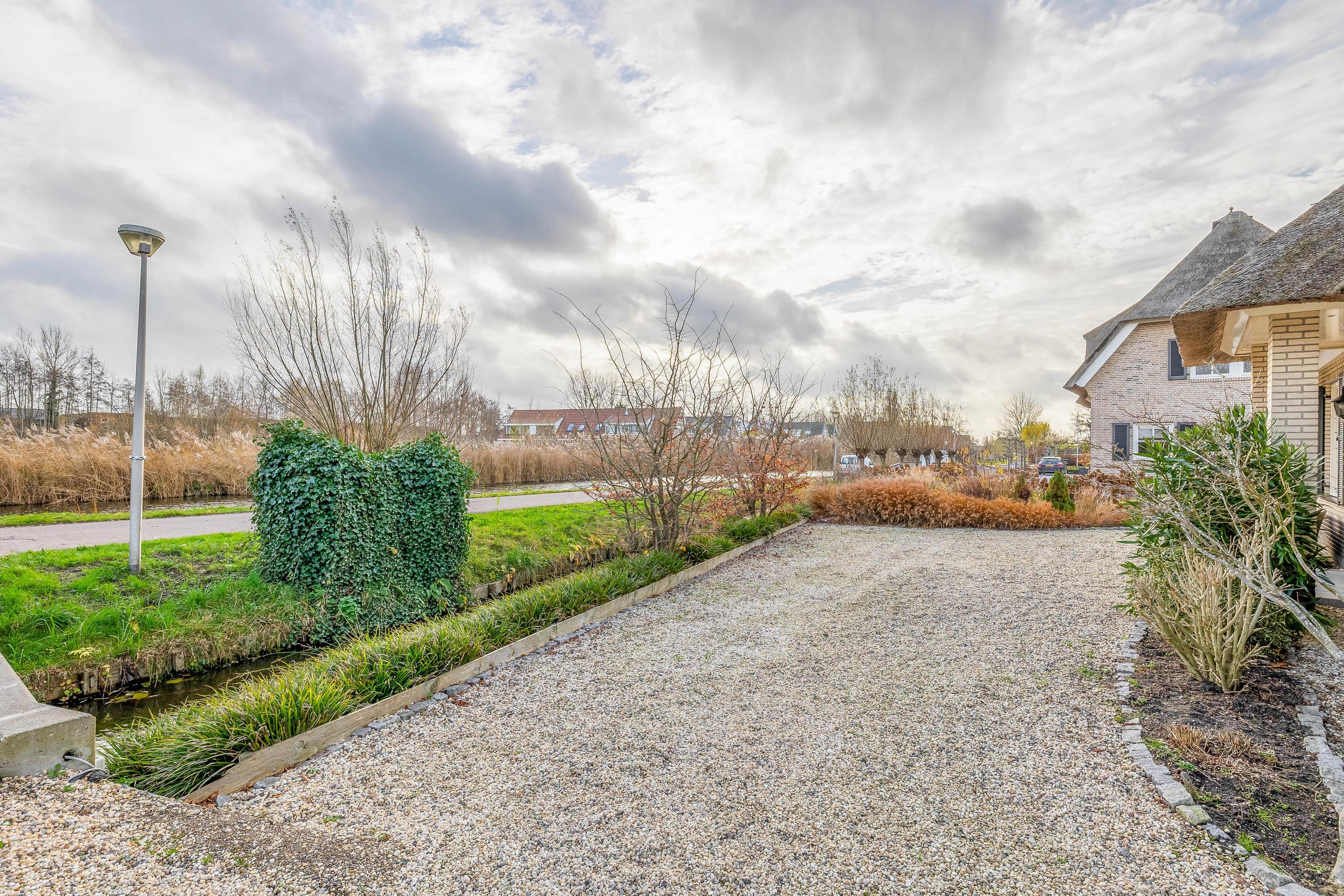 De tuin is sfeervol en met zorg aangelegd. Aan de achterzijde bevindt zich een groot onderheid terras, ideaal voor een eettafel of loungeset. In 2024 is hier een nieuw houten vlonderterras geplaatst direct aan het water, waar je kunt genieten van volledige privacy en schitterend uitzicht over de landerijen. Aan de voorzijde bevindt zich een brug over het water, die leidt naar de oprit met plek voor meerdere auto’s. De praktische berging is uitstekend geschikt voor het stallen van fietsen of motor en is te bereiken vanaf tuin en parkeerplaats. Aan de voorzijde van de woning is er een laadaansluiting aanwezig voor het laden van een elektrische auto.