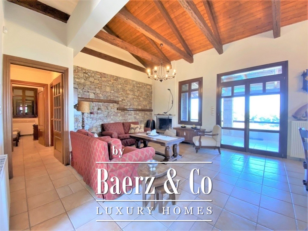 Het lagere niveau van het huis bestaat uit twee zelfstandige appartementen, elk met een open woon- en keukengedeelte, eigen slaapkamer en badkamer. Dubbel glas, autonome verwarming op vloeibaar gas en airconditioning garanderen comfort het hele jaar door. Natuurstenen accenten, fraai aangelegde tuinen en een zwembad met overdekte zithoek maken deze plek geschikt voor zowel privacy als ontspannen samenkomsten. Alarminstallaties en doordachte constructie zorgen voor extra gemoedsrust. Country house Kalamaki is ontworpen voor wie een permanente woonplaats of een tijdloos vakantieverblijf zoekt, omringd door natuurlijke schoonheid en de voorzieningen van de regio.