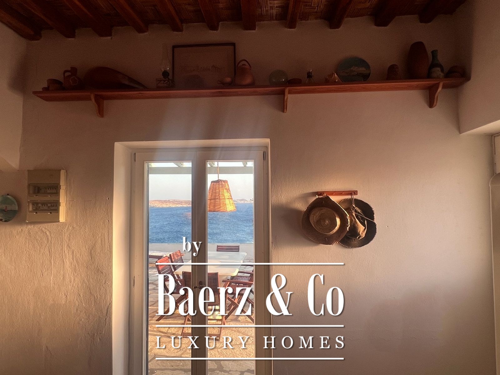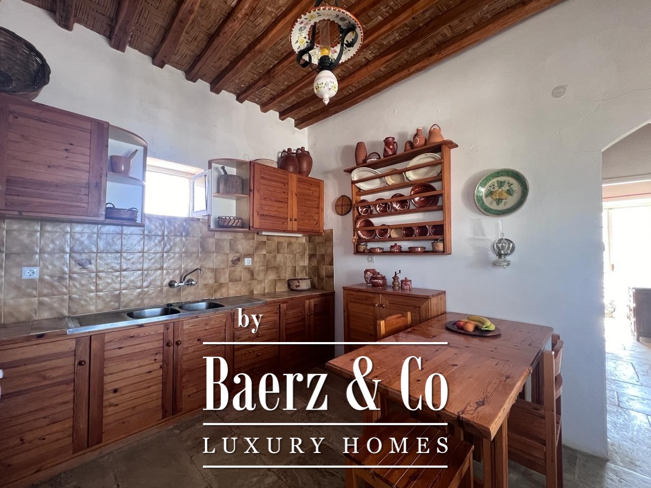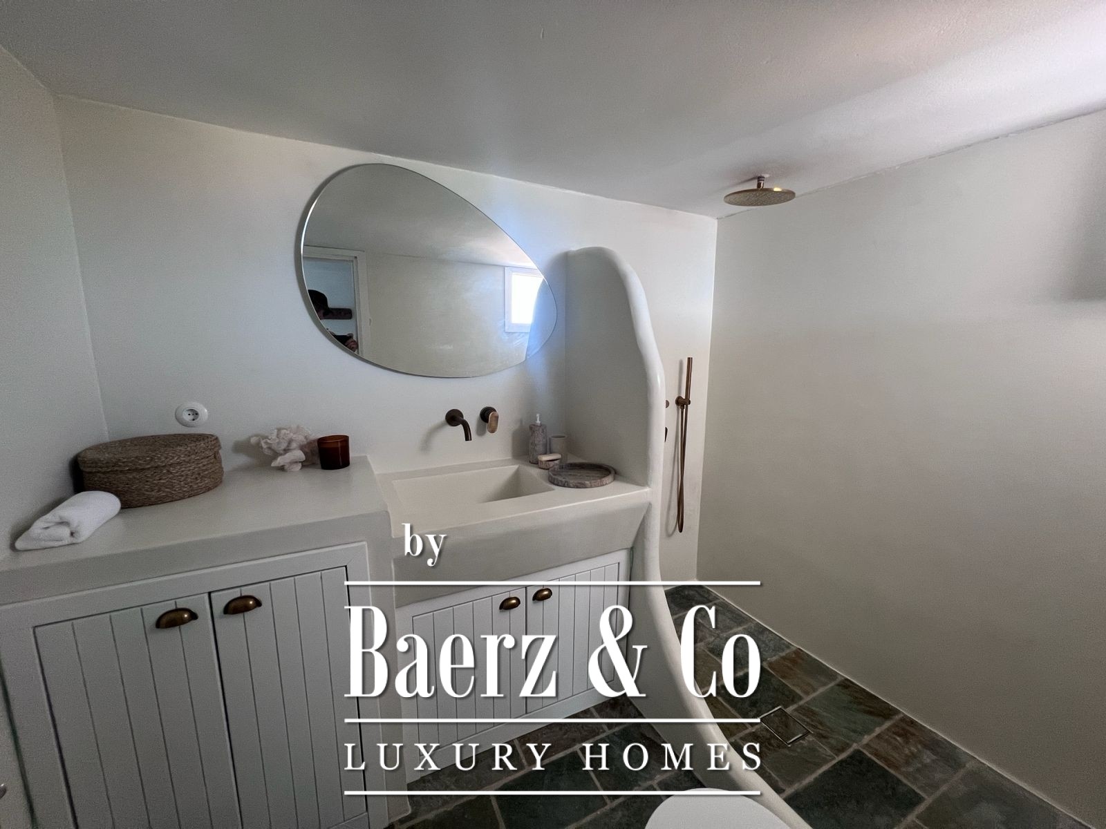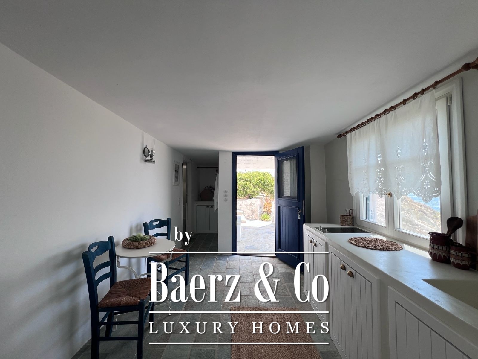 Deze 110 m² grote klifwoning, gelegen op een privéterrein van 2.600 m², is volledig gebouwd uit lokale natuursteen, met dikke, natuurlijk isolerende muren en met de hand vervaardigde, met stro geweven plafonds, die de tijdloze elegantie van traditionele Cycladische architectuur behouden.