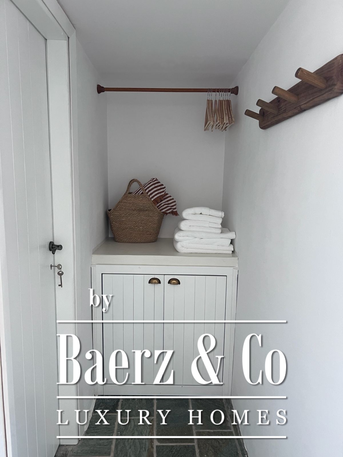 Momenteel ondergaat de woning een grondige renovatie met respect voor haar historische identiteit. De woning wordt voorzien van op maat gemaakte houten ramen en deuren, geavanceerde energie-efficiënte beglazing en maritieme bouwmaterialen van hoge kwaliteit, die duurzaamheid garanderen tegen het Egeïsche klimaat terwijl het authentieke karakter behouden blijft.