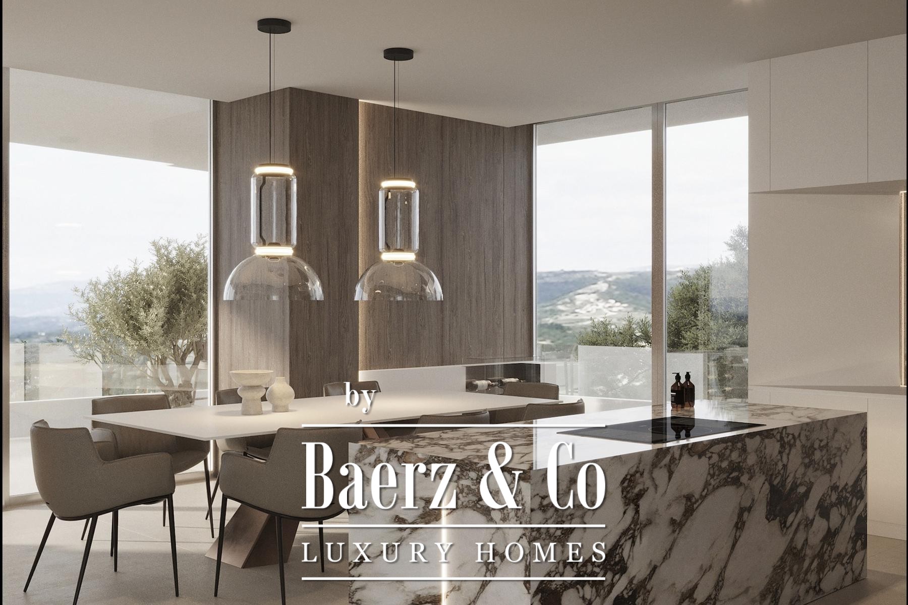 De woning beschikt over vier slaapkamers en vier badkamers, elk afgewerkt met design sanitair in geborsteld brons en satijn, wat zorgt voor een combinatie van comfort en ingetogen elegantie. Het interieur is ontworpen voor een vloeiende woonervaring, terwijl terrassen van 197 m² en een rooftop pool van 34 m² uitnodigen tot een naadloze overgang tussen binnen- en buitenruimtes. Details als een sculpturale Ergofocus open haard, Schüco systemen en hoogwaardig keramiek onderstrepen het verfijnde karakter, aangevuld met een garage van 32 m².