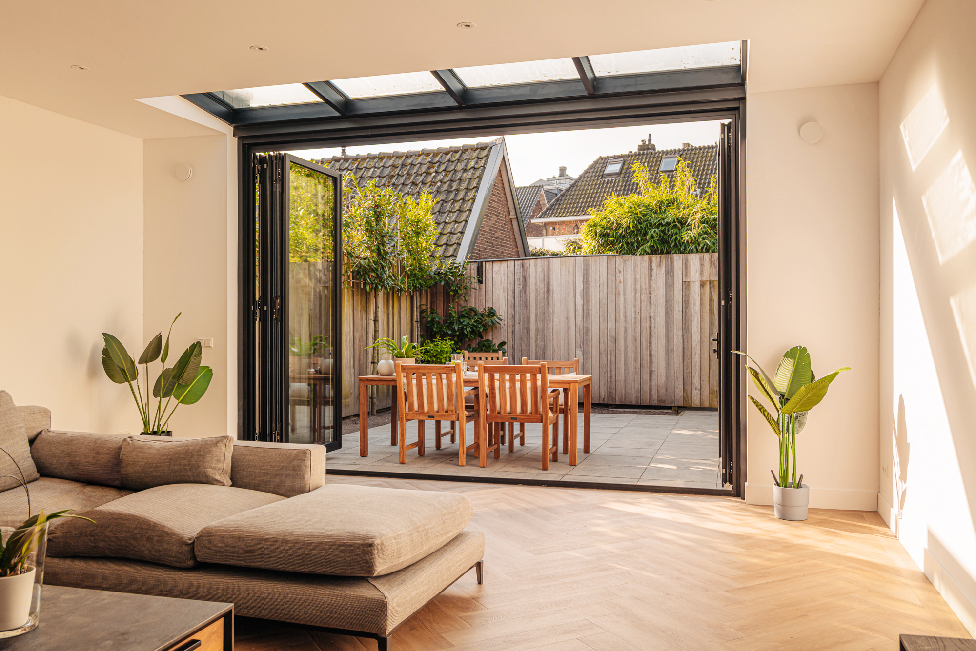 Wonen hier betekent: de gezelligheid van het dorp Laren – met terrassen, winkels en delicatessenzaken letterlijk om de hoek – combineren met een woonbeleving die je eerder verwacht in een moderne loft of stadsappartement. Verborgen achter glas, maar zodra de deur opengaat, is het pure verrassing.