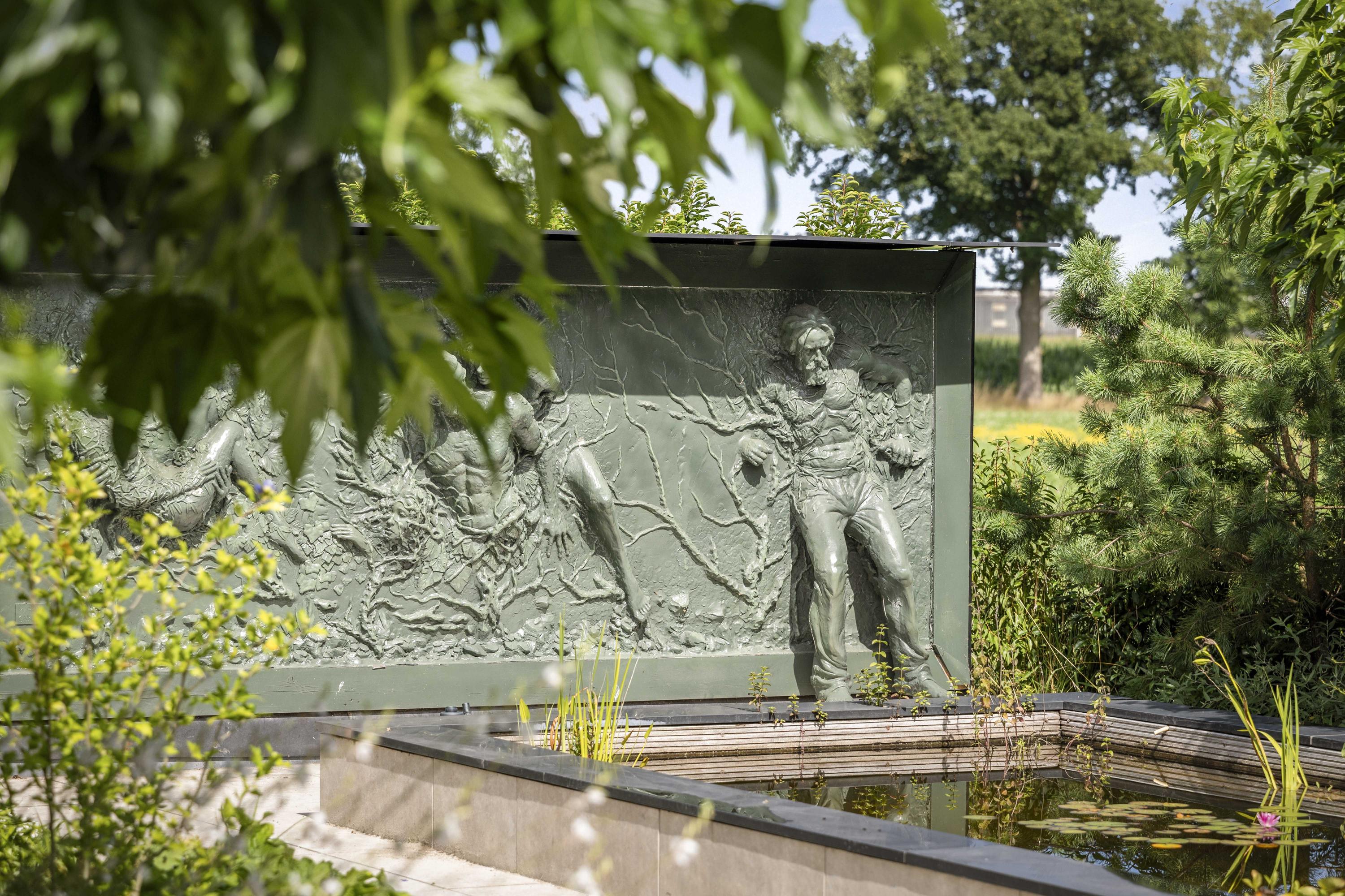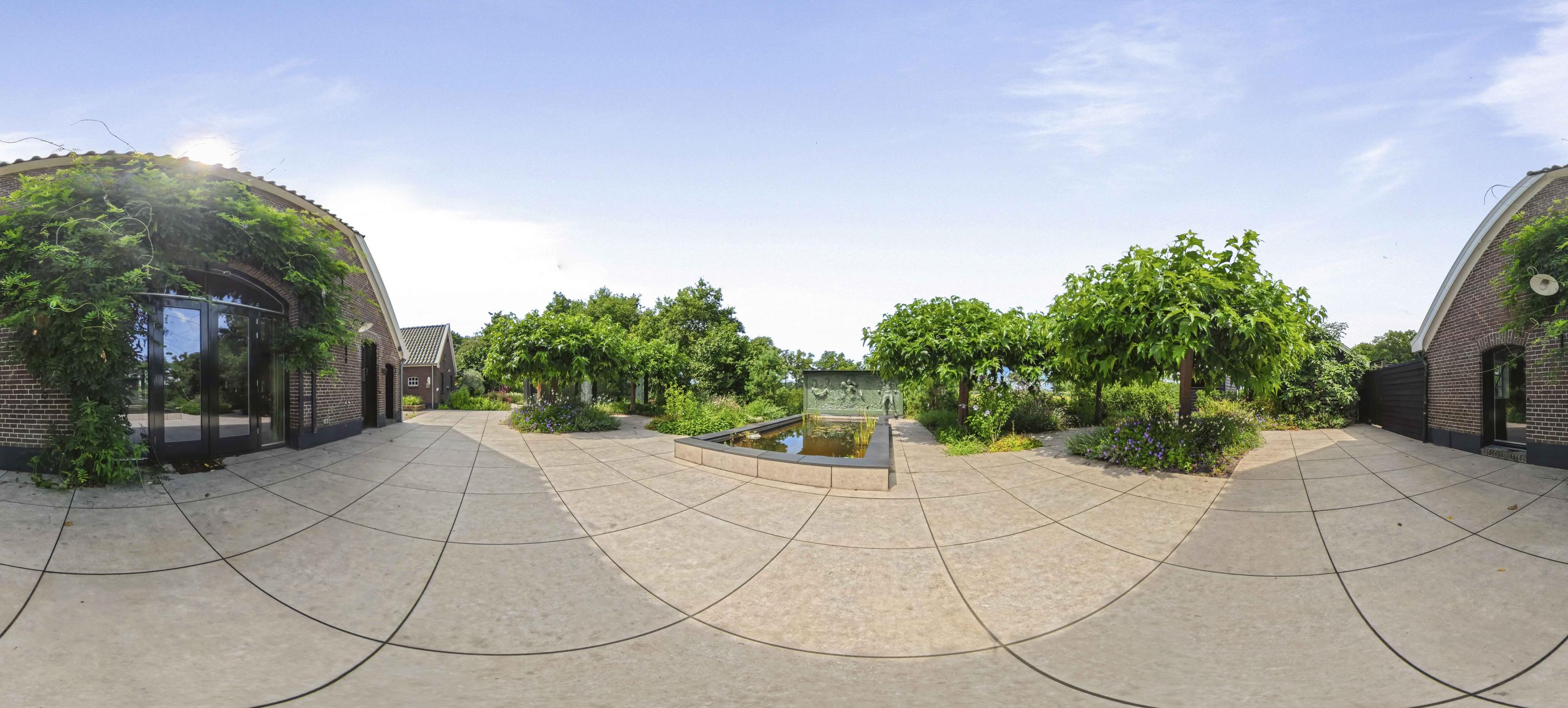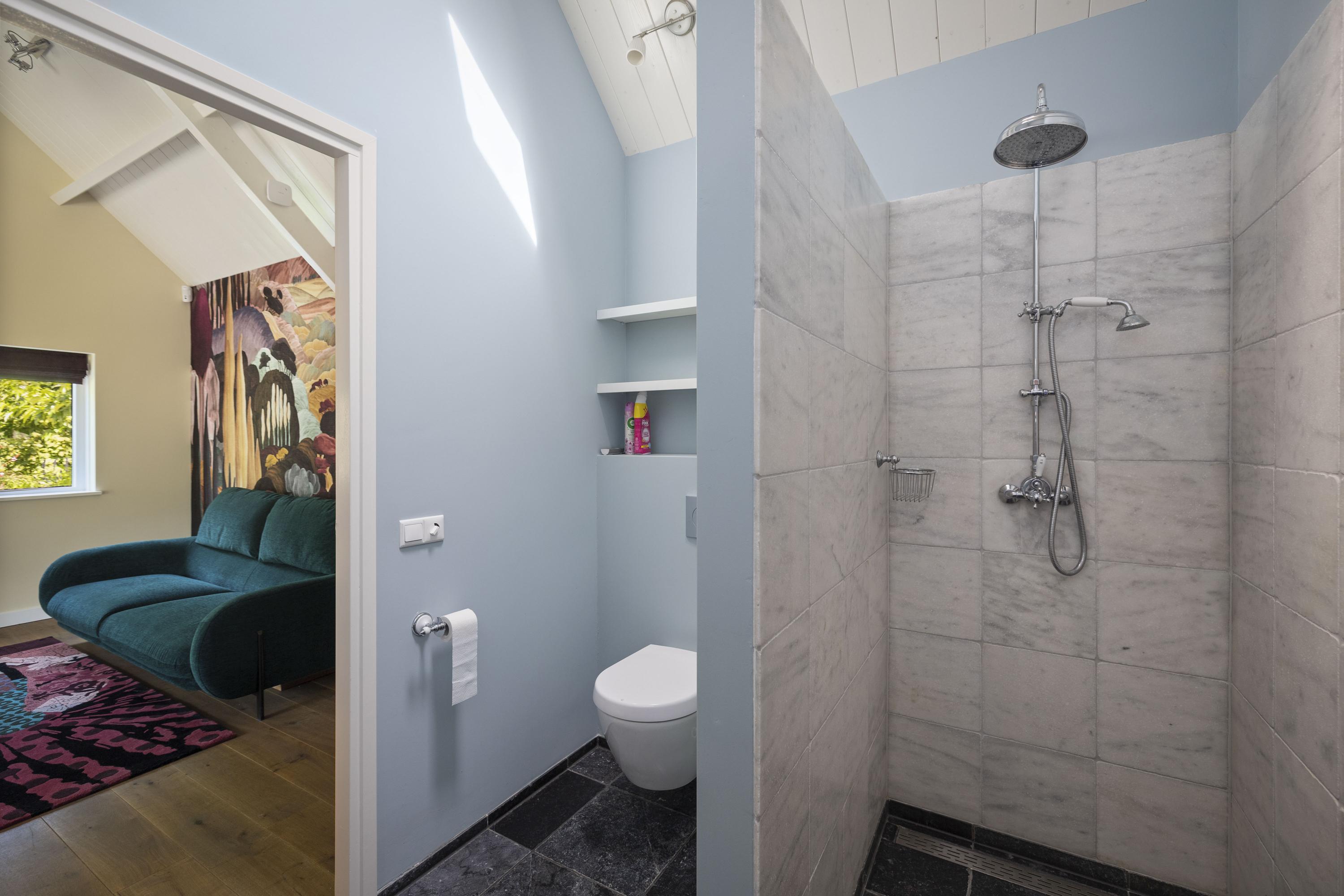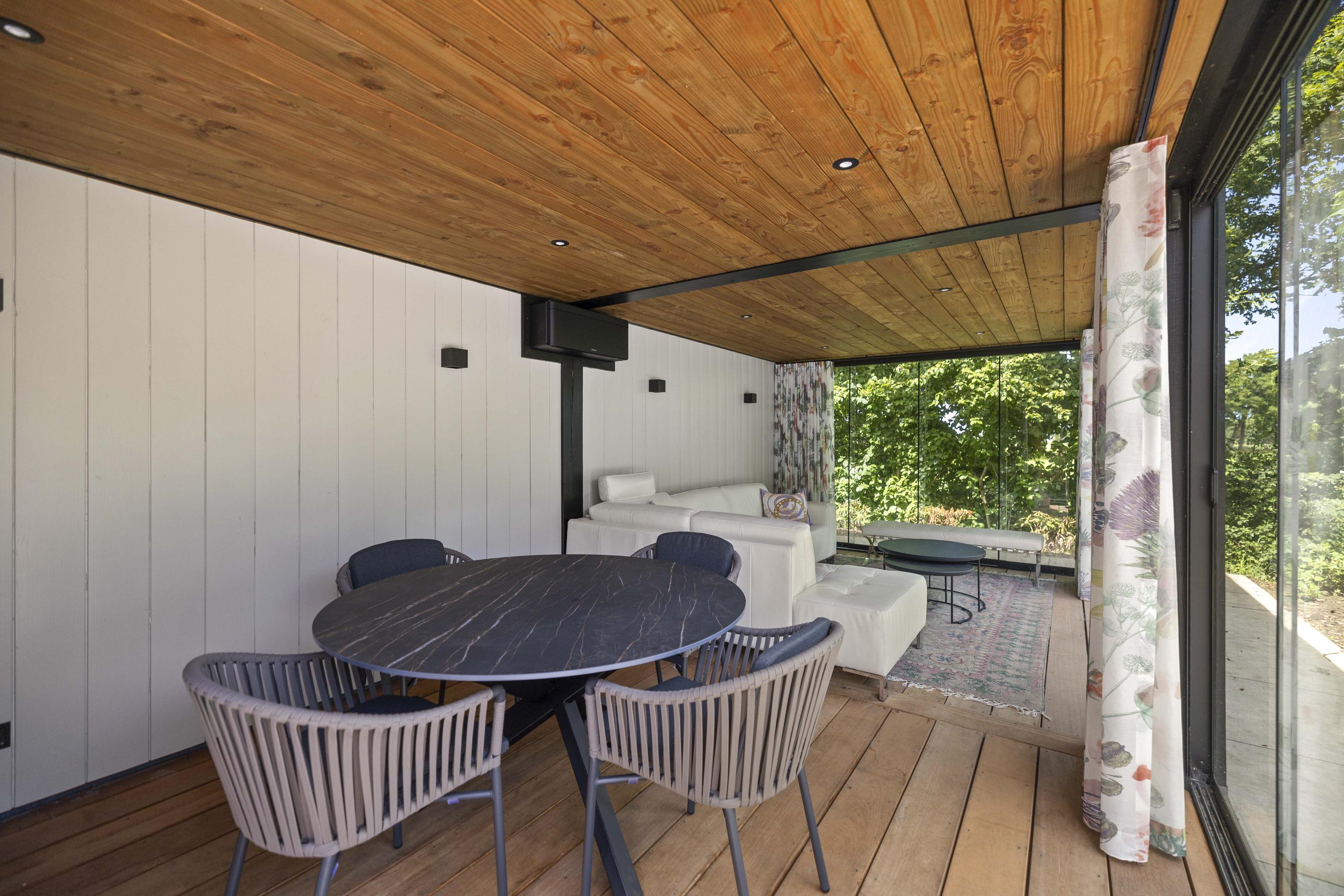 Rondom het huis is een prachtig terras aangelegd, met ruimte voor lange tafels en zonnige zomeravonden vol gezelligheid. In de tuin is overal wel een zitje te vinden. De elegante vijver met gebeeldhouwde friezen is een markant punt in de tuin. Verderop vinden we de sauna met buitendouche (warm/koud water) en kantelemmer en de design-ingerichte tuinkamer inclusief pantry met koel- en wijnkast die – zowel geopend als afgesloten – het hele jaar een heerlijke plek biedt om te chillen.