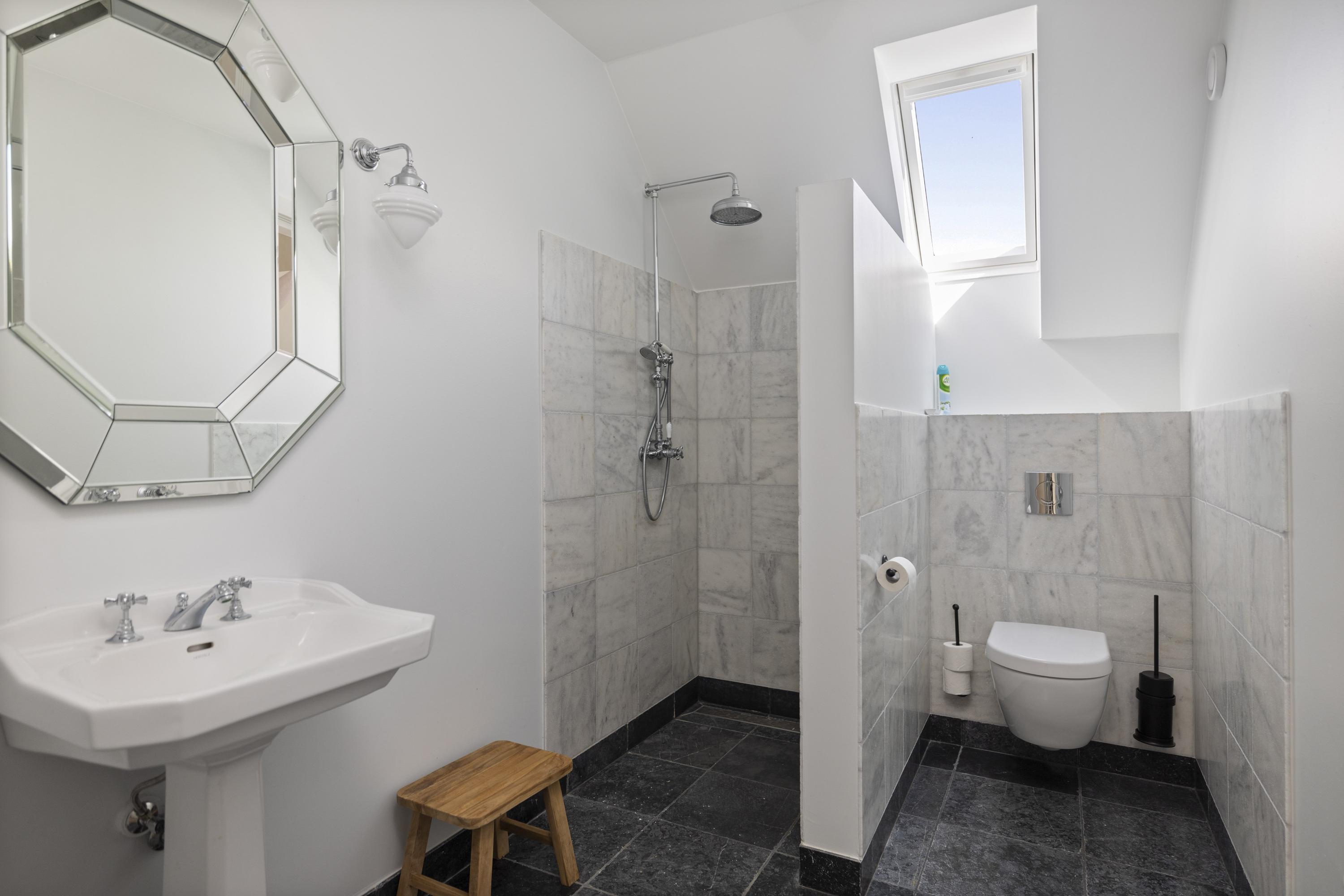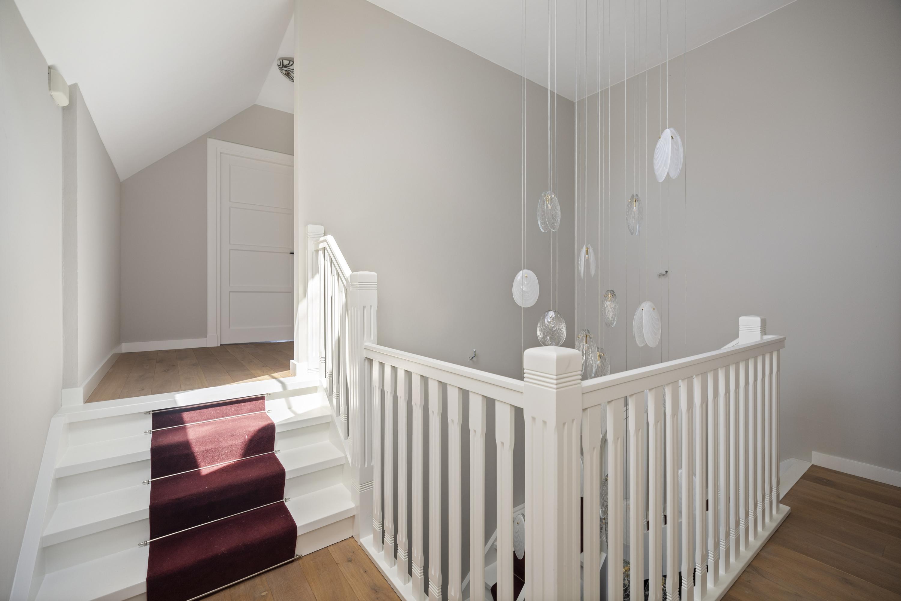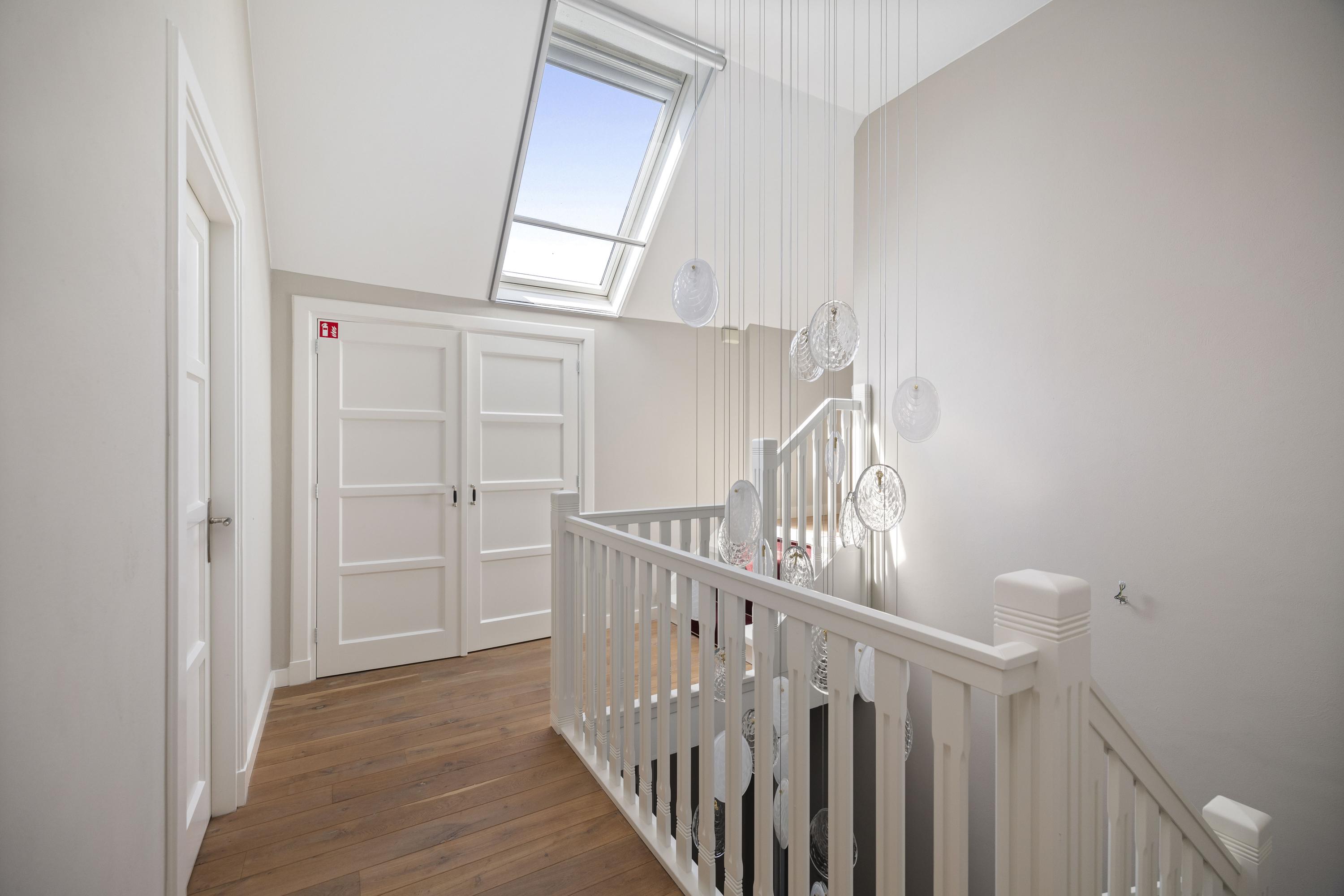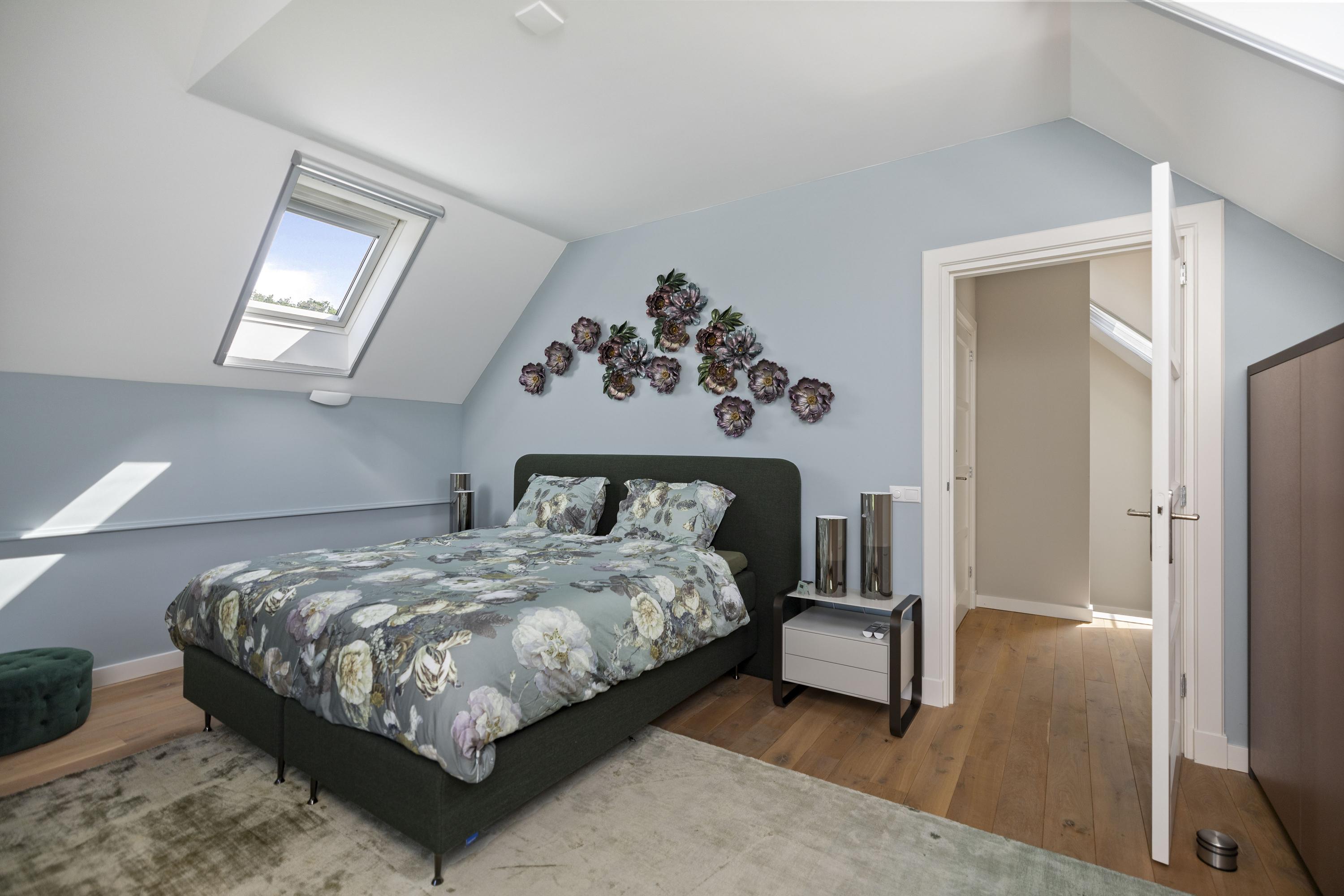 De lichte overloop grenst aan drie slaapkamers, waarvan twee suites met eigen badkamer. De ouderslaapkamer maakt dat je je waant in een boetiekhotel, met een walk-in closet en een geïntegreerde badkamer met bad, inloopdouche en wastafels. En, bubbelen in het vrijstaande bad wordt nog zaliger als u de openhaard-achter-glas erbij inschakelt. Op de overloop de bergruimtes en een separate Geberit AquaClean WC.
