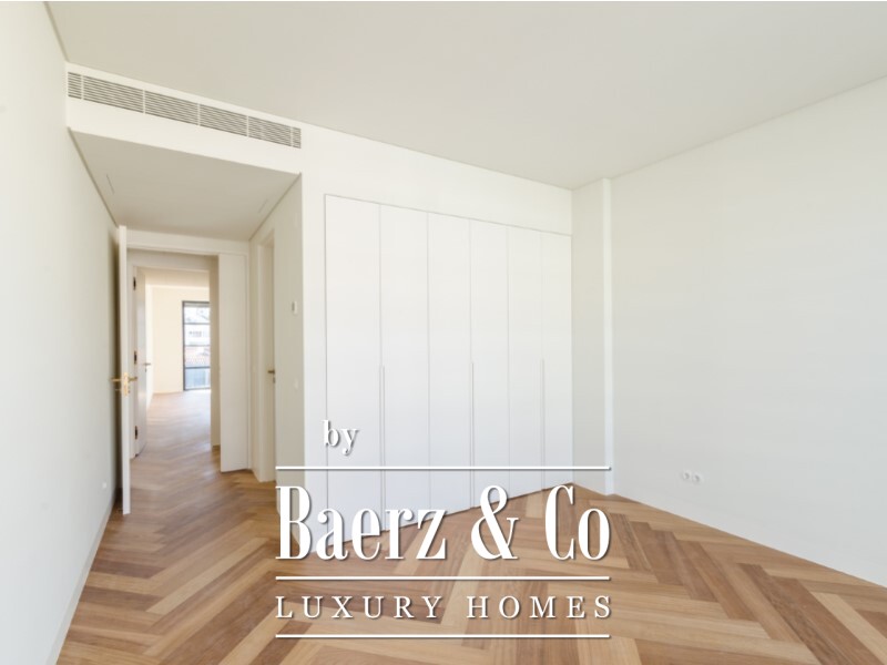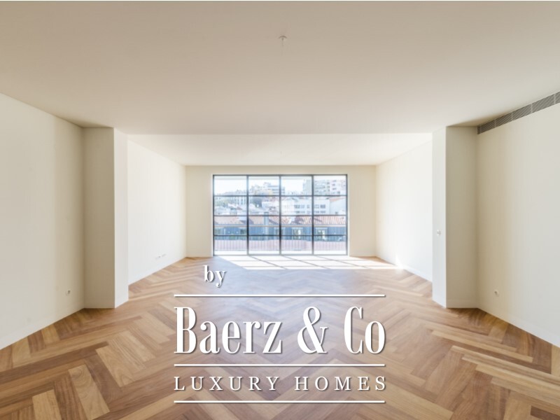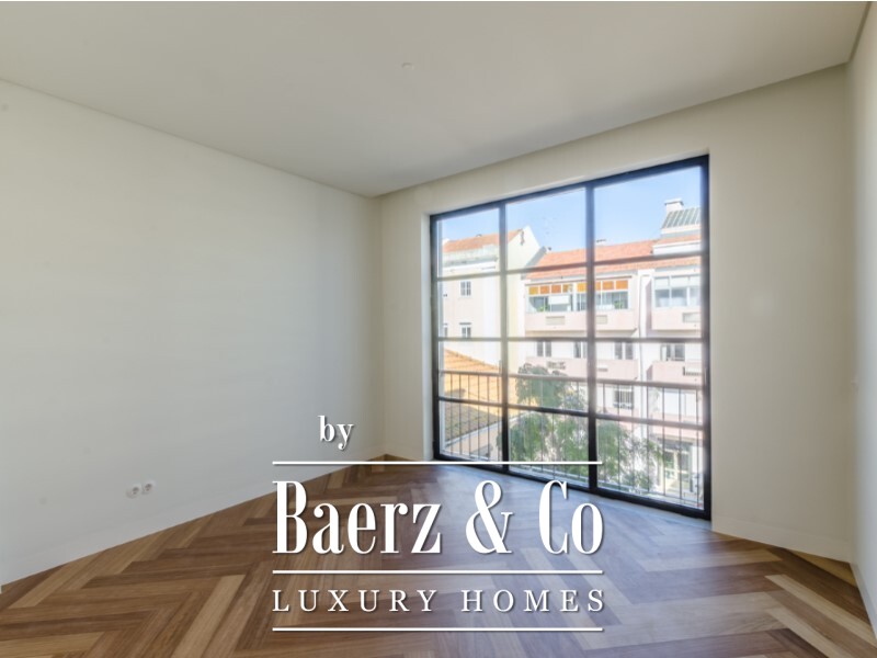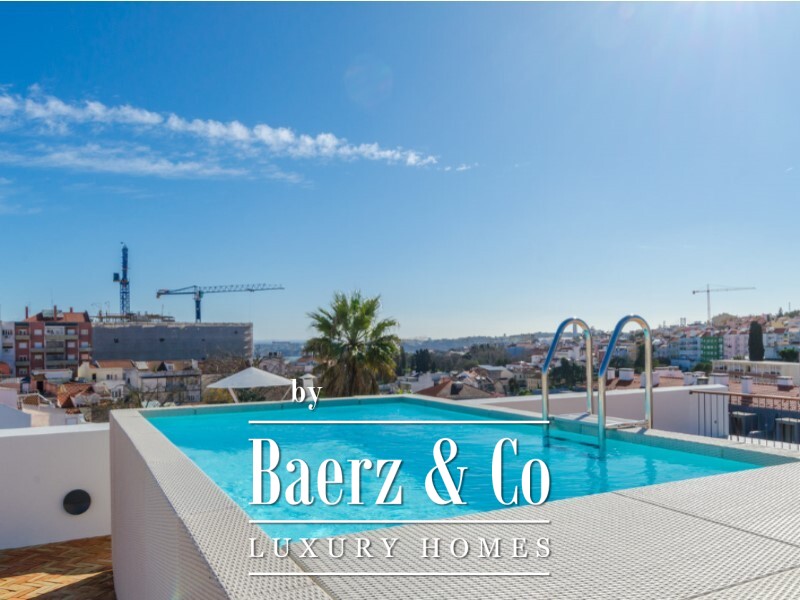 Beide slaapkamers beschikken over een eigen badkamer, wat comfort en zelfstandigheid garandeert. Een gastenbadkamer voegt extra verfijning toe. Het kroonjuweel van deze woning is het privé penthouse-dakterras van 120 m² met zwembad en panoramisch uitzicht over Lissabon. Zacht stadlicht strijkt over de horizon en creëert een uitzonderlijke oase boven het ritme van de stad. Eén parkeerplaats benadrukt het stedelijke gebruiksgemak van dit pand.