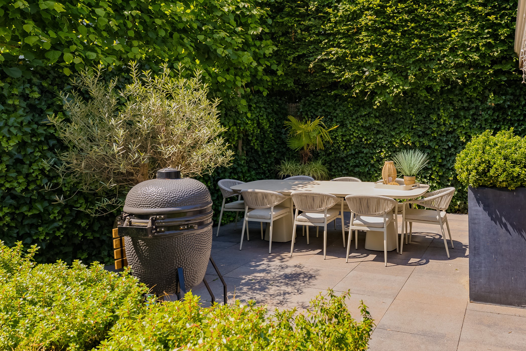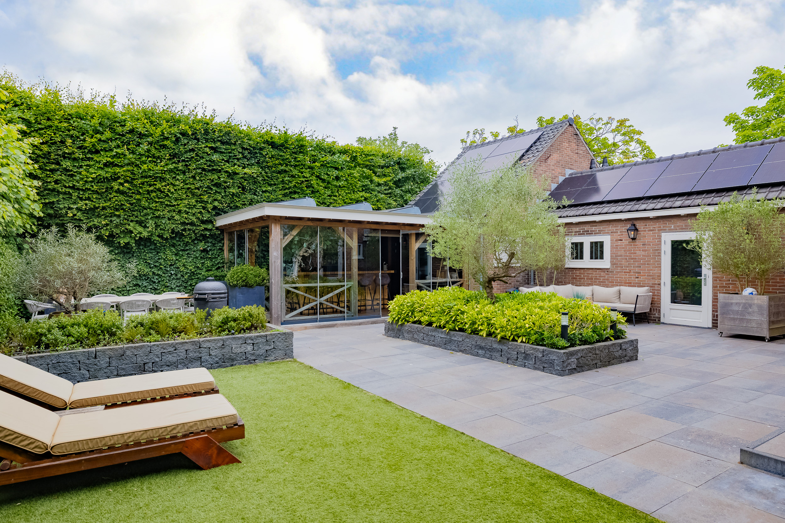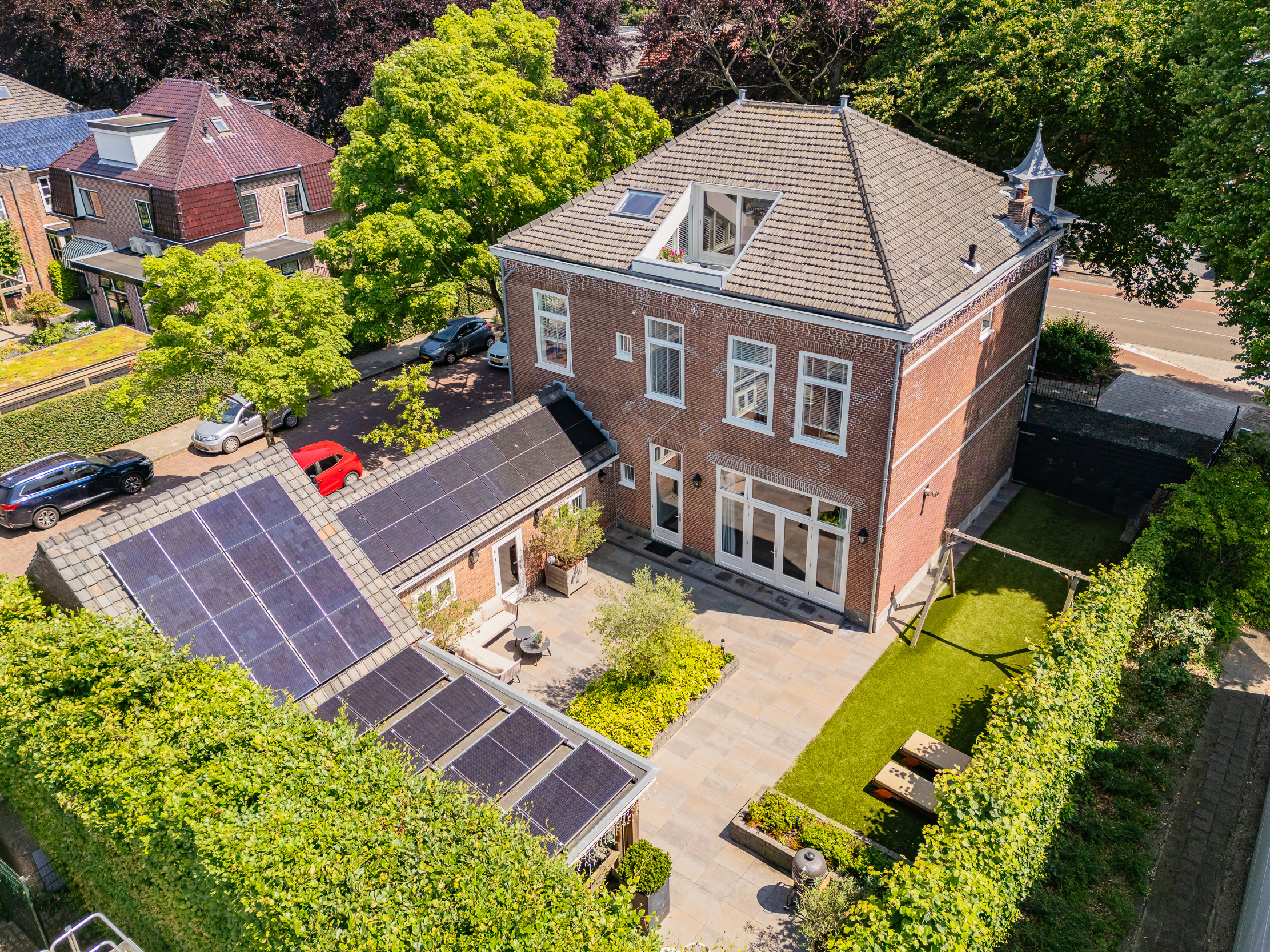 De prachtig aangelegde tuin ligt rondom de woning en heeft o.a. een nieuw in authentieke stijl smeedijzeren hek, verlichting en beregening. De zeer zonnige achtertuin van 13 meter diep en 7.5 meter breed biedt veel privacy en is o.a. voorzien van een grote veranda waarin het ook in de koudere maanden goed toeven is.