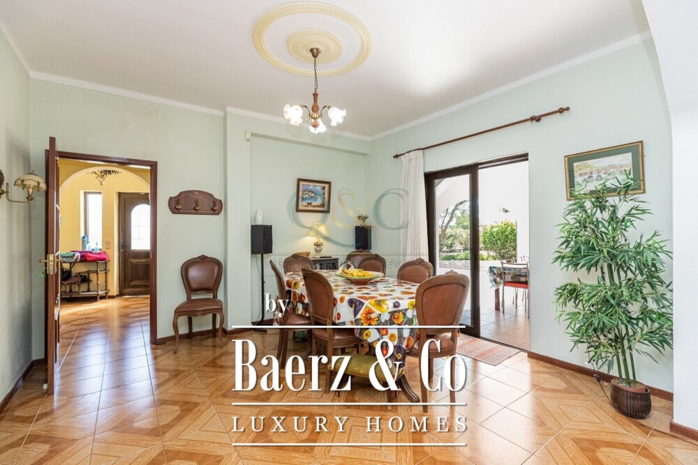 This spacious south facing villa is well located between Loule and Boliquieme with a nice ocean view. When entering the property there is ample parking space and a garage. The ground floor of the house comprises an entrance hall, kitchen, large lounge / dining room with wood burning stove and two of the ensuite bedrooms. On the first floor are two more suites of which the master bedroom has a lovely sea view terrace. Also on this level is a self contained guest