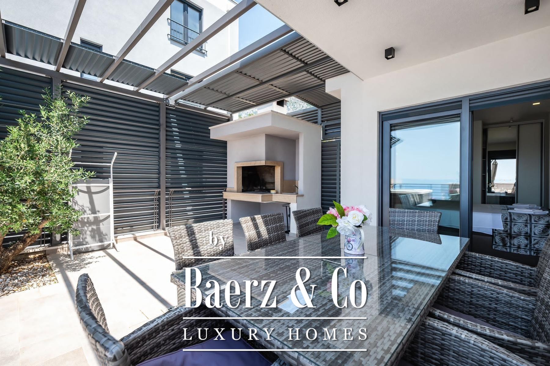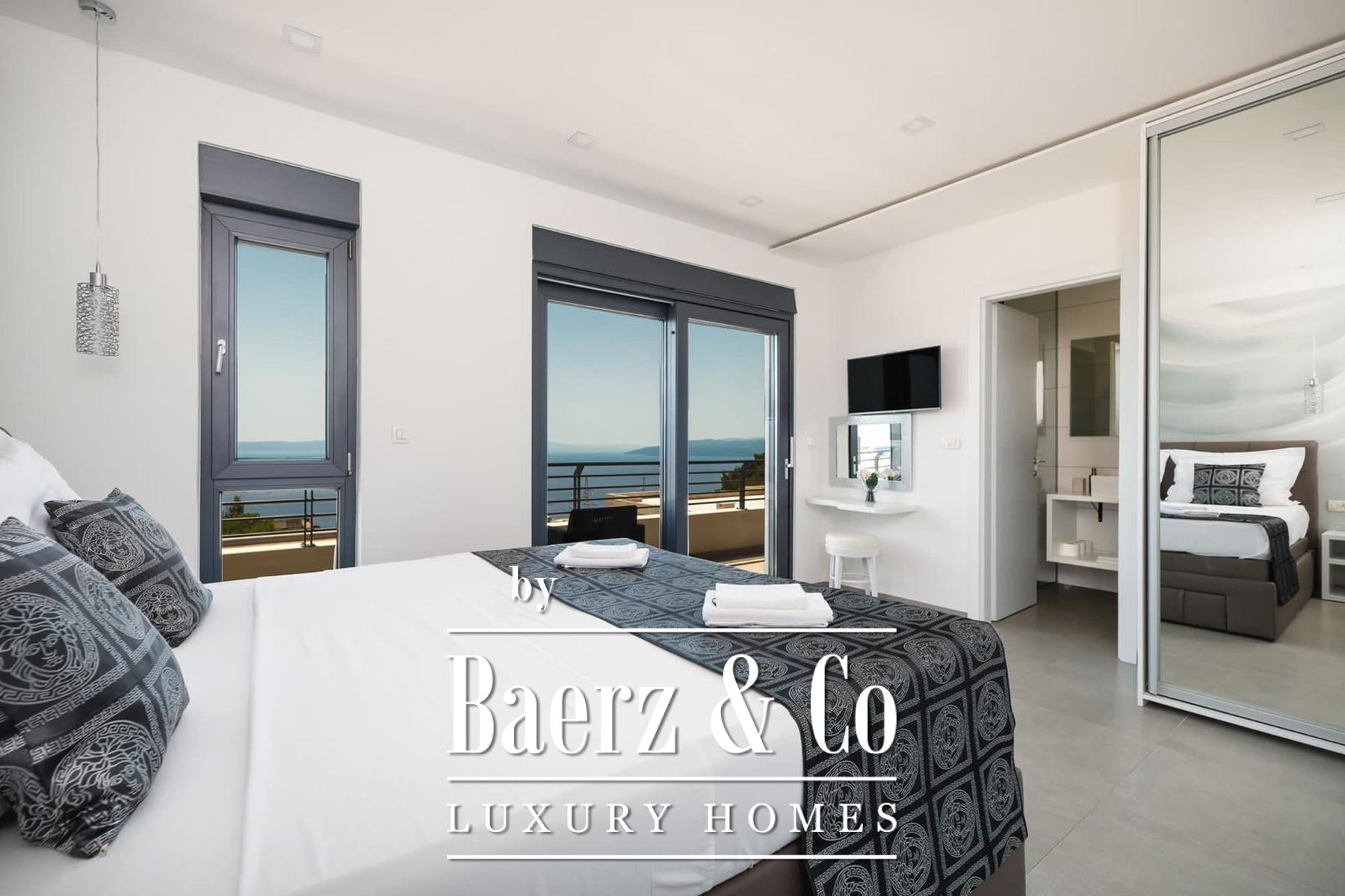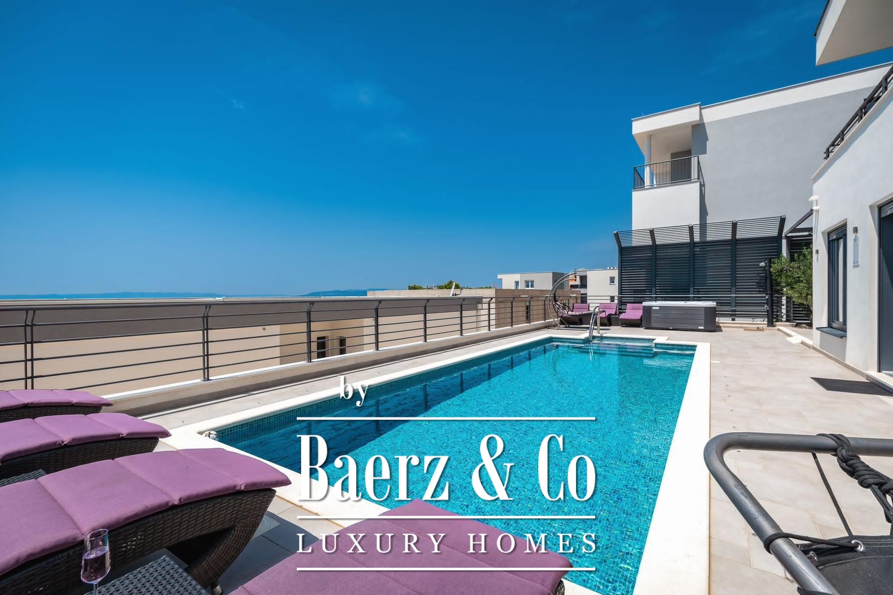 Villa Makarska bevindt zich op een verhoogde locatie, wat een panoramisch uitzicht biedt over zee en de historische stad beneden. Deze villa in Makarska beschikt over 450 m² woonoppervlakte, geïntegreerd op een perceel van 448 m² en benadrukt daarmee de duidelijke verbinding tussen binnen- en buitenleven. De zuidgerichte ligging zorgt in elke hoofdruimte voor constant daglicht, waardoor het dagelijks leven wordt verrijkt met uitzichten die veranderen van zonsopkomst tot avond.