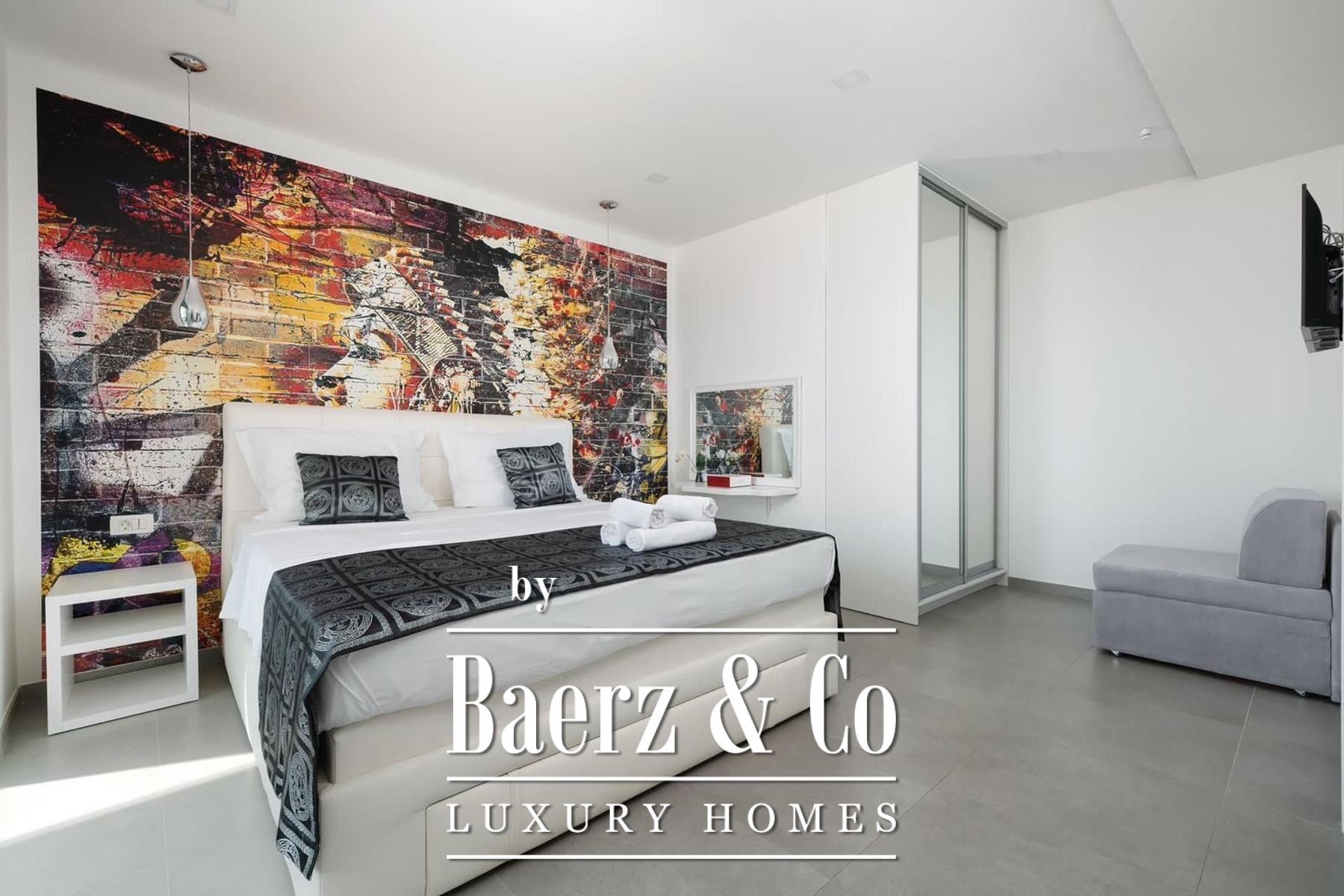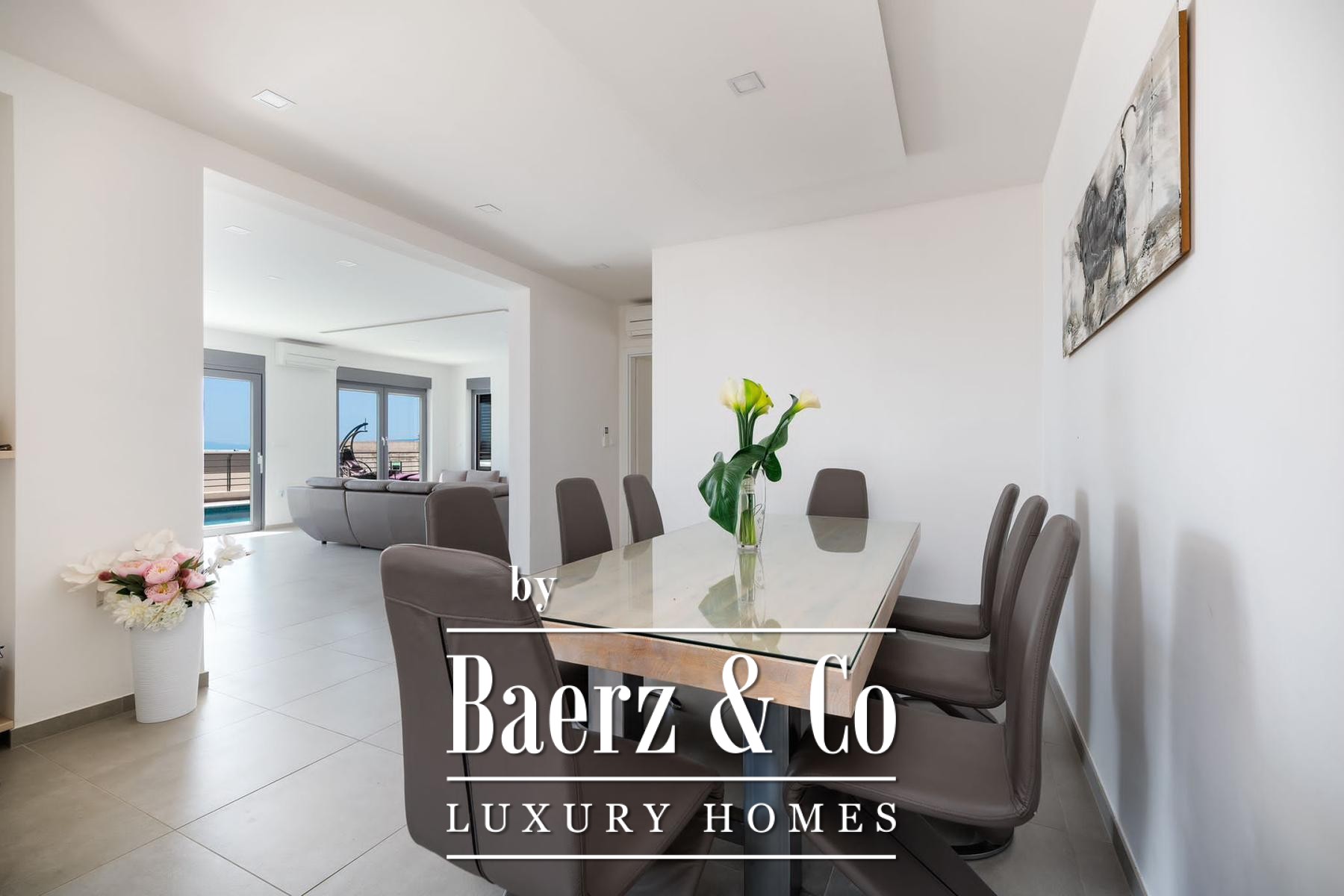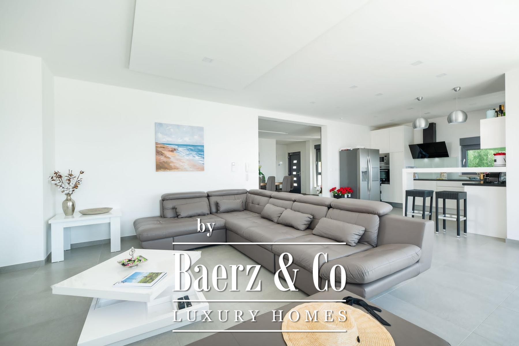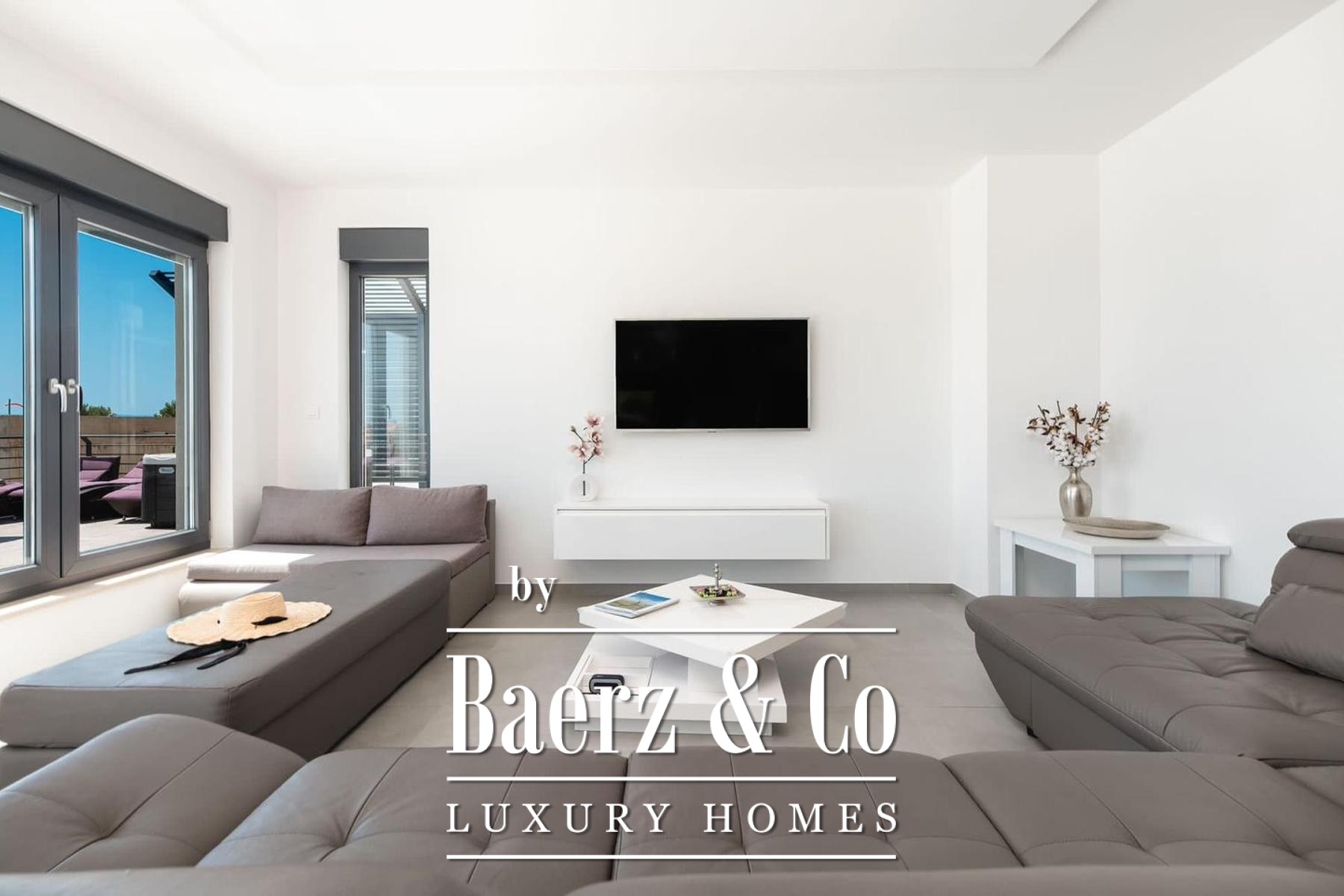 Villa Makarska bevindt zich op een verhoogde locatie, wat een panoramisch uitzicht biedt over zee en de historische stad beneden. Deze villa in Makarska beschikt over 450 m² woonoppervlakte, geïntegreerd op een perceel van 448 m² en benadrukt daarmee de duidelijke verbinding tussen binnen- en buitenleven. De zuidgerichte ligging zorgt in elke hoofdruimte voor constant daglicht, waardoor het dagelijks leven wordt verrijkt met uitzichten die veranderen van zonsopkomst tot avond.