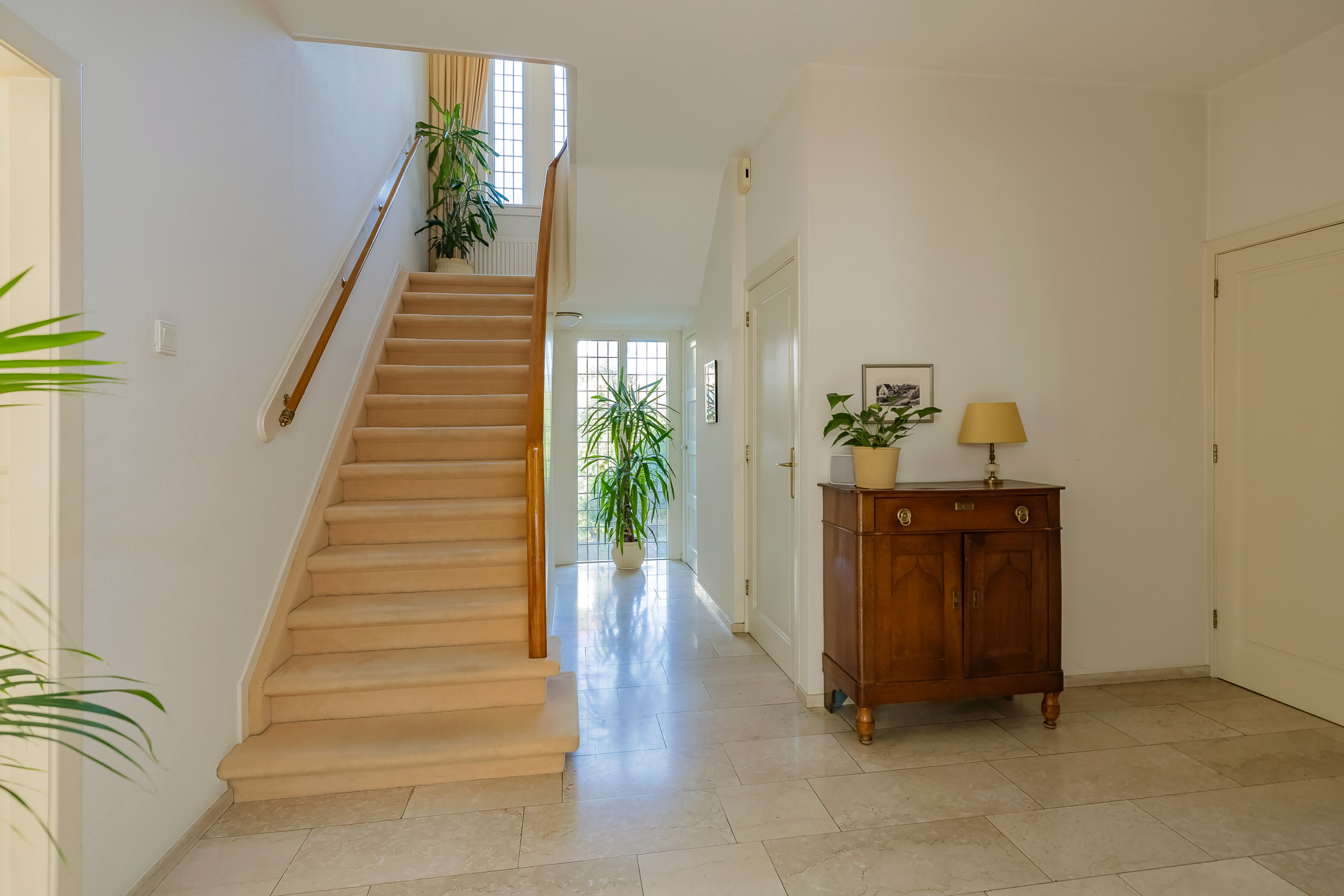 Entree met vestibule en ruime hal, van waaruit alle kamers toegankelijk zijn.