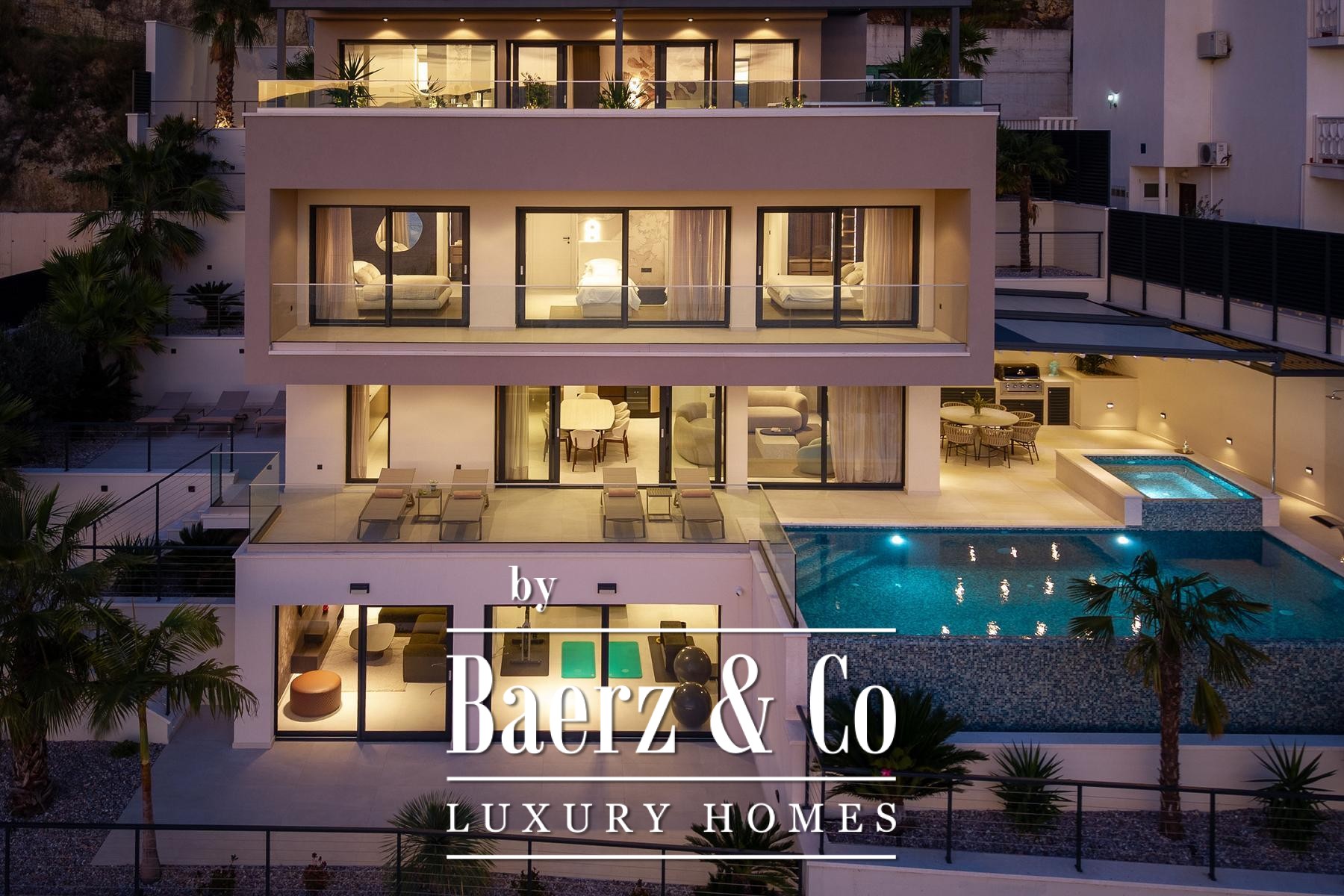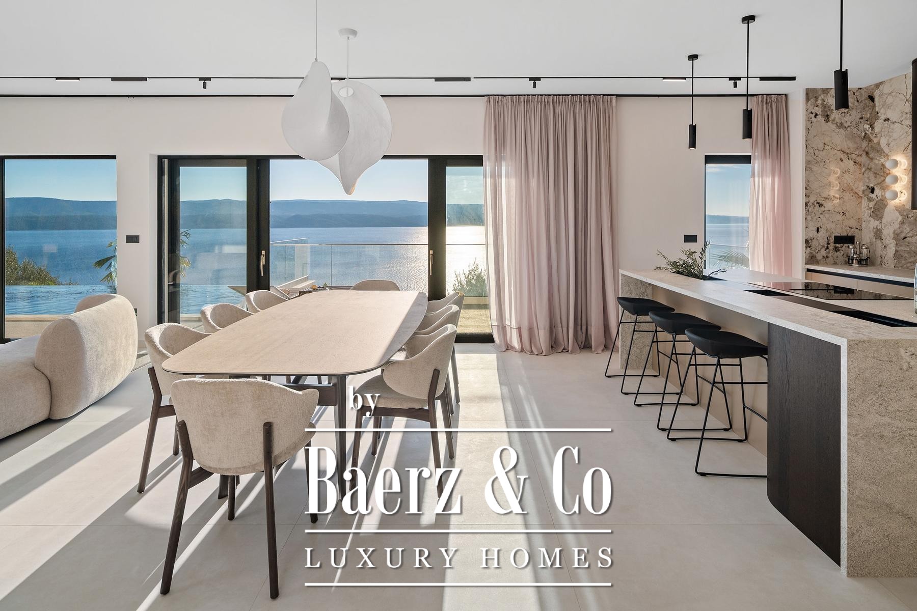 Luxe villa Omiš biedt een samenspel van hedendaagse architectuur en harmonieus uitzicht op zee over vier riante woonlagen. Deze woning beschikt over 415 m² woonoppervlakte op een perceel van 600 m², gelegen op slechts 300 meter van de Adriatische Zee. Elk niveau van de villa biedt een onbelemmerd panoramisch zeezicht, waardoor een sfeer van licht, rust en het ritmische spel van het water ontstaat.