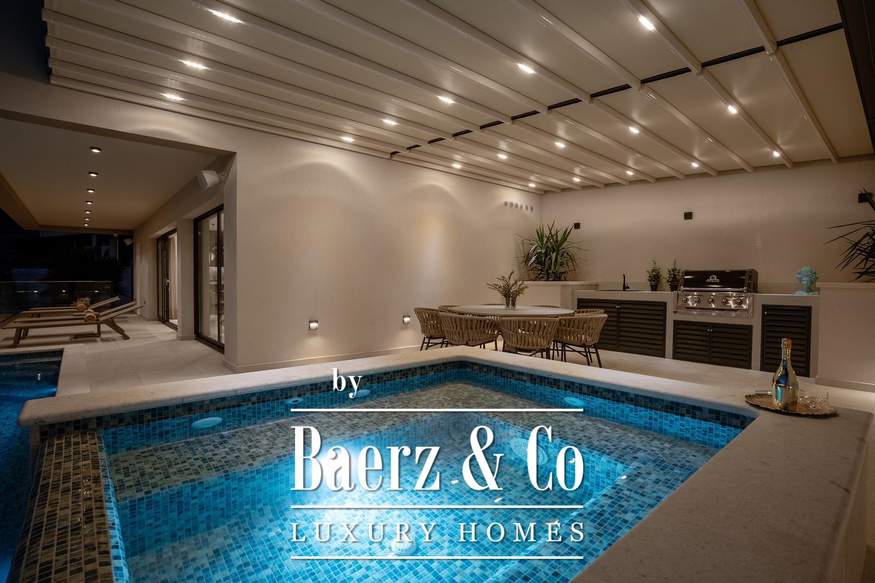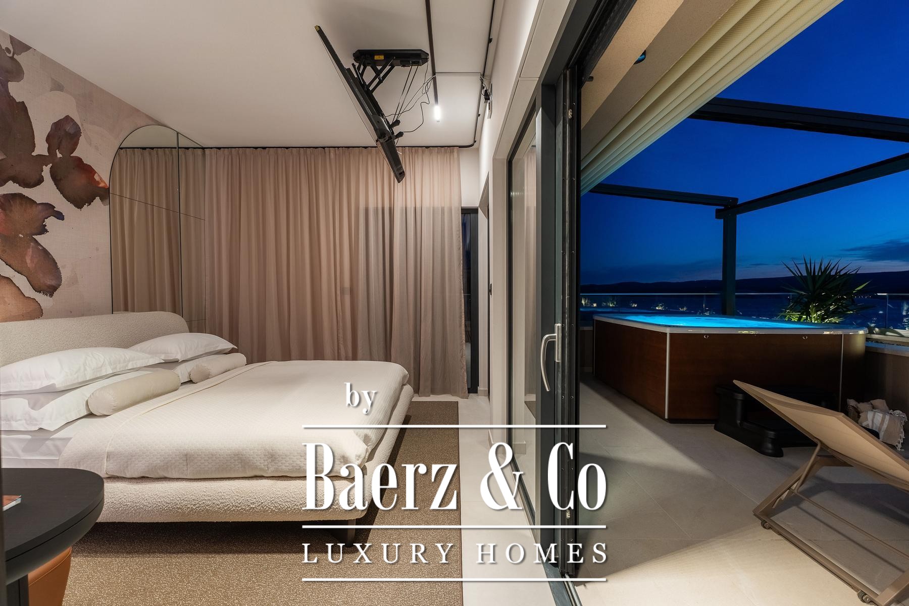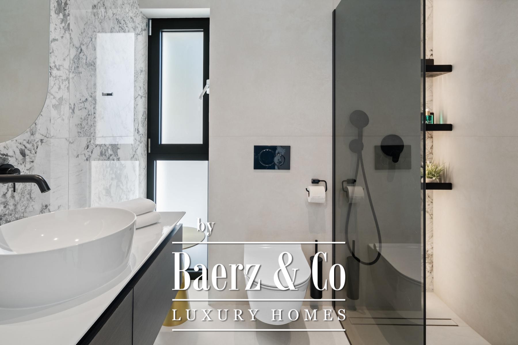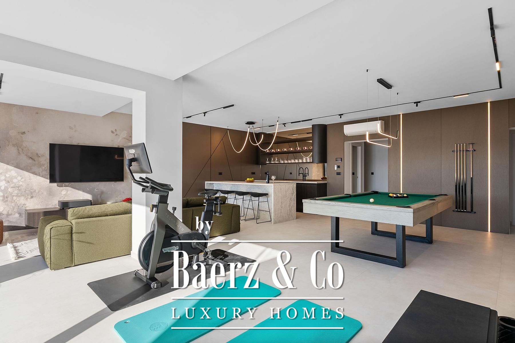 Het ontwerp van de villa is gericht op privacy, met vijf royale slaapkamers, elk voorzien van een eigen badkamer. De master suite beschikt over een inloopkast en de leefruimtes grenzen aan terrassen en loggia’s met meditatief tuinzicht. De lichte woonkamer met open indeling en designkeuken sluiten aan op een deels overdekt terras met een infinity pool, jacuzzi, zonneterras en volledig geautomatiseerde tuin, waardoor binnen- en buitenleven naadloos samengaan. De benedenverdieping biedt een entertainmentruimte van 66 m², een mini-gym, sauna en technische voorzieningen, alles met zicht op de zee.