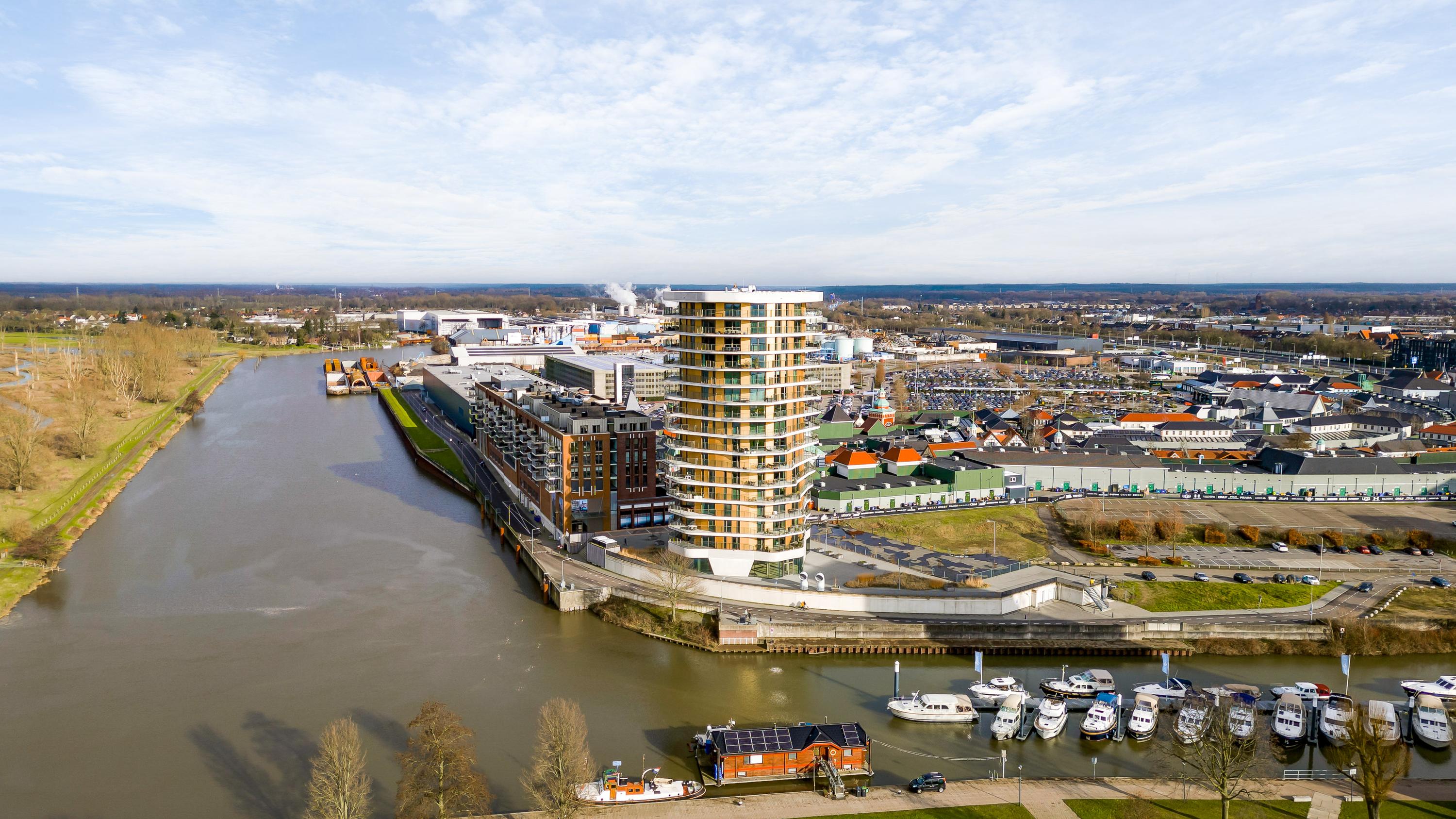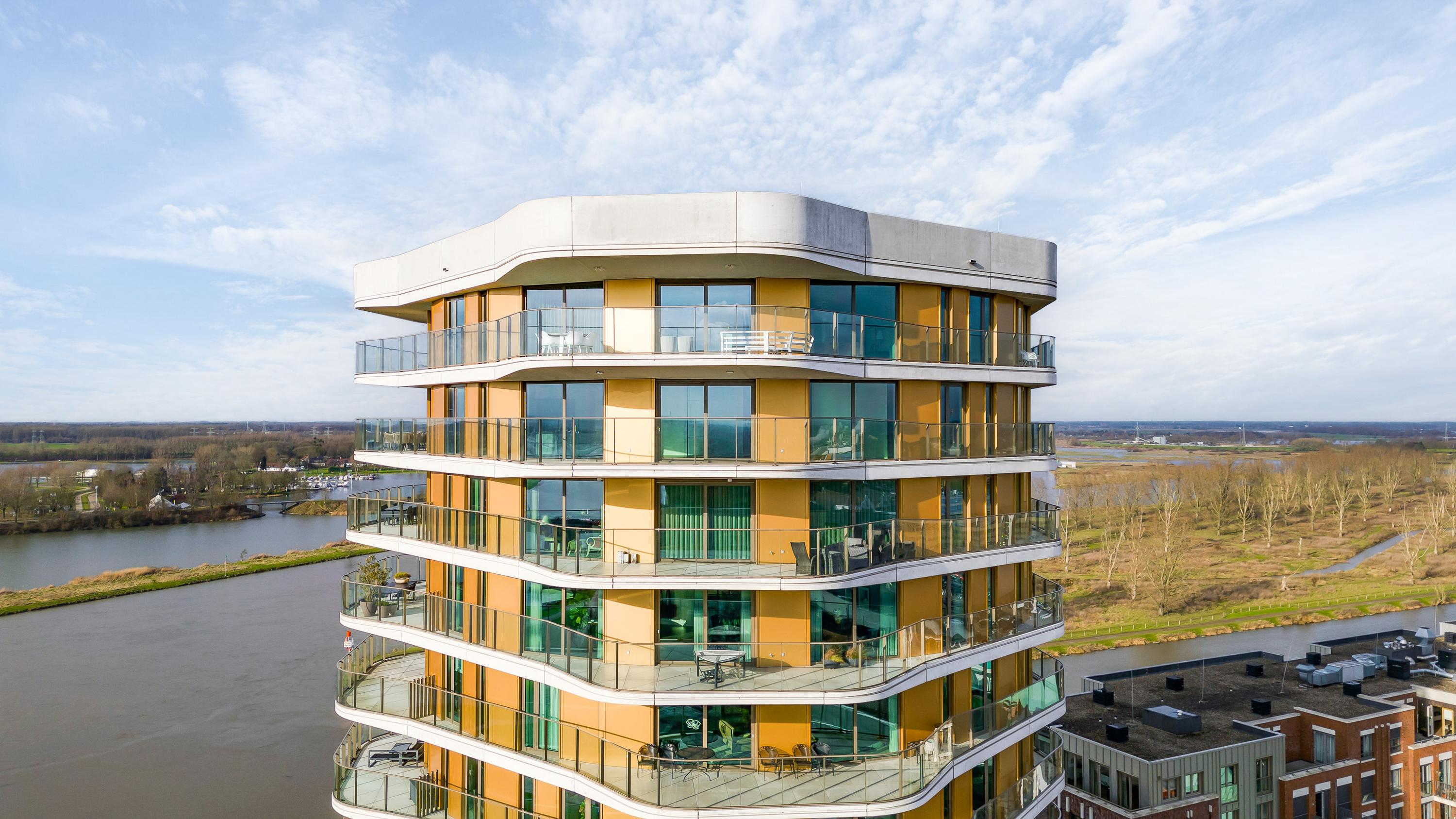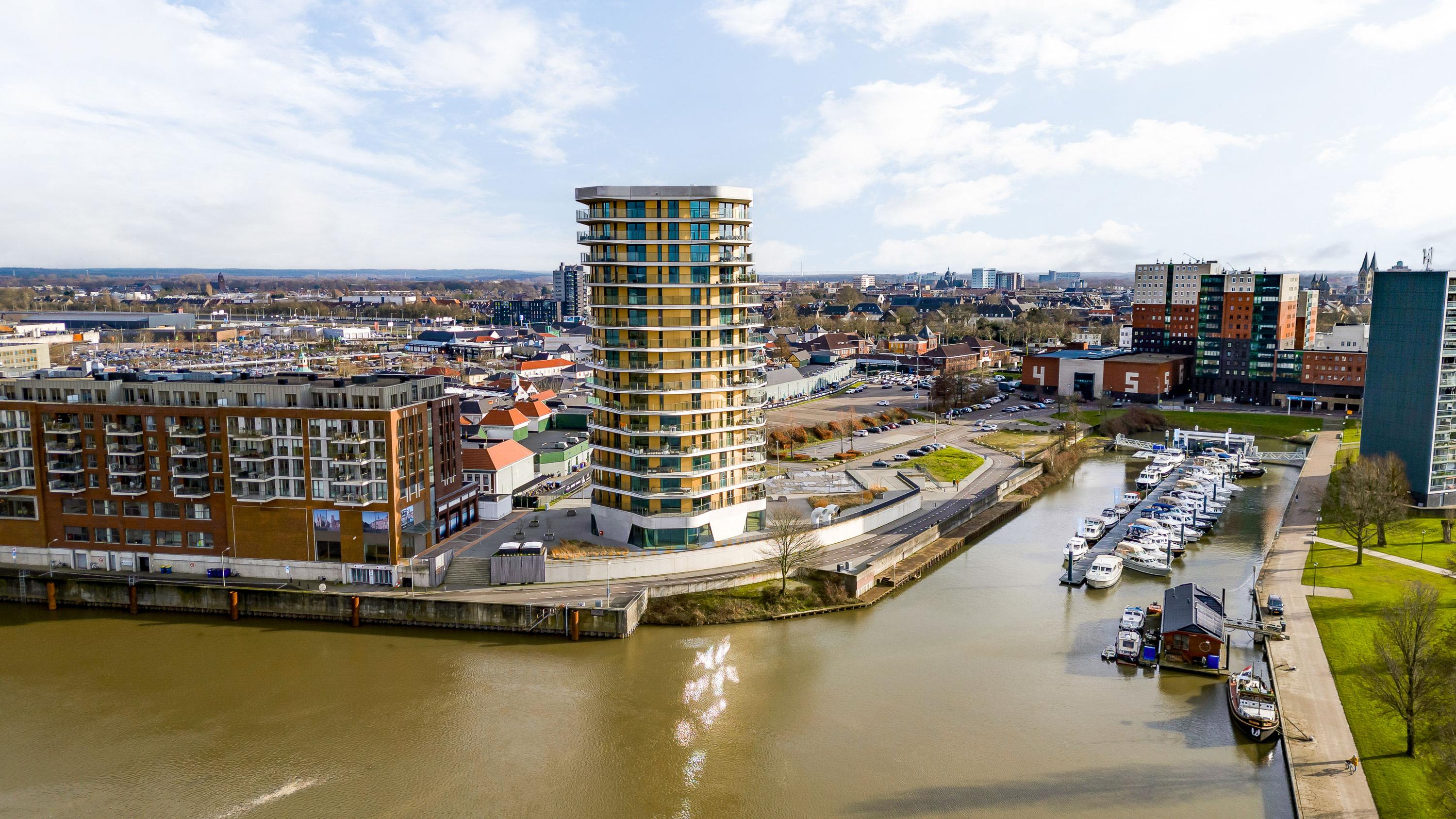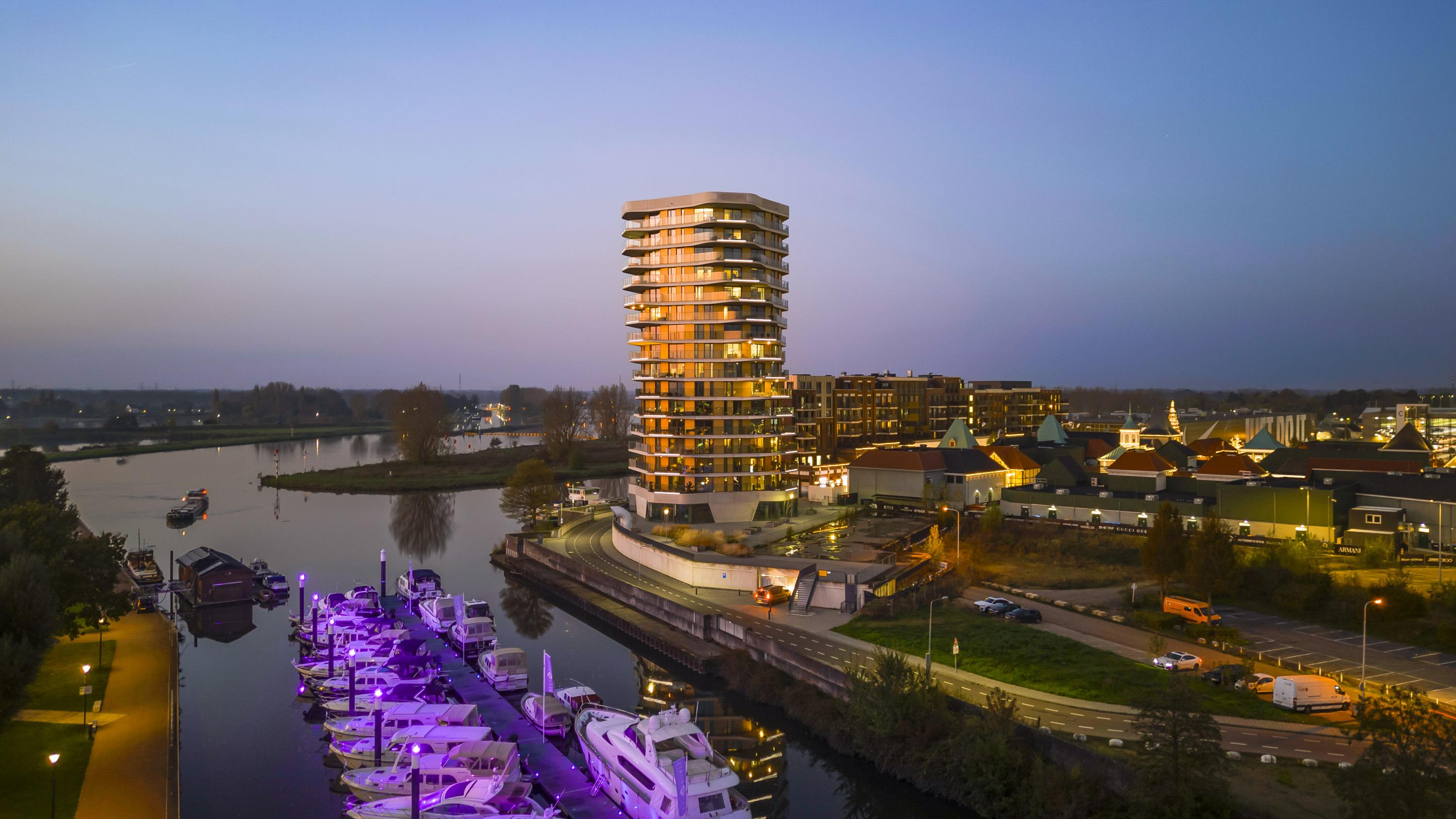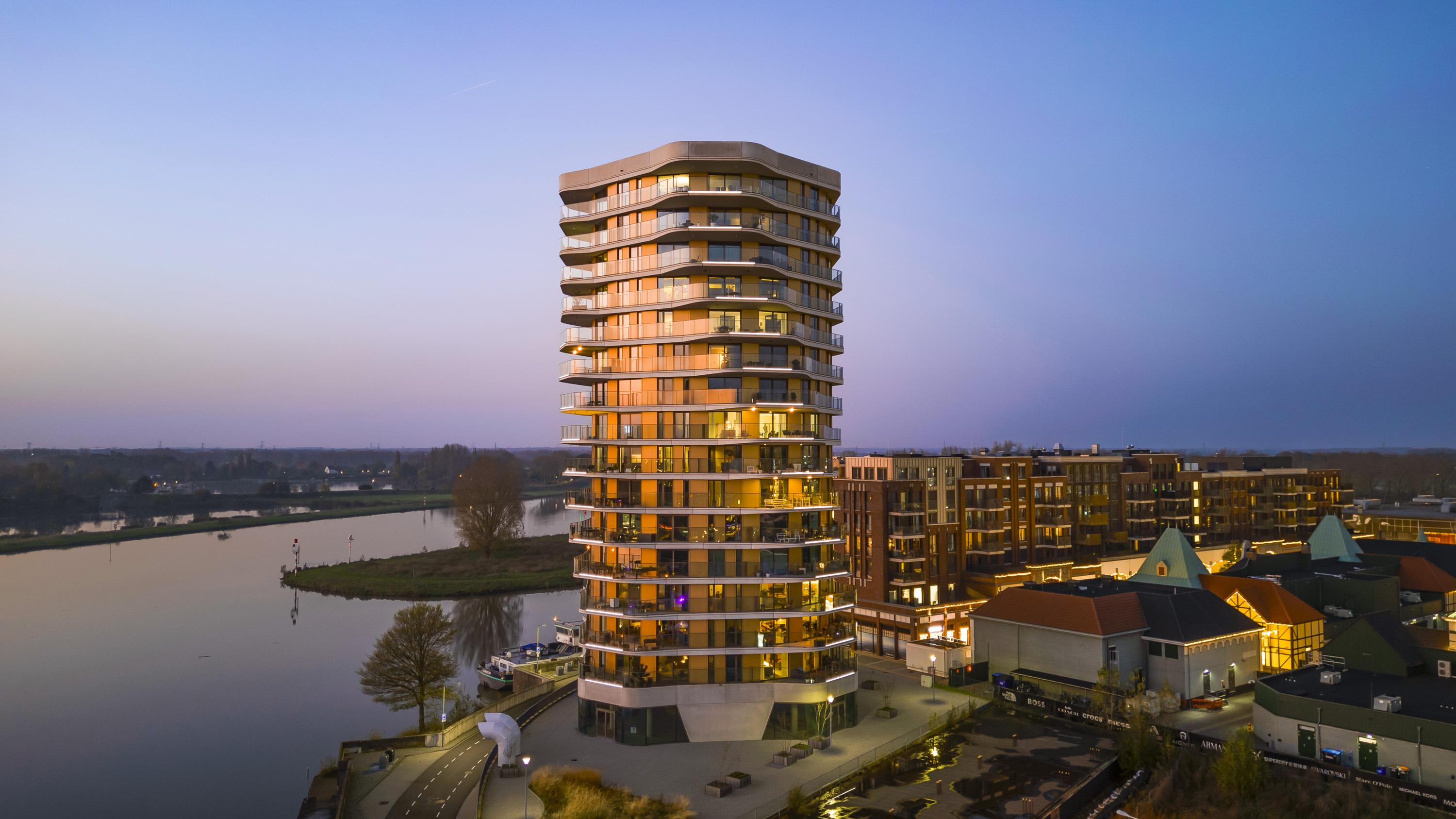 Het appartementencomplex heeft een perfecte ligging ten opzichte van de binnenstad van Roermond maar ook het behaaglijke gevoel van een "vrije woonomgeving" met het weidse panoramisch uitzicht over de Maasplassen van Roermond.