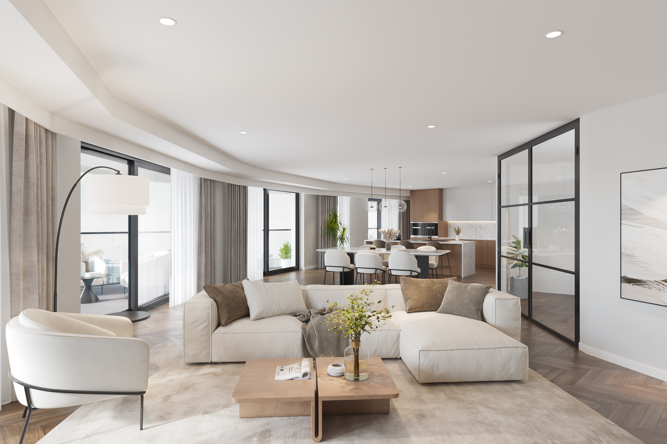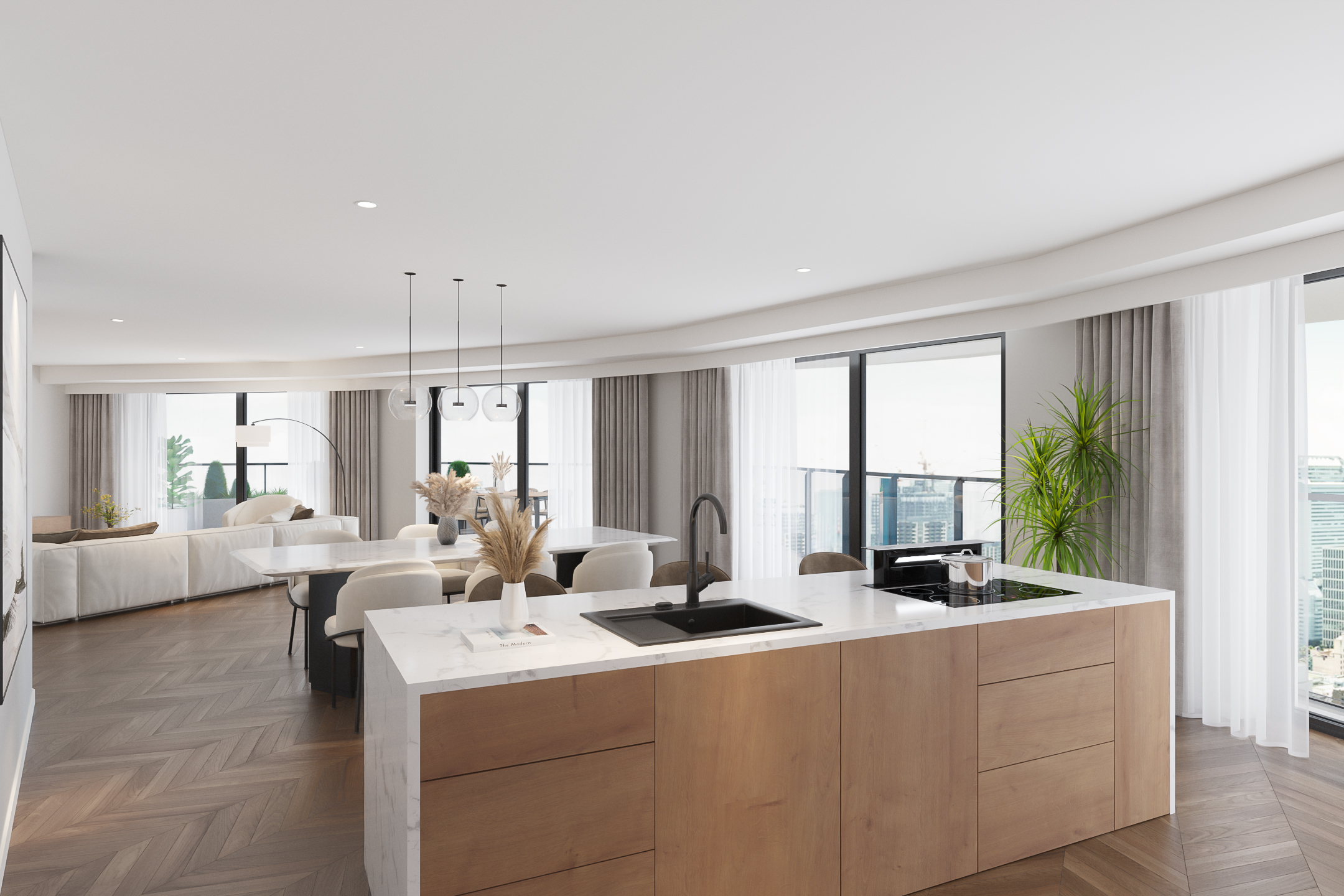 Het moderne, trendy penthouse type "Dave Brubeck" is te vinden op verdieping 14 en heeft een riante woonoppervlakte van maar liefst ca. 185 m2.