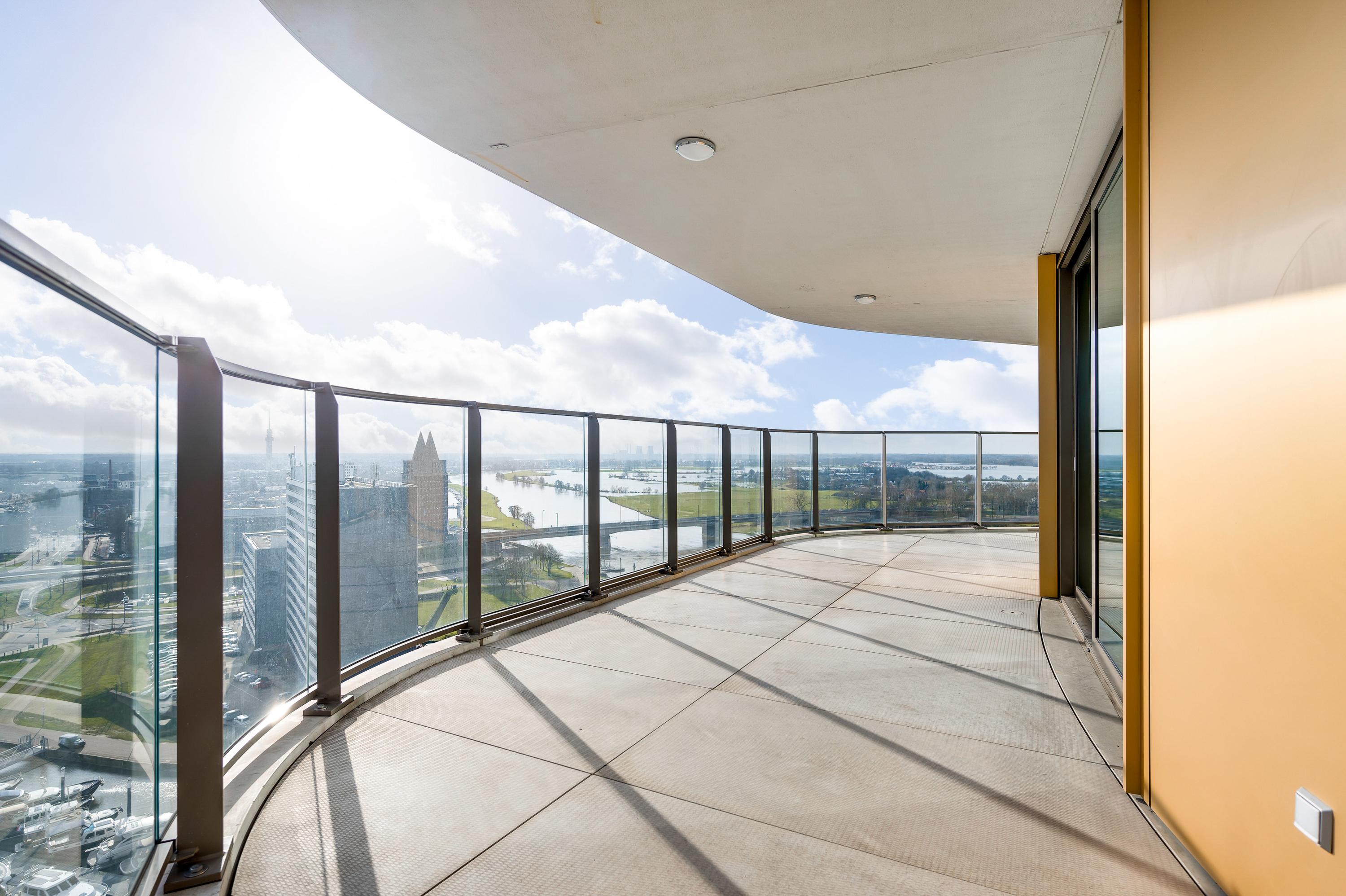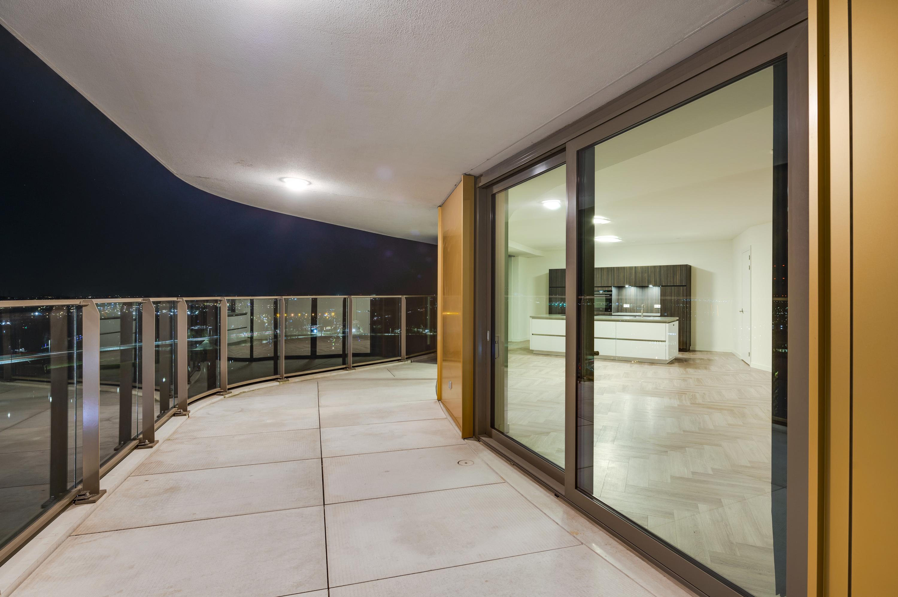 Het ruim bemeten balkon van in totaal maar liefst ca. 52 m2 is een waar verlengstuk van uw woonkamer. Het balkon is voorzien van glazen balustrades, waardoor het uitzicht ongeschonden blijft en u heerlijk kunt vertoeven tijdens lange zomeravonden.