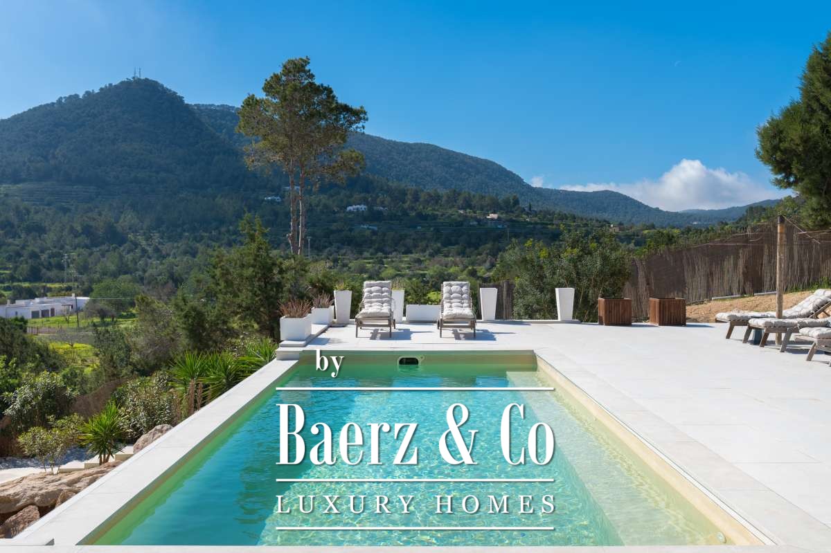 De omgevingVerscholen in de groene heuvels van het westen van Ibiza biedt deze villa een zeldzame combinatie van rust, ruimte en indrukwekkende vergezichten. Gelegen op een royaal perceel van maar liefst 19.600 m² geniet u hier van absolute privacy, omringd door mediterrane natuur en glooiende heuvels. Vanaf verschillende plekken op het terrein kijkt u uit over het landschap met in de verte zelfs een glimp van de zee. Tegelijkertijd liggen het charmante San José en enkele van Ibiza’s mooiste stranden, zoals Cala Tarida, Cala Conta en Cala Bassa, op korte rijafstand.De villaDe villa beschikt over een totale woonoppervlakte van circa 330 m², inclusief een ruim souterrain van ongeveer 120 m², en combineert comfort, ruimte en privacy op een unieke manier. Met vier slaapkamers en drie badkamers is de woning perfect ingericht voor zowel familie als gasten, terwijl de royale opzet zorgt voor een ontspannen en luxe woonervaring. Grote raampartijen laten het daglicht rijkelijk binnenstromen en creëren een prachtige verbinding tussen de binnenruimtes en het omliggende landschap. Het comfortniveau ligt hoog: vloerverwarming en airconditioning in alle ruimtes zorgen het hele jaar door voor een aangenaam klimaat. Daarnaast beschikt de villa over diverse luxe voorzieningen zoals een indoor gym, sauna, jacuzzi en een wijnkelder van circa 20 m². Ook technisch is de woning uitstekend uitgerust met zonnepanelen, een batterijopslag van 32 kW en een watertank die wordt gevuld via een gemeenschappelijke bron.De buitenruimtesDe buitenruimtes vormen het hart van deze villa en zijn ontworpen om optimaal te genieten van het mediterrane buitenleven. Rondom de woning liggen meerdere terrassen met een totale oppervlakte van circa 300 m², waar zon, uitzicht en privacy samenkomen. Het infinity zwembad van ongeveer 30 m² met natuurlijke waterval vormt het stralende middelpunt en lijkt naadloos over te vloeien in het omliggende landschap. Daarnaast beschikt het terrein over een stijlvolle outdoor living van circa 100 m², een perfecte setting voor lange zomerdagen, diners onder de sterren en ontspannen momenten met vrienden en familie. Verspreid over het perceel bevinden zich verschillende loungeplekken en een buiten gym van circa 30 m². Binnen de huidige vraagprijs behoort tevens de mogelijkheid tot het plaatsen van een mobiele padelbaan. Ook is er een charmant houten gastenverblijf van circa 20 m² met eigen terras en een carport van circa 40 m². Dankzij het royale perceel en de uitzonderlijke privacy voelt deze villa als een privéresort midden in de natuur.