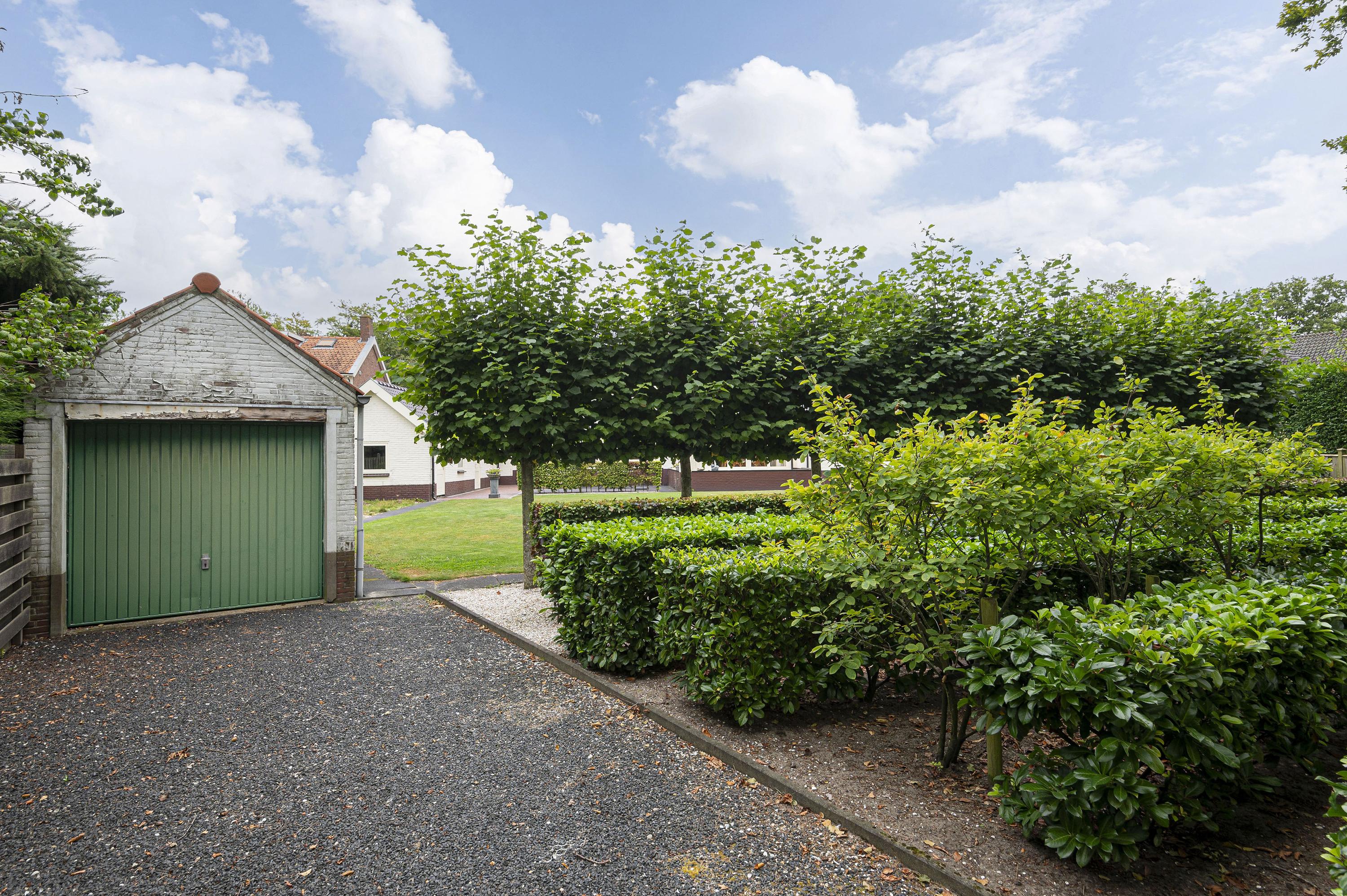 Fraai aangelegde tuin met twee oprijlanen, meerdere terrassen en biedt aan zee aan speelruimte voor de kinderen. De garage heeft een apart toilet en biedt genoeg ruimte voor de auto. Daarnaast is er nog een extra garage aan de achterzijde gelegen, welke een oppervlakte heeft van ca 16m².