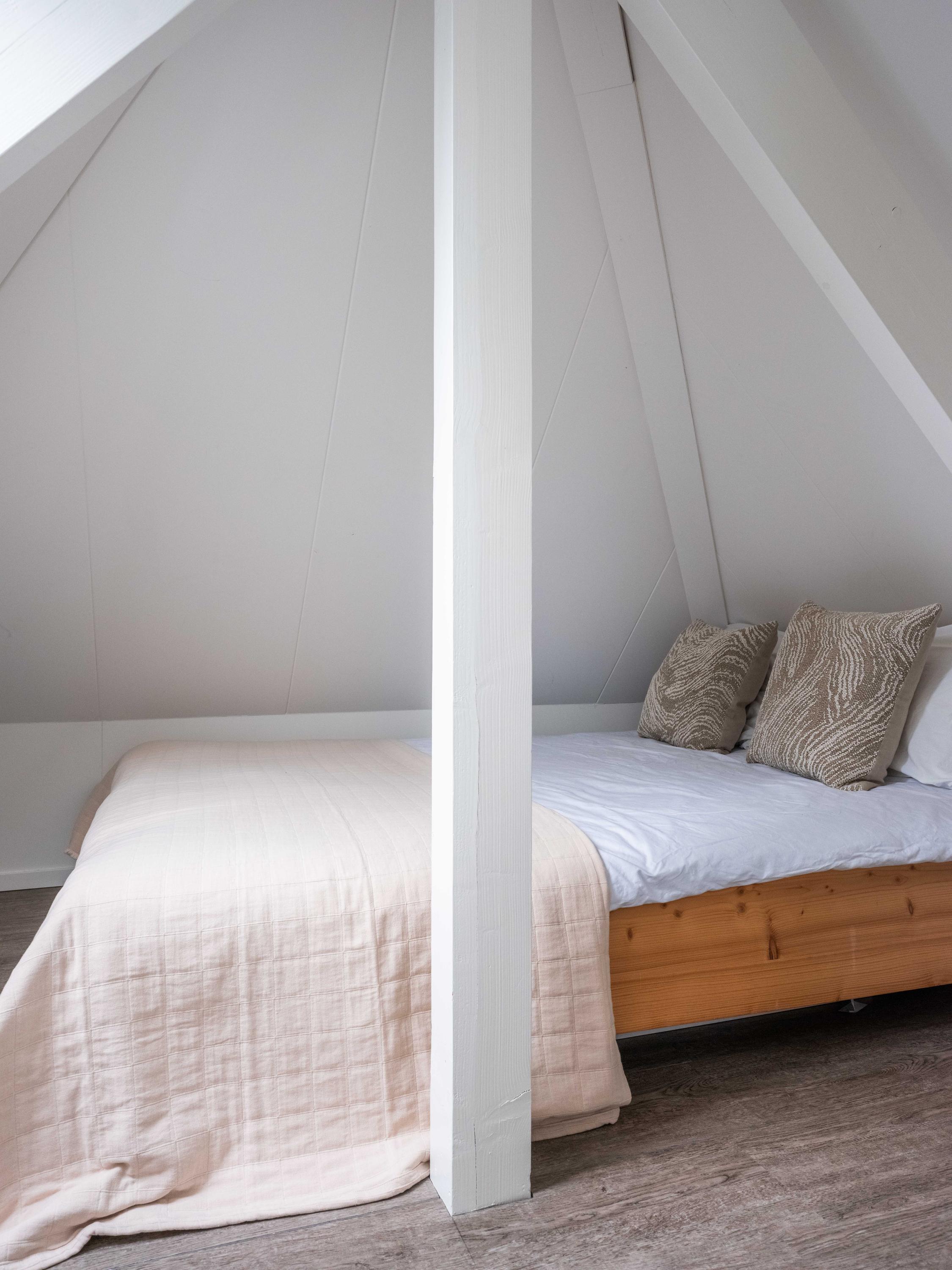 De tweede verdieping biedt nog meer ruimte: een grote overloop en twee kamers. Eén daarvan doet nu dienst als logeerkamer, de andere kamer is nu niet in gebruik maar kan eveneens als werkkamer worden gebruikt.