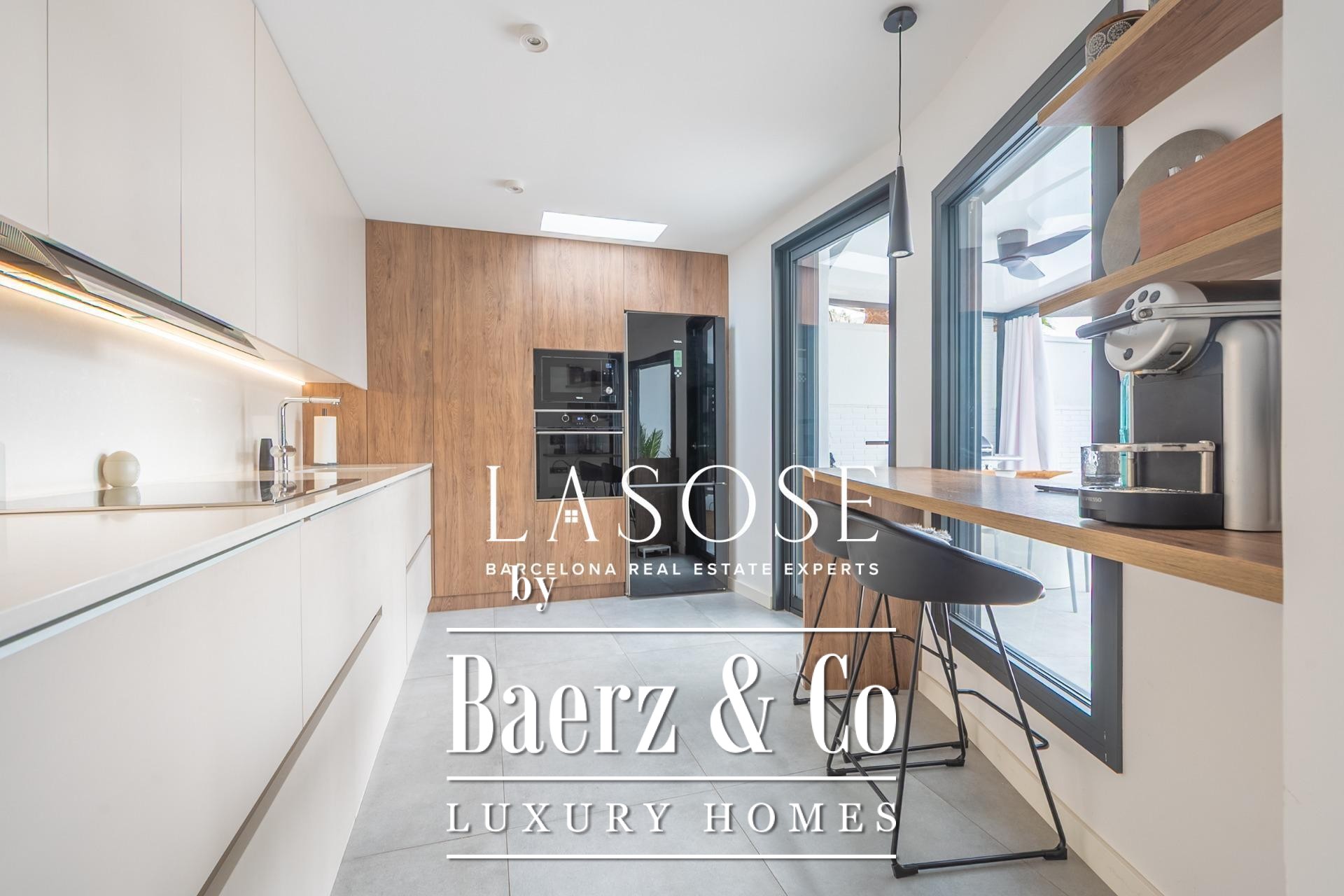 Villa Sitges Vallpineda biedt verheven mediterraan wonen in een discrete, residentiële omgeving. Deze gelijkvloerse villa van 100 m² is volledig gerenoveerd volgens strakke, eigentijdse standaarden en beschikt over twee slaapkamers en twee badkamers die naadloos aansluiten op de royale leefruimtes. De woning is gelegen op een perceel van 278 m², omringd door statige palmbomen en prachtige, open uitzichten, waar rust en harmonie tussen binnen en buiten centraal staan. Ramen van vloer tot plafond laten overvloedig daglicht binnen in de hoofdwoonkamer en eetgedeelte, die natuurlijk overlopen in het terras en het privézwembad—ideaal voor familiemomenten of rustige contemplatie.