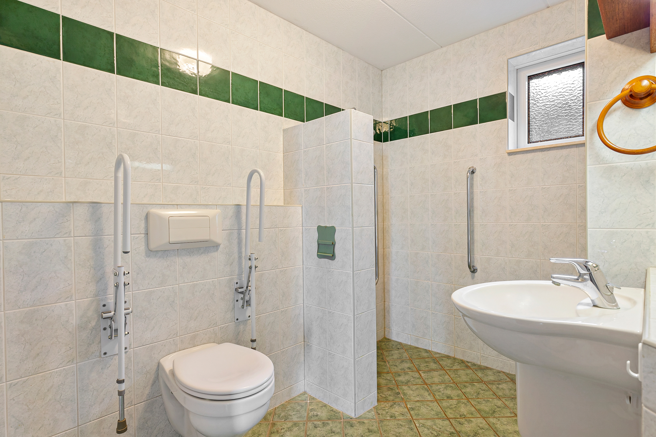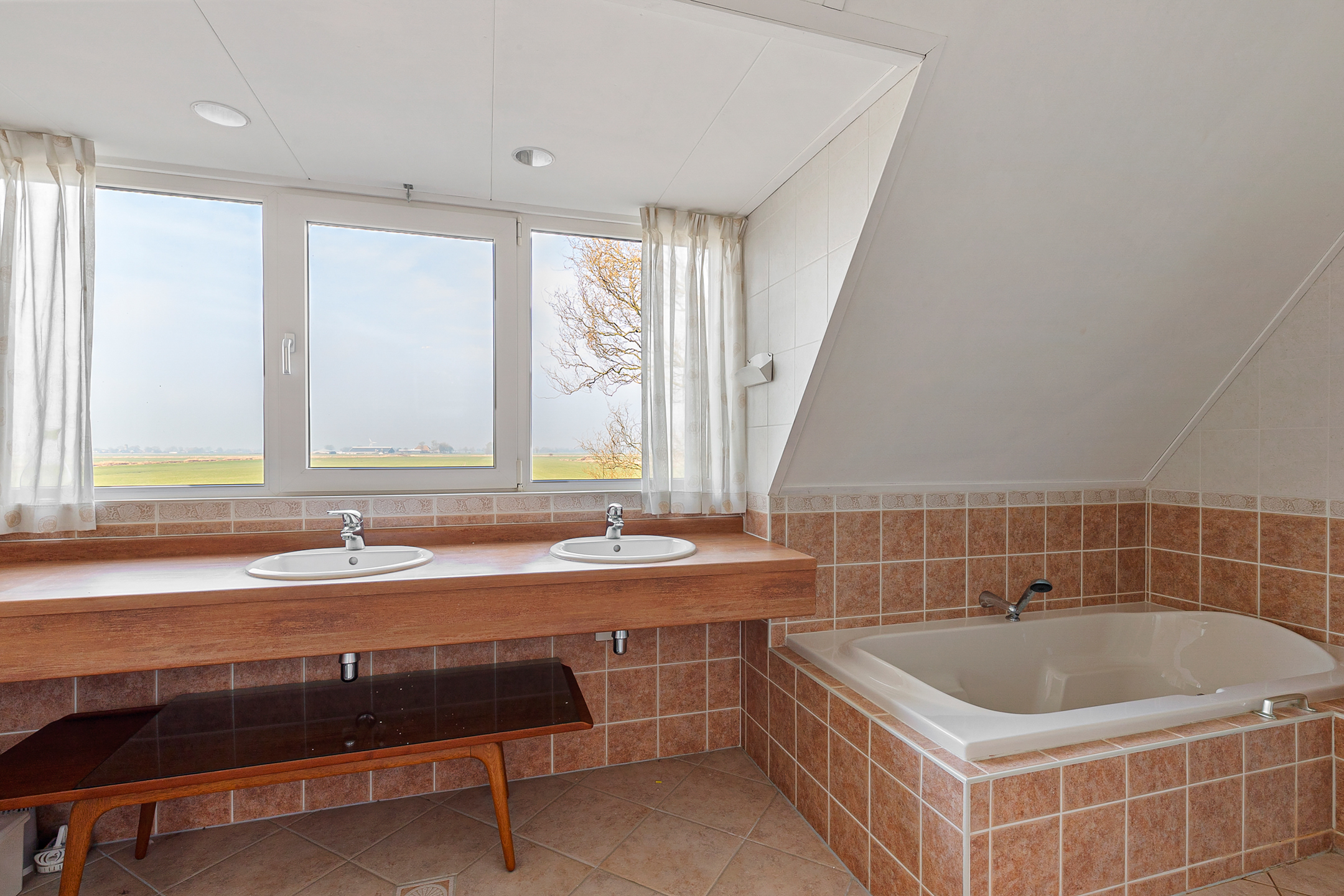 De ruime woonkeuken is voorzien van inbouwapparatuur en een sfeervolle erker met uitzicht over de tuin en weilanden. Verder vindt u op de begane grond een bijkeuken, een royale slaapkamer met tuindeuren, een badkamer met toilet, wastafel en douche, alsmede toegang tot de inpandige garage.