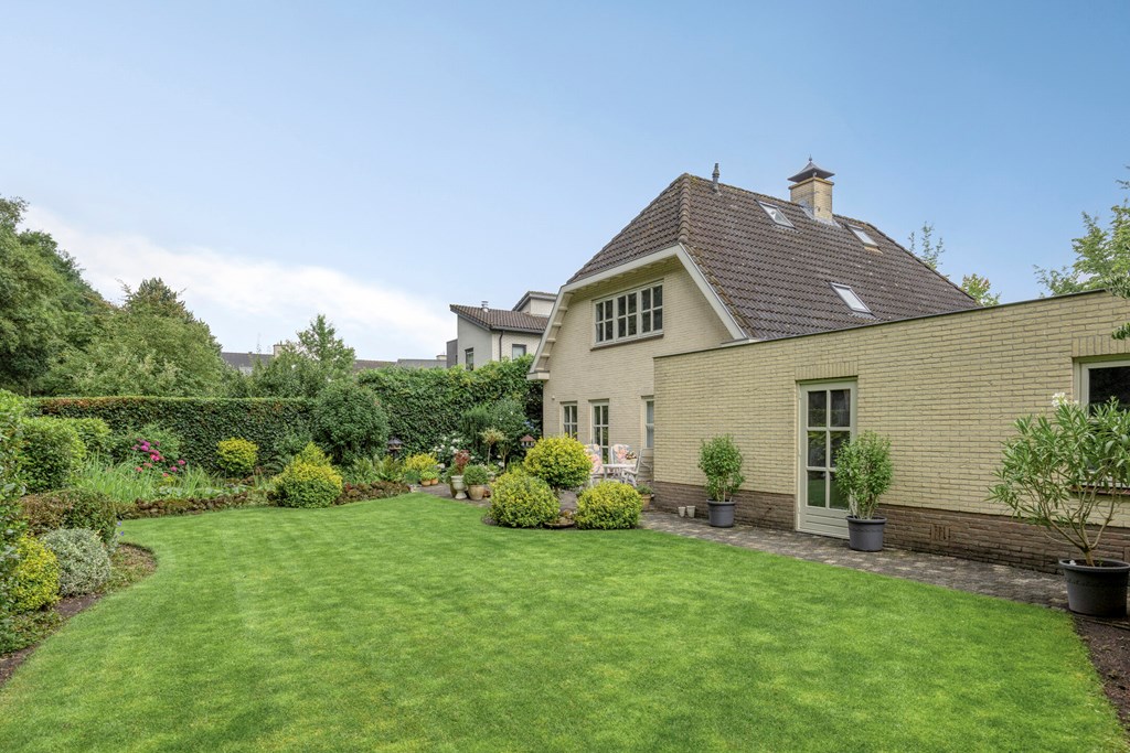 De tuin rondom is tot in de puntjes verzorgd. Aan de voorzijde biedt de brede oprit plaats aan meerdere auto’s, onder de carport staat uw auto beschut. Vanaf hier heeft u bovendien direct toegang tot de garage, met overhead- en loopdeur – een bijzonder ruime en multifunctionele ruimte van maar liefst 57 m². Ideaal voor dagelijks gebruik, voor het veilig stallen van fietsen, het uitvoeren van klusprojecten of het inrichten van een royale werk- of hobbyruimte met eigen entree. De achtertuin is een lust voor het oog: een groot zonneterras met sierbestrating, strak gazon, een vijver en borders vol kleur en variatie. Dankzij de volgroeide hagen, bomen en de achterliggende bosschage geniet u hier in alle rust en privacy. Of u nu buiten wilt ontbijten, een boek leest onder de boom of gasten ontvangt tijdens een zomeravond – het kan hier allemaal. En met directe toegang vanuit de woonkamer, bijkeuken én garage is deze tuin ook nog eens bijzonder praktisch ingedeeld.