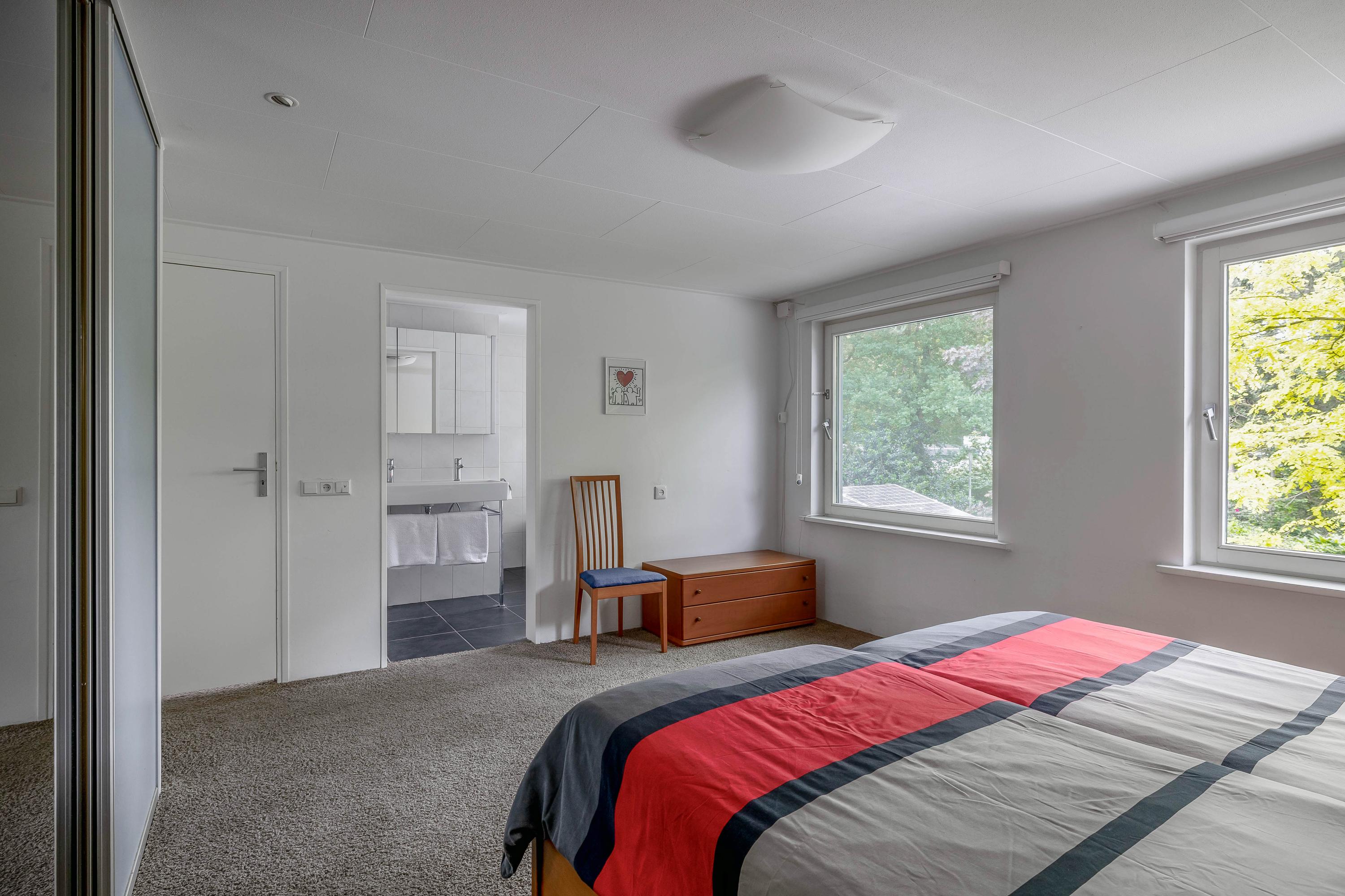 De woning ligt in een kleinschalige villawijk met vrijstaande huizen op ruime bospercelen. “Loop je de straat uit, dan sta je meteen in het bos”, aldus verkoper. “Toen ik hier kwam wonen, had ik nog een hond. Je kunt hier eindeloos wandelen. Dat kende ik helemaal niet toen ik nog in Zuid-Holland woonde.” “Alles wat je nodig hebt, is hier. Verder heerst er vooral rust. Dat vind je niet zomaar ergens anders.”