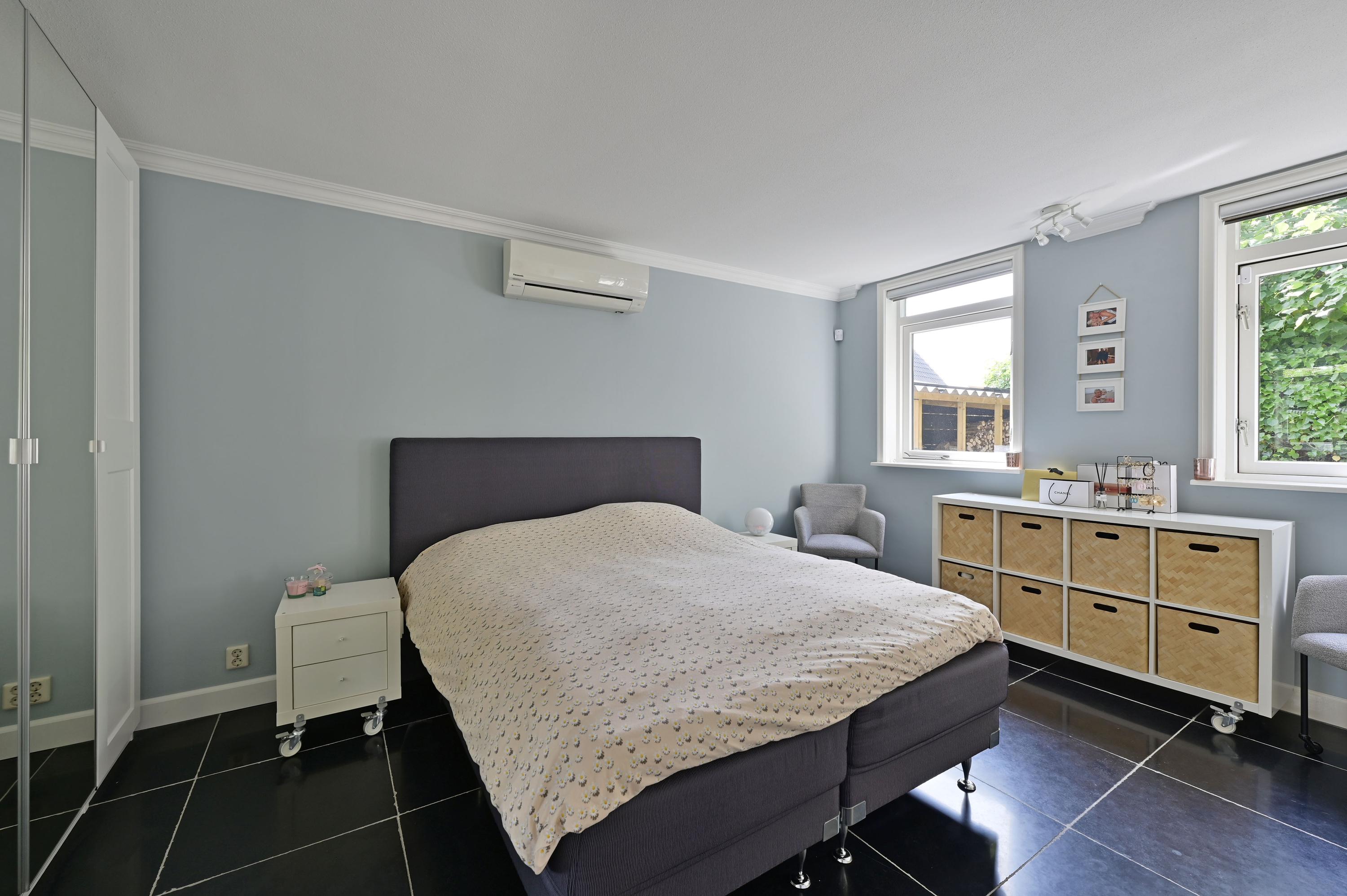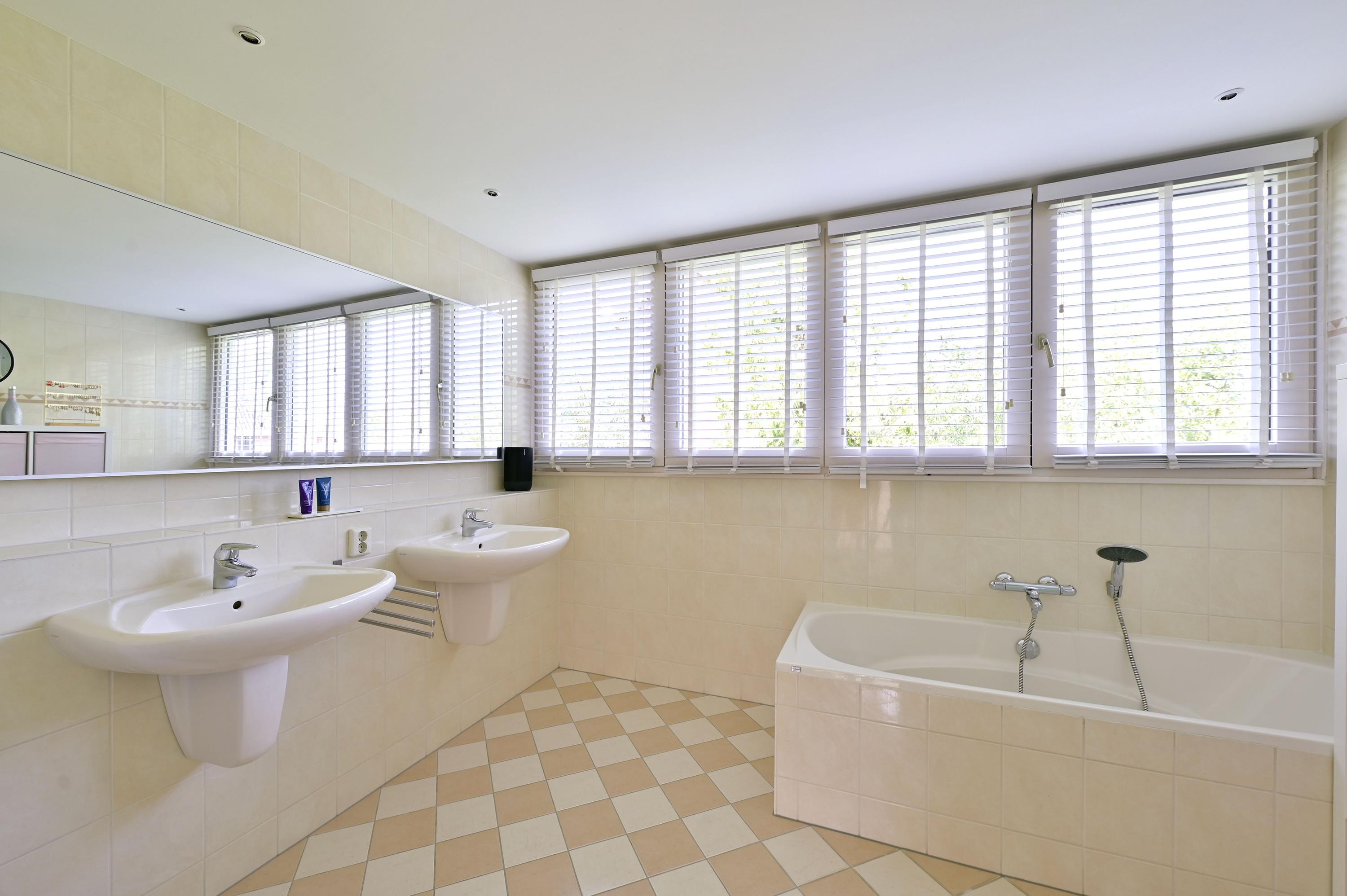 De woning beschikt over maar liefst zeven slaapkamers, verdeeld over meerdere verdiepingen. Daarmee biedt deze villa volop ruimte voor grotere gezinnen, thuiswerkplekken of hobbykamers. Uniek is de aanwezigheid van twee badkamers, waarvan één op de begane grond aansluitend aan een ruime slaapkamer. Dit maakt gelijkvloers wonen mogelijk en biedt tevens een ideale oplossing voor gastenverblijf of praktijk aan huis. De tweede badkamer bevindt zich op de eerste verdieping en is eveneens volledig ingericht.