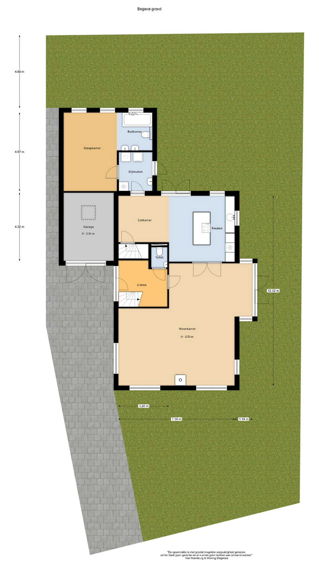 + Gehele perceel onderheid, met uitzondering van een klein stuk gras voor en naast de garage