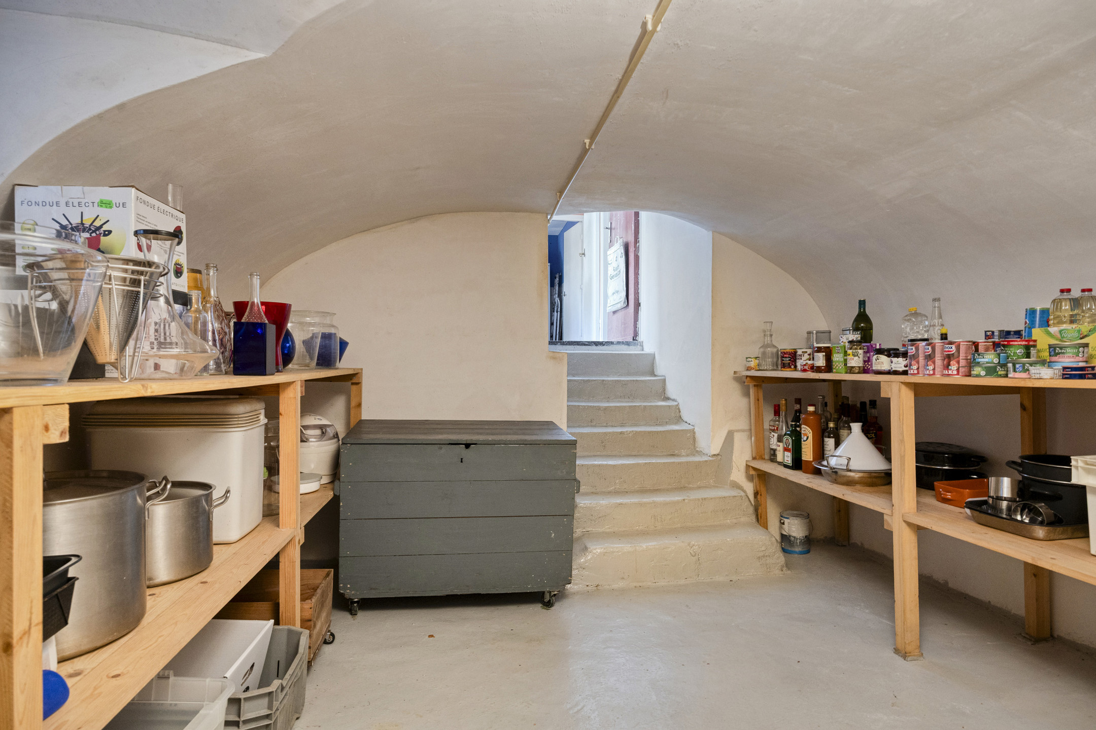 betegelde bijkeuken met opstelplaats HR-combiketel, wasmachine-/drogeraansluiting en inbouwkast aansluitingen van de voormalige badkamer, inpandige toegang tot het atelier;