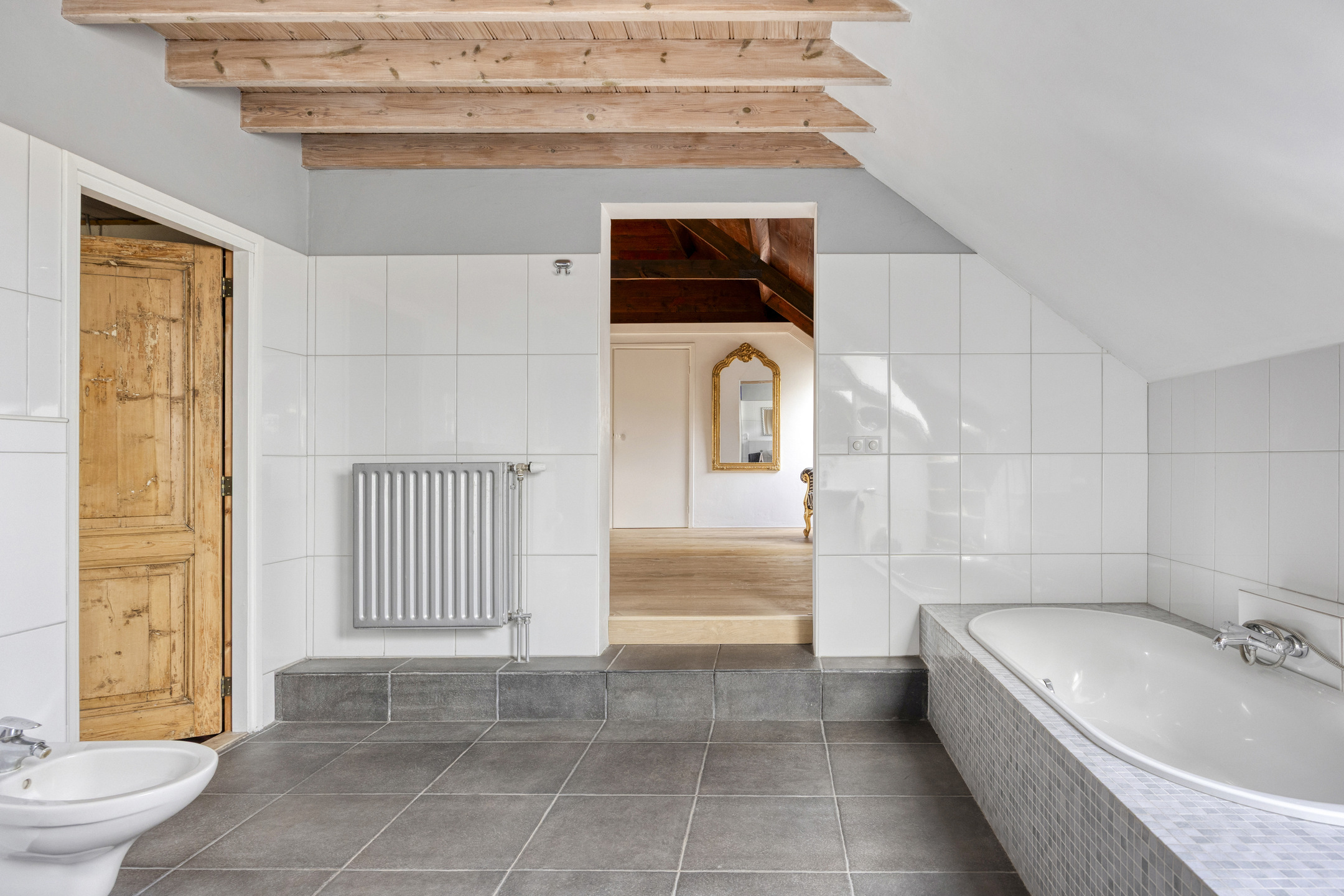 betegelde badkamer en-suite voorzien van een ligbad, douchecabine, 2e wandcloset, bidet, een dubbele wastafel en vloerverwarming als gestuurd vanuit de CV;