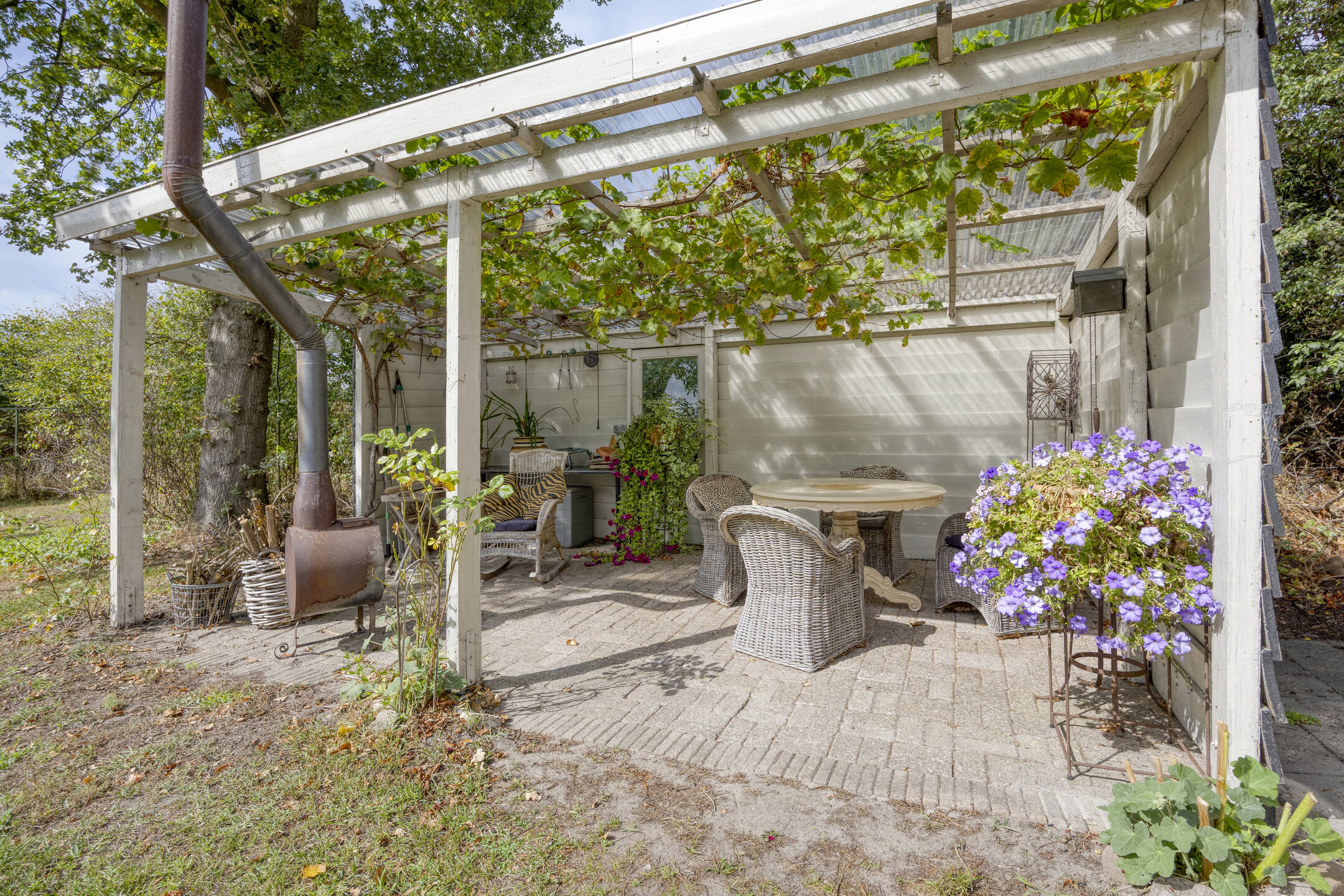 Aangelegd perceel rondom, vv. weide, fruitbomentuin, moestuin, houten veranda, royale oprit, terras bestraat met gebakken klinkers, oprijlaan aangelegd middels kinderkoppen.