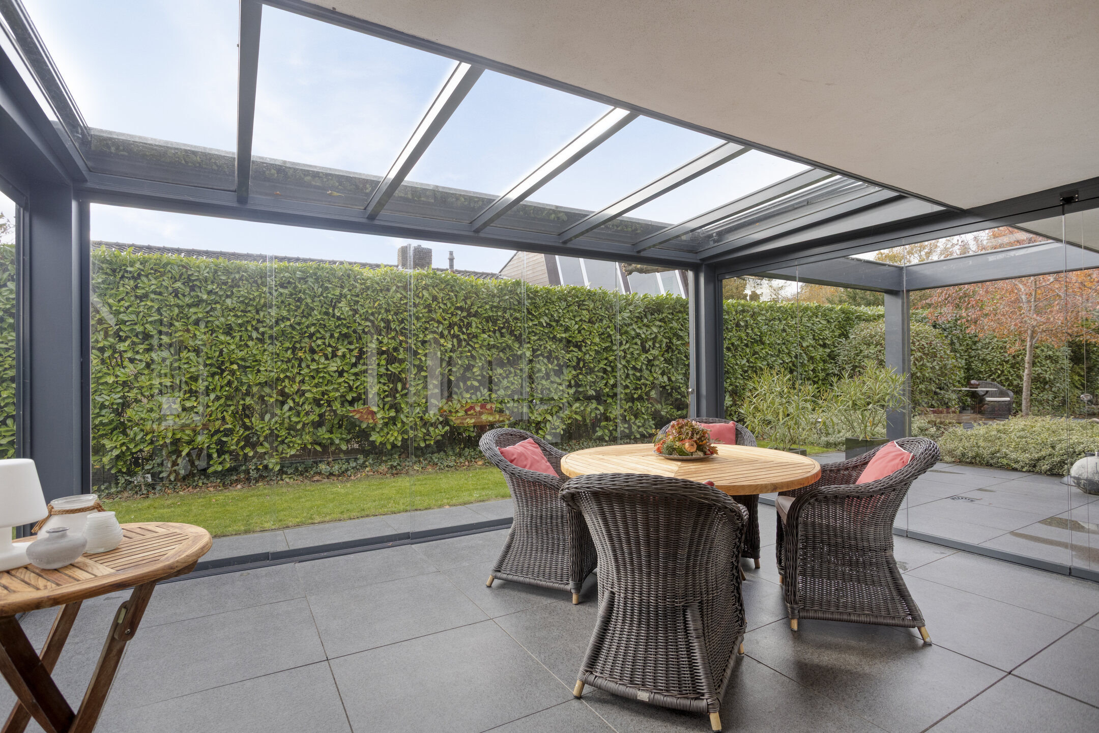 Просторный холл с дубовым полом и лаконичными стеклянными дверями встречает гостей при входе. Гостиная и кухня-столовая разделены двусторонним камином Bellfire, который придает пространству спокойное тепло. Роскошная кухня оснащена техникой премиального класса и рабочей поверхностью из бельгийского голубого камня, предлагая практичность и изысканный стиль для ежедневной жизни. Задний фасад с панорамным остеклением подчеркивает гармонию сада и живописный, охраняемый ландшафт Egmonderhout за его пределами.