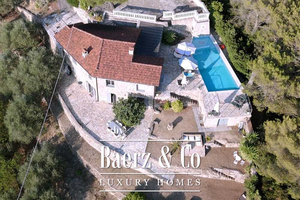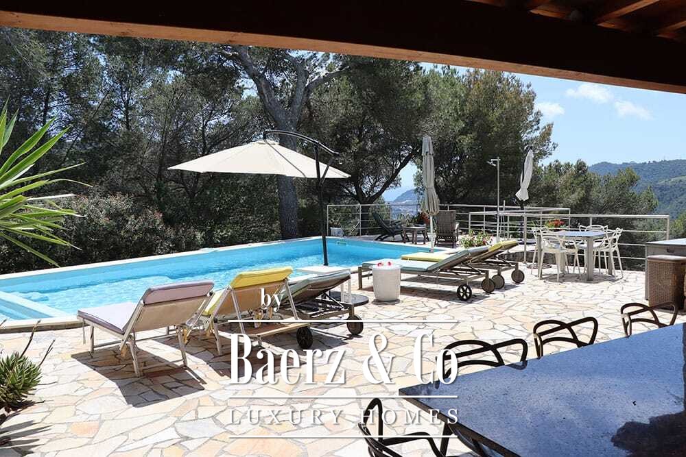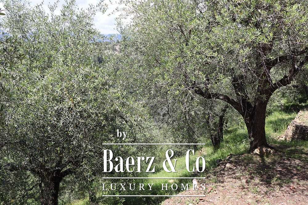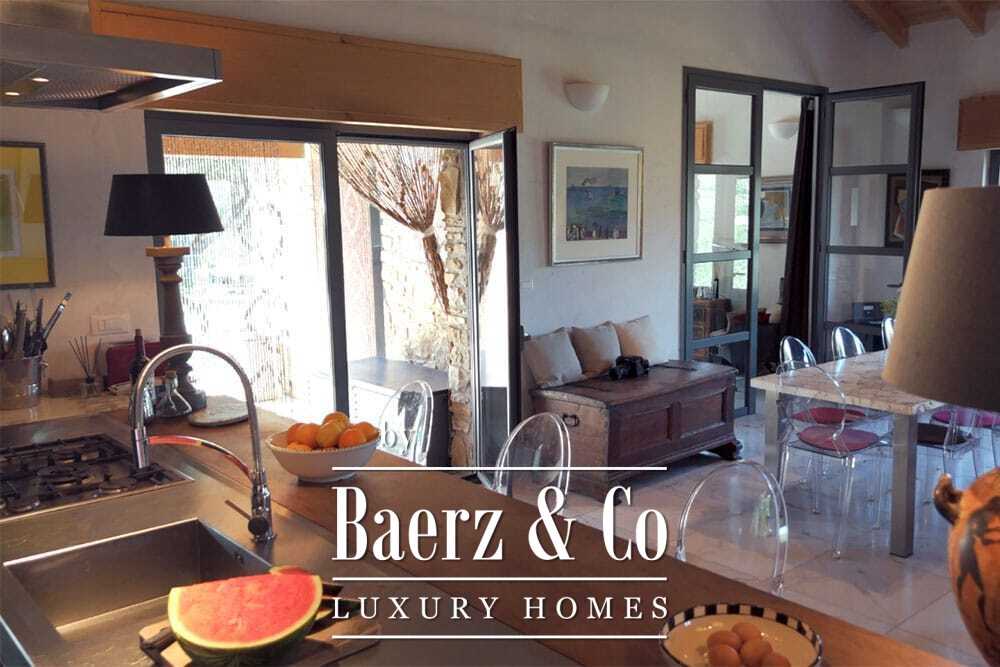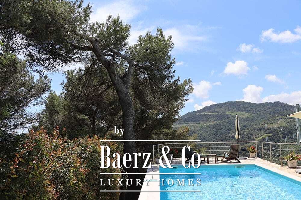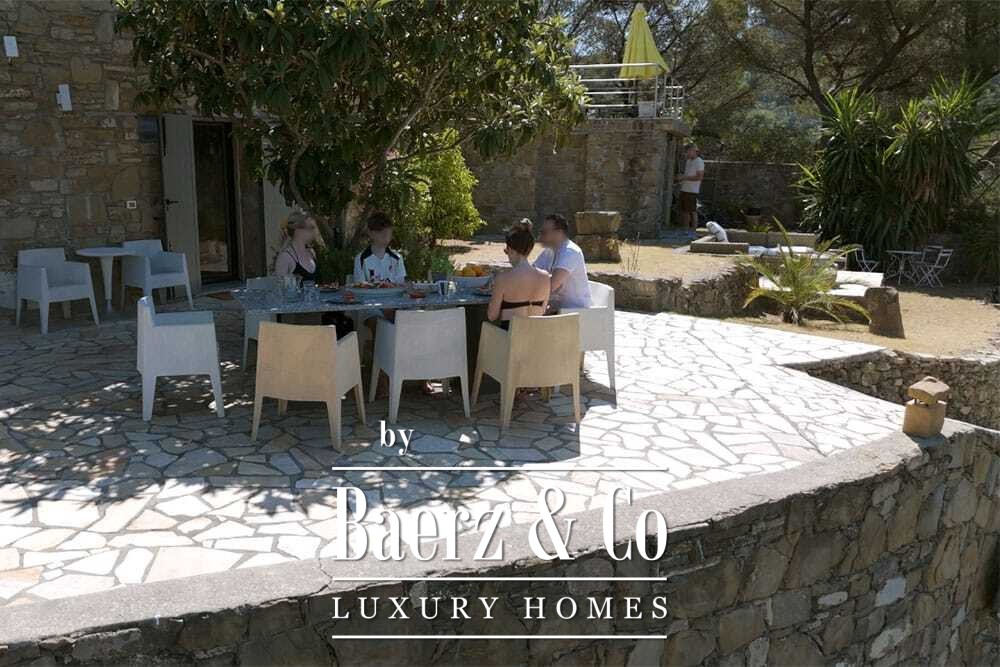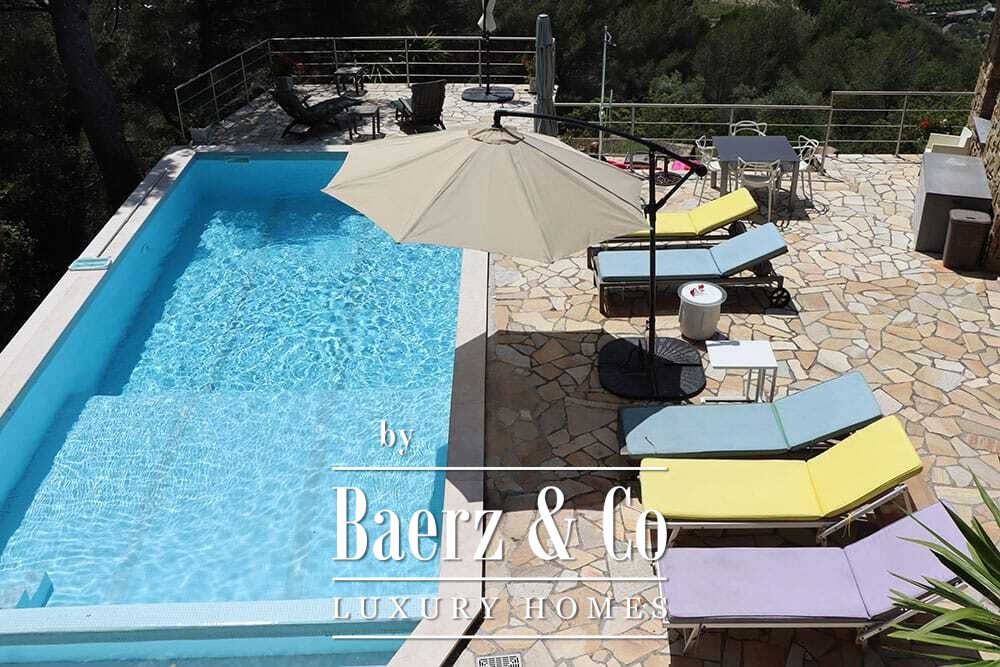 Бассейн 11 на 4 метра, полностью обновлённый в 2022 году, располагается рядом с просторной террасой с прекрасными видами на долину и море. Несколько террас, уличные кухни и тенистые перголы располагают к неформальным трапезам в любое время года. Дорожки вокруг дома окружены оливковыми деревьями, множество солнечных часов обеспечивает щедрый урожай.