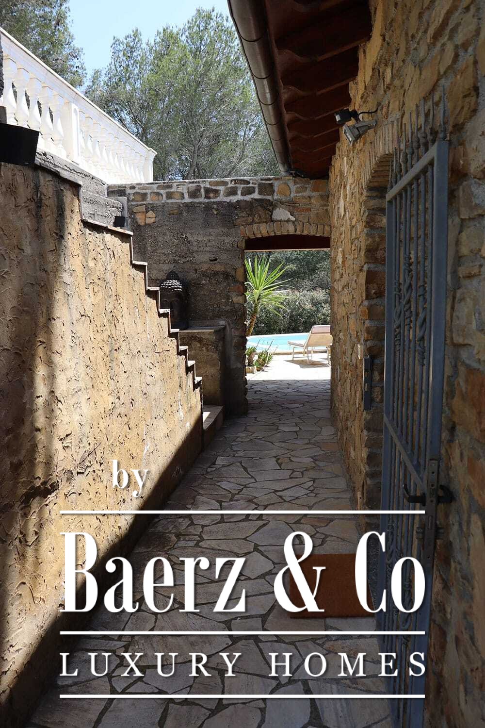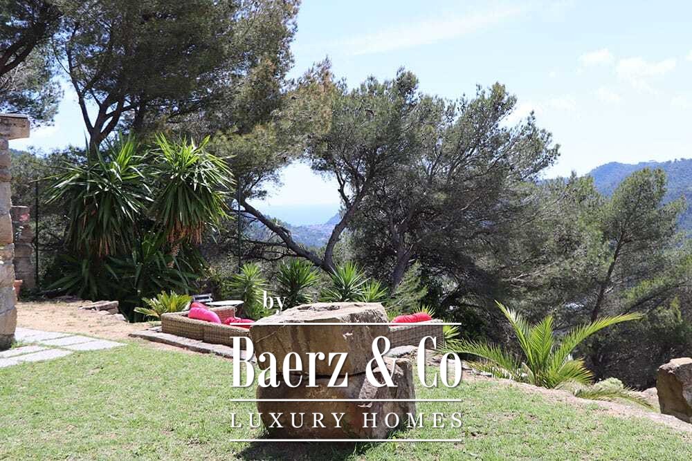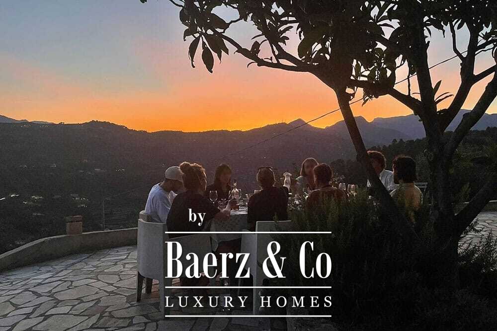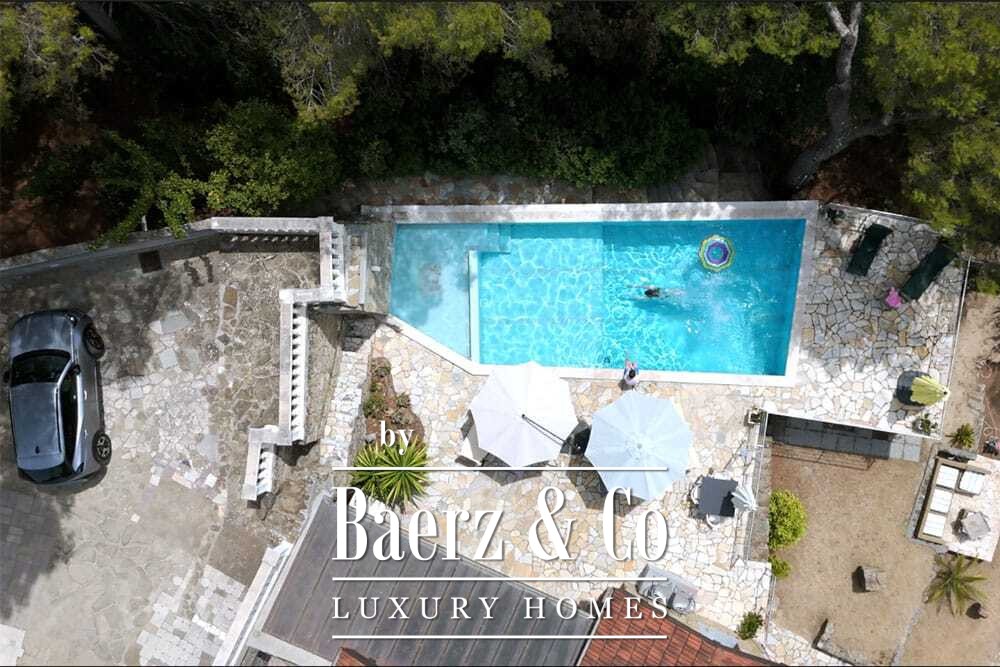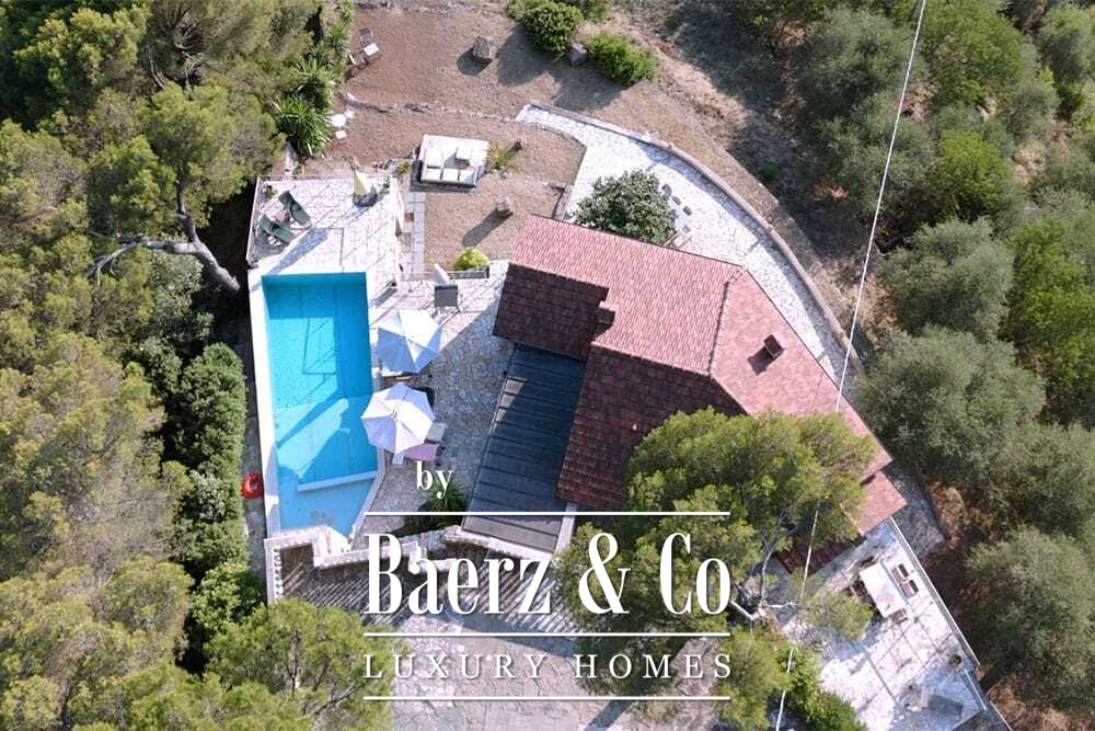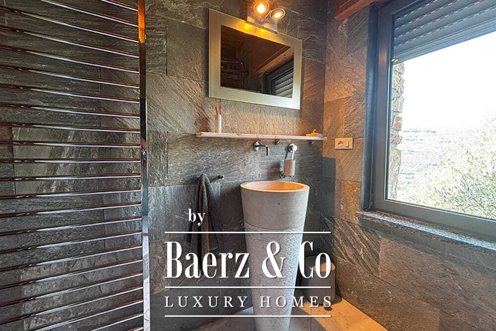 Бассейн 11 на 4 метра, полностью обновлённый в 2022 году, располагается рядом с просторной террасой с прекрасными видами на долину и море. Несколько террас, уличные кухни и тенистые перголы располагают к неформальным трапезам в любое время года. Дорожки вокруг дома окружены оливковыми деревьями, множество солнечных часов обеспечивает щедрый урожай.