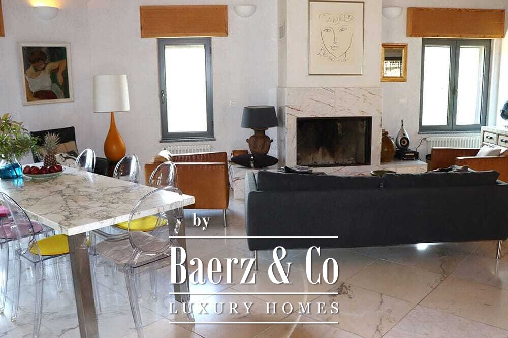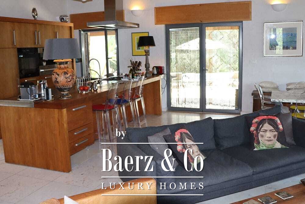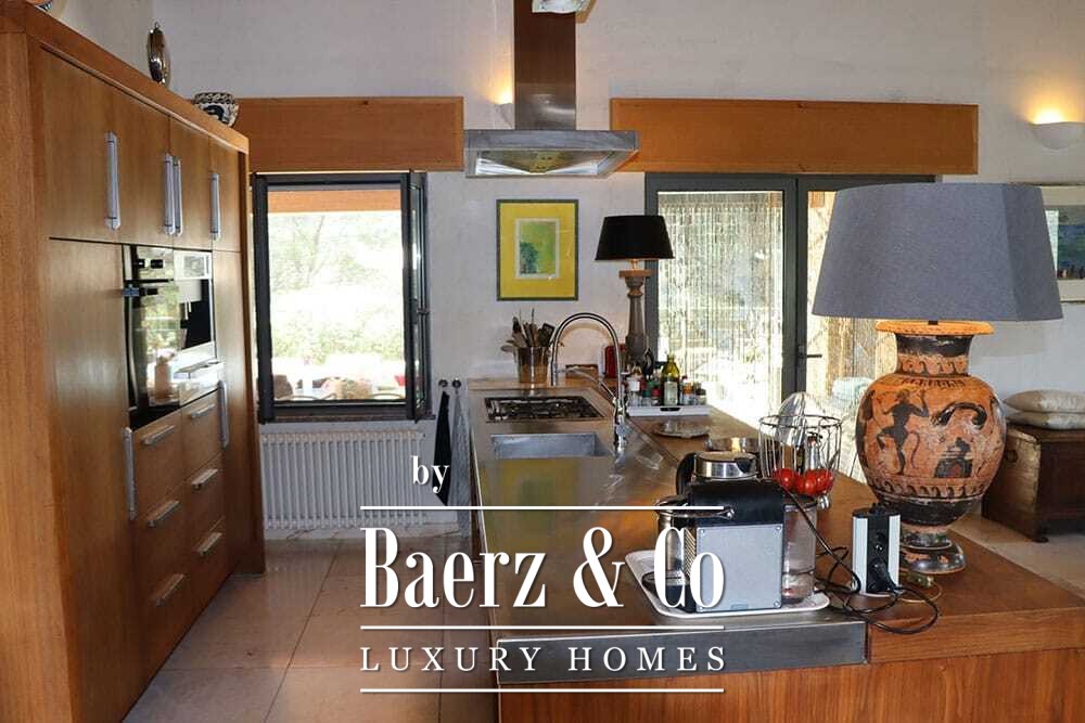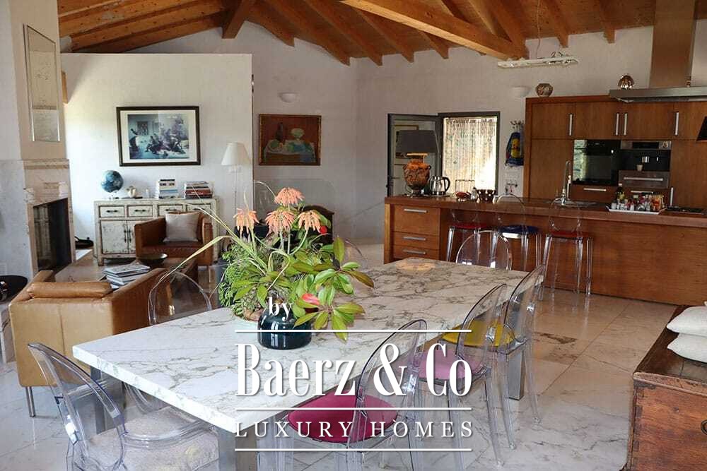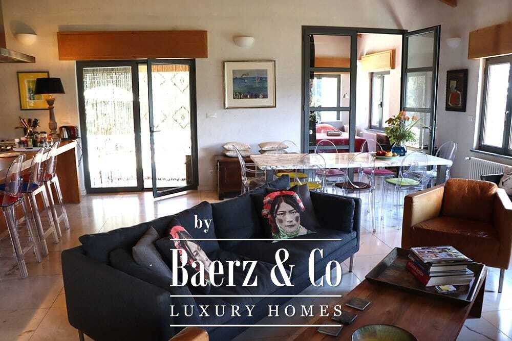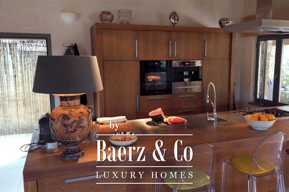 Бассейн 11 на 4 метра, полностью обновлённый в 2022 году, располагается рядом с просторной террасой с прекрасными видами на долину и море. Несколько террас, уличные кухни и тенистые перголы располагают к неформальным трапезам в любое время года. Дорожки вокруг дома окружены оливковыми деревьями, множество солнечных часов обеспечивает щедрый урожай.