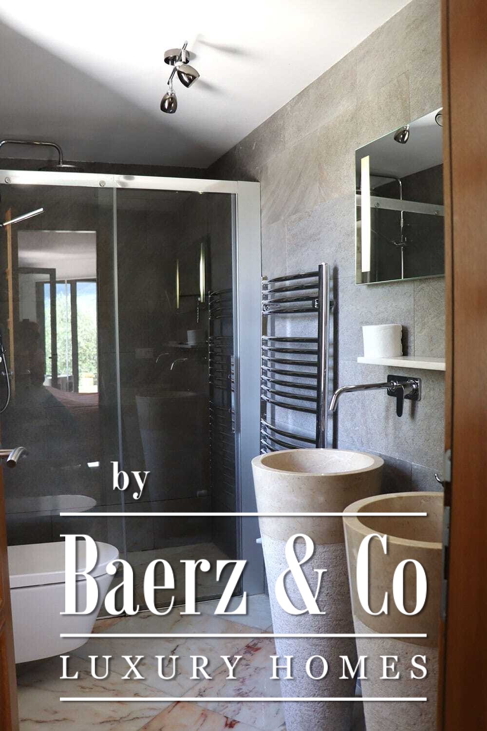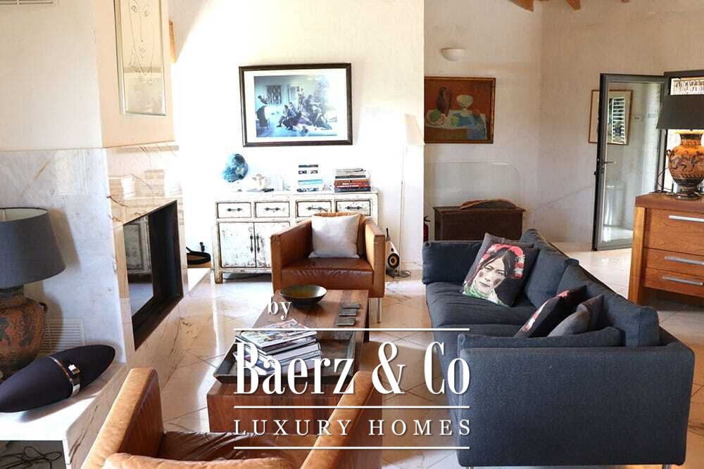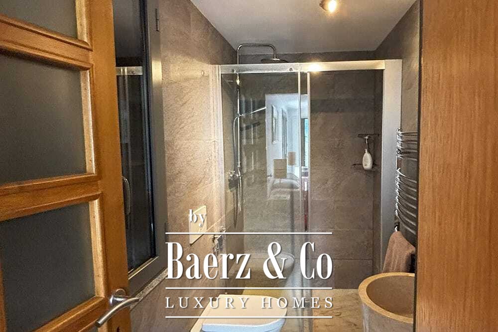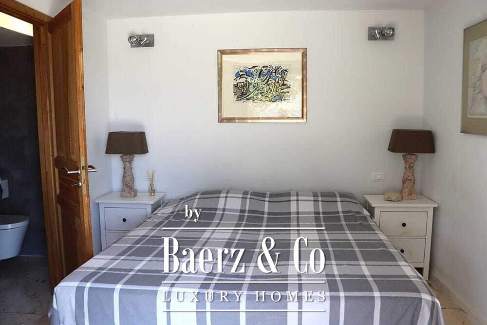 На двух этажах расположены четыре спальни и четыре ванные комнаты. Три спальни на первом этаже имеют французские двери с выходом на нижнюю террасу и виды на горы. Главная спальня включает просторную ванную комнату с отдельной душевой, двумя мраморными раковинами и дизайнерскими аксессуарами, создающими атмосферу уединения. Спальная студия с отдельным входом повышает удобство размещения гостей или организации рабочего пространства. На втором этаже — гостиная с открытыми балками и камином, переходящая в кухню из ореха и нержавеющей стали с техникой Miele премиум-класса. Высокие стеклянные двери ведут в лаунж с вторым камином и выходом на террасы, оформленные гранитными столами и стульями Philippe Starck.