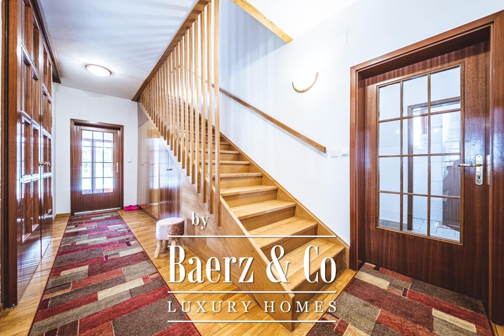 Панорамные окна от пола до потолка подчеркивают ориентацию дома и наполняют его светом, особенно в общих зонах. Полуобставленные интерьеры, тёплые полы в ванных комнатах, кондиционирование воздуха, камин и встроенные элементы формируют высокий стандарт жилой среды. Подогреваемый подъезд и тщательно оформленный сад создают приветливую атмосферу, а парковка для нескольких автомобилей подчёркивает функциональную элегантность. Этот таунхаус в продаже в районе Gornja Dubrava станет идеальным выбором для ценителей сдержанной семейной жизни в атмосфере комфорта и такта.