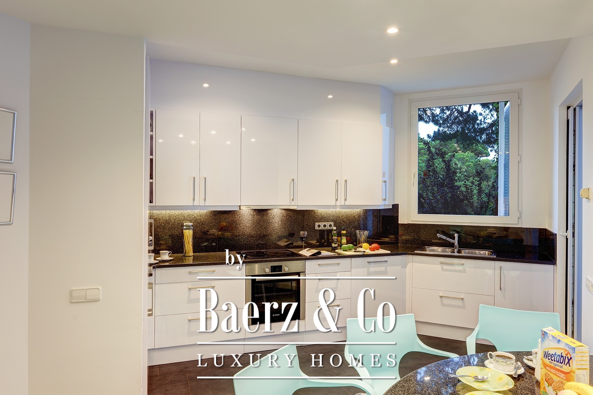 Каждая деталь архитектуры этой виллы подчёркивает чистоту форм и утончённость: от алюминиевых оконных рам до тёплых полов и уникального уличного освещения. Четыре автономных сьютa создают уединённые уголки для отдыха, которым вторят полностью оборудованная дизайнерская кухня, винный погреб и гибкие функциональные помещения. Кабинет, гостевой санузел и скрытый гараж отвечают ежедневным нуждам и сезонным встречам. Современные системы кондиционирования, многоуровневое музыкальное сопровождение и продвинутая сигнализация обеспечивают абсолютное спокойствие владельцев.