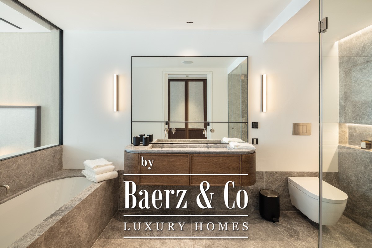 Кухня с мраморной отделкой и скрытой техникой идеально подходит как для утончённых приёмов, так и для комфортных будней. Просторная крытая терраса расширяет пространство для ужинов и отдыха на свежем воздухе, с прямым выходом из главной спальни и гостиной. Каждая из трёх спален оснащена собственной ванной комнатой, выполненной из лучших материалов. Мастер-сьют с матовым стеклянным перегородом и двойной раковиной из серого камня обеспечивает приватную атмосферу для полноценного отдыха.