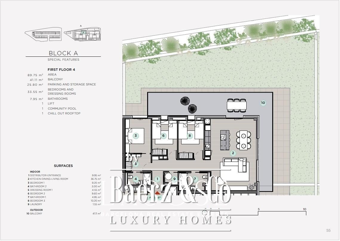 专属露台与园林环绕,便于您自在享受户外生活,并配有咸水泳池,适合安静悠然的午后时光。该公寓符合西班牙最高建筑规范,配备LED照明、隔音系统和精工细致的工艺,保障耐久与隽永美感。对于寻求锡切斯高端公寓的买家而言,此住宅完美融合现代设计、地中海光线与低调可持续的精致生活。