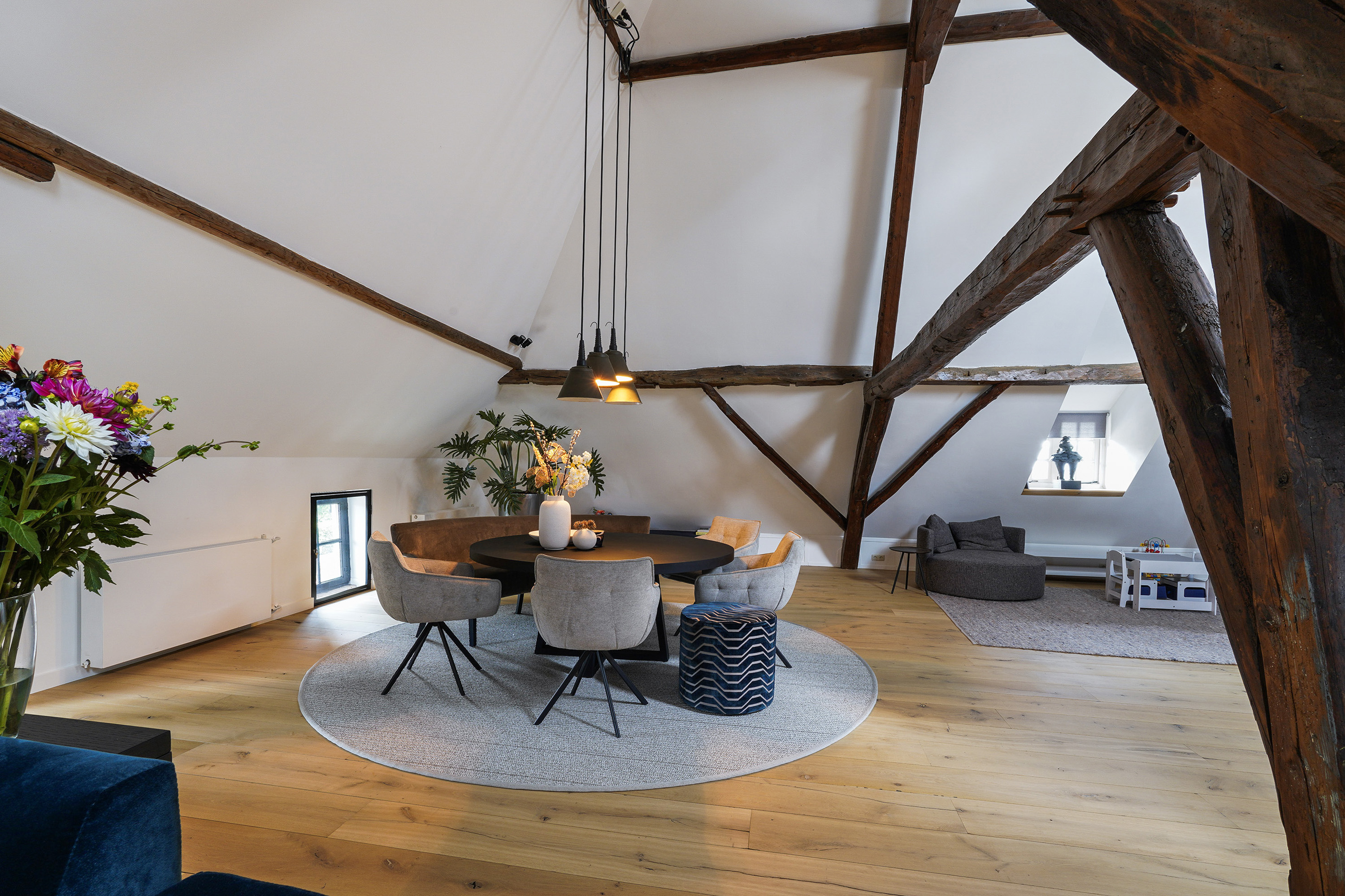Sprang-Capelle传世宅邸融合了历史底蕴与悉心修缮,在658平方米的土地上,稀有地提供420平方米的奢阔生活空间。作为国家级历史保护建筑,该物业拥有非凡的渊源,其17世纪的起源体现在裸露的木梁、拱形天花板以及格调尊贵的迎宾氛围中。近90平方米的主起居室凭借颗粒炉与高大窗户贯通自然光,白色粉刷墙面和木地板柔化了空间线条。2024年定制的核心厨房出自Ecker Interieurbouw之手,橱柜量身打造,空间充裕,适宜用餐、聚会或静静欣赏花园景致。